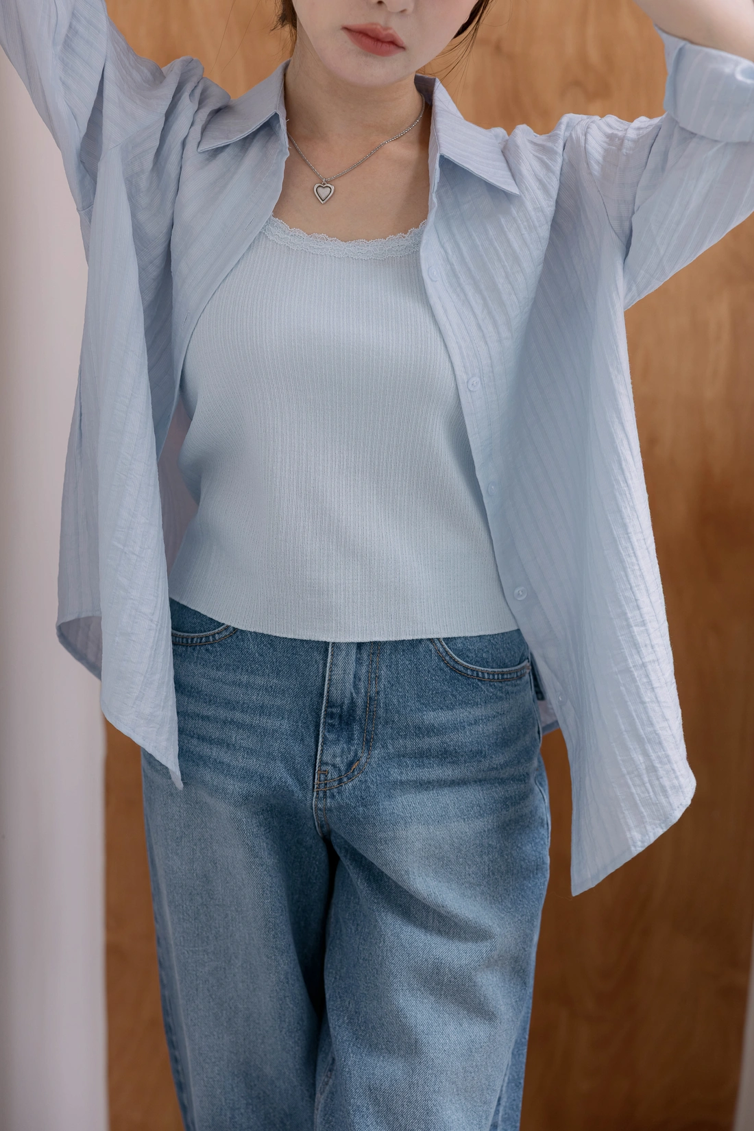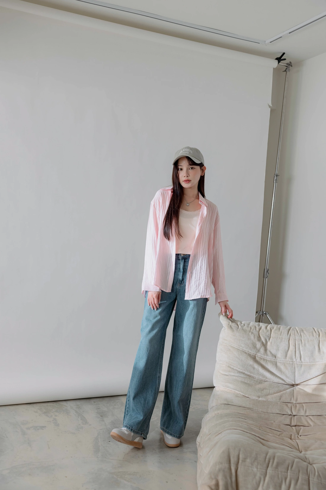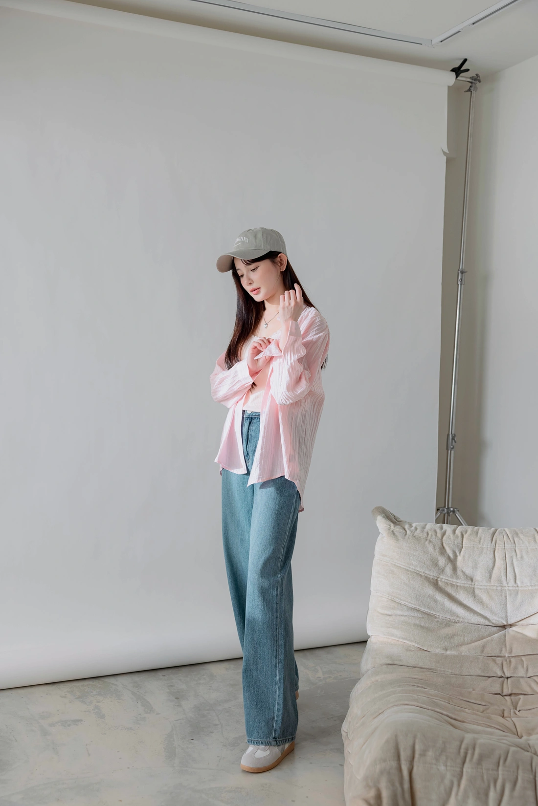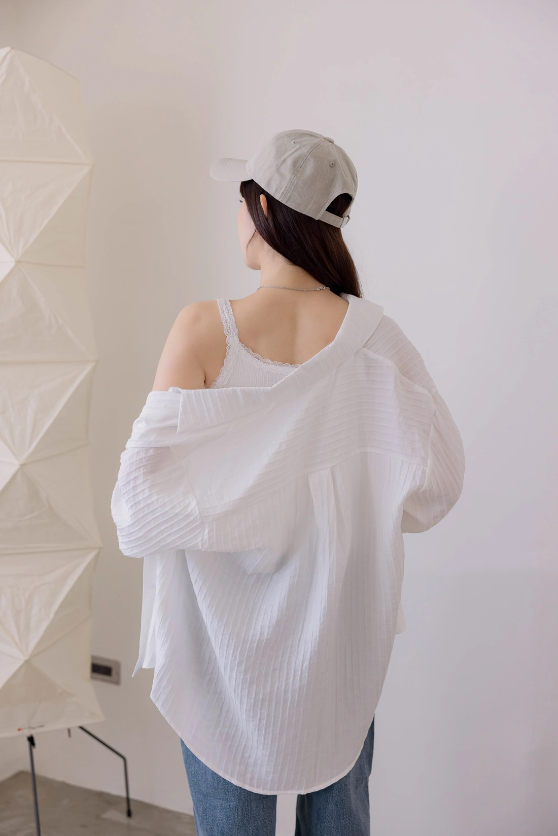 面料壓紋材質/前短後長襯衫/排釦設計襯衫