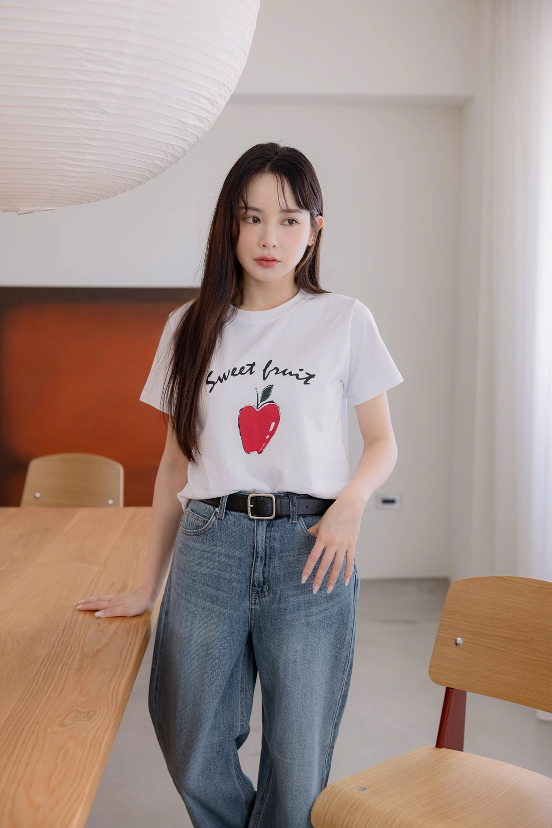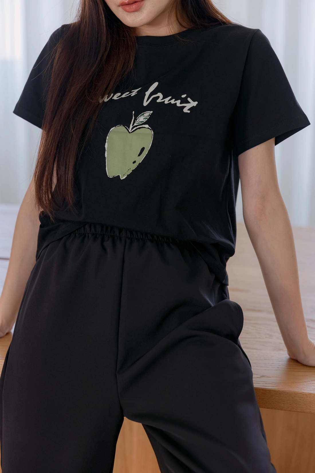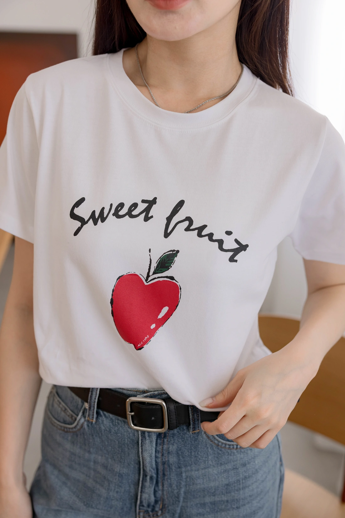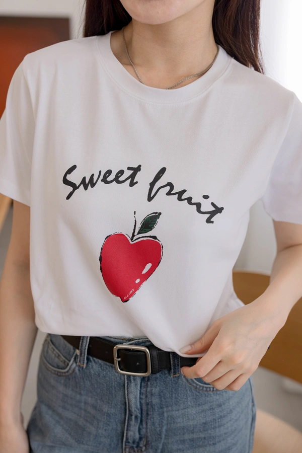 舒適棉質材質/短版百搭T-shirt/正面印有蘋果圖案