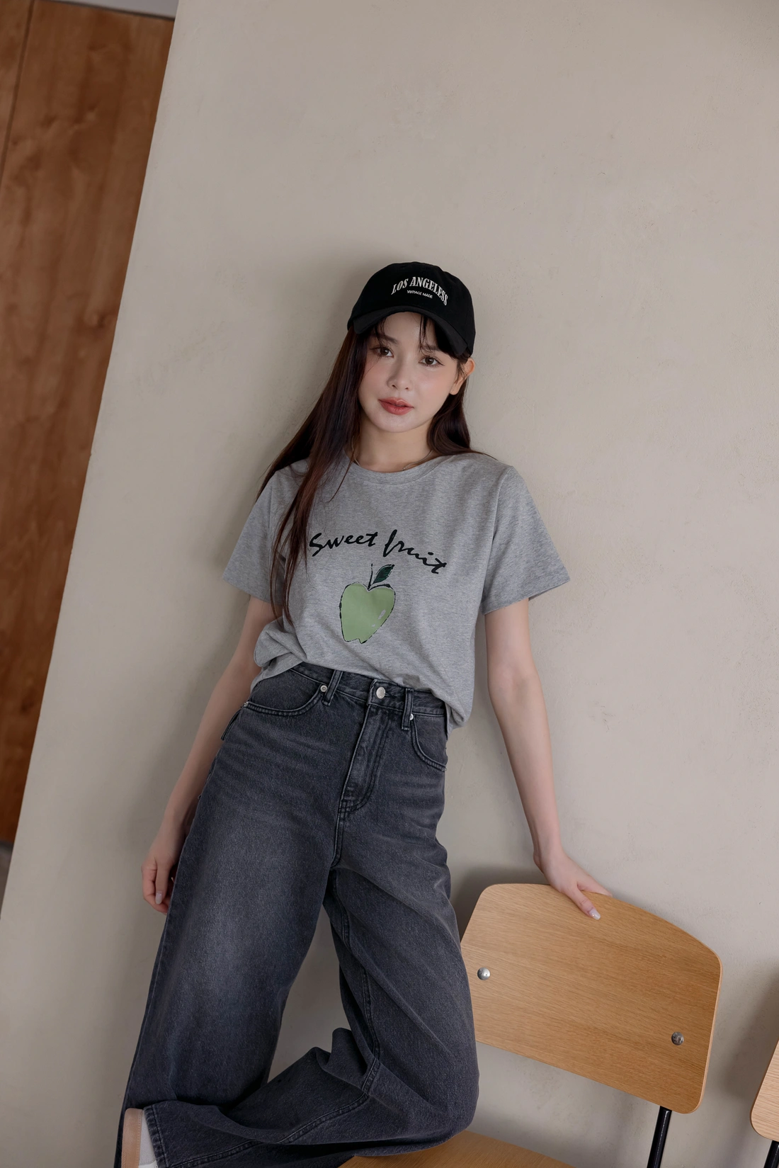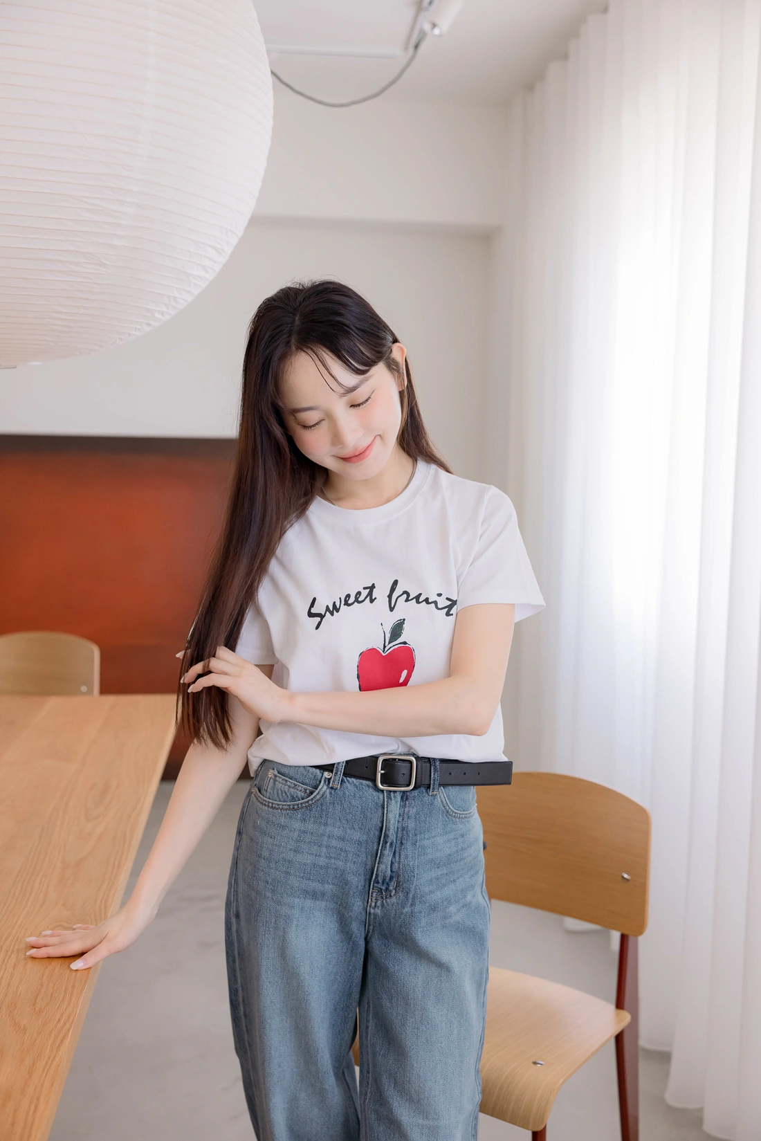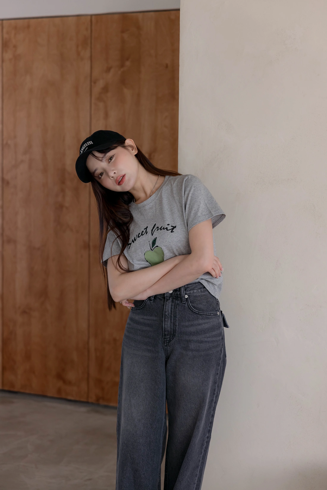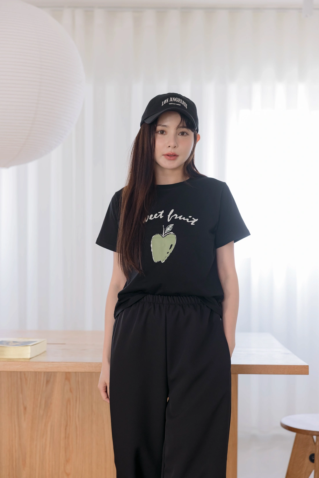 舒適棉質材質/短版百搭T-shirt/正面印有蘋果圖案