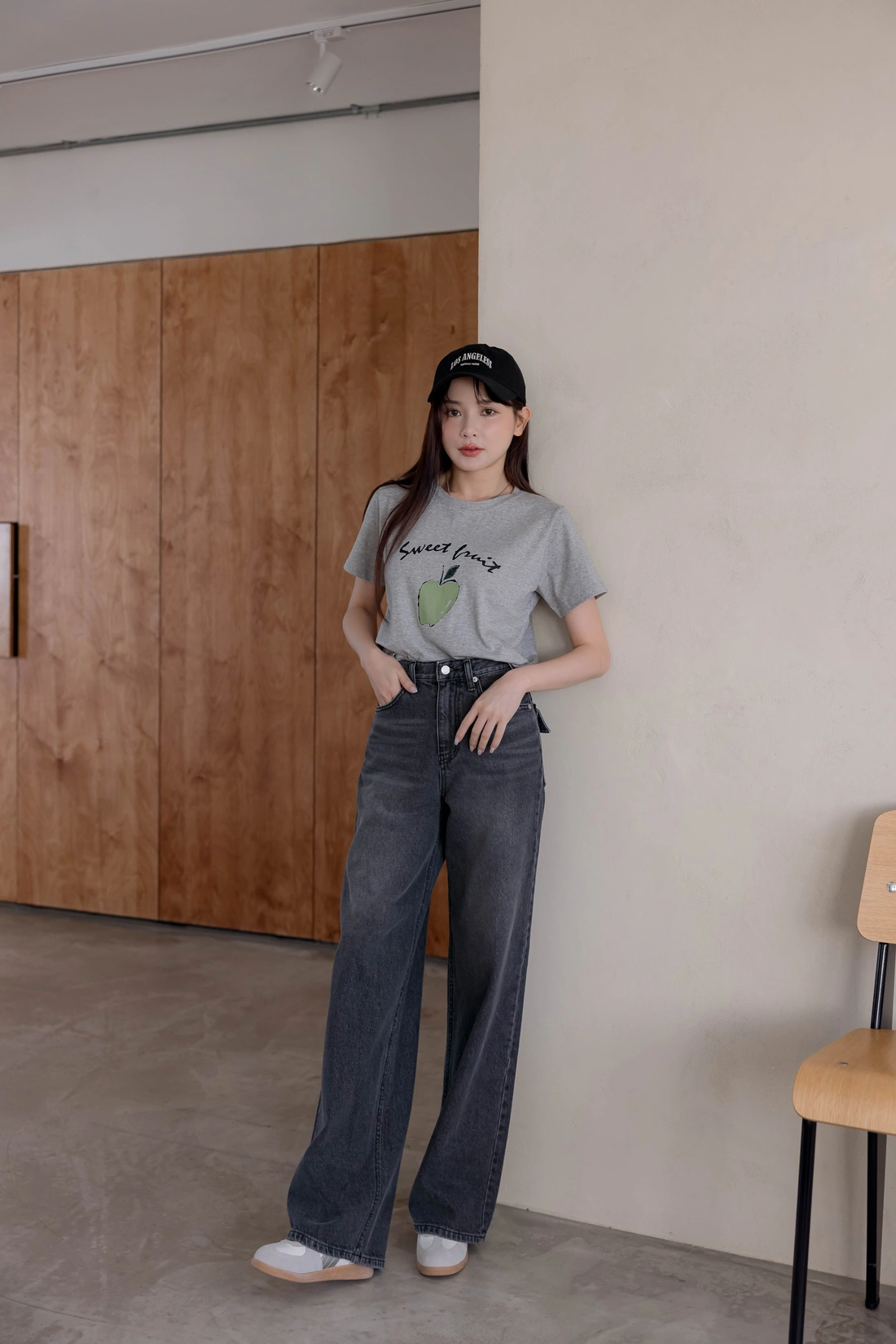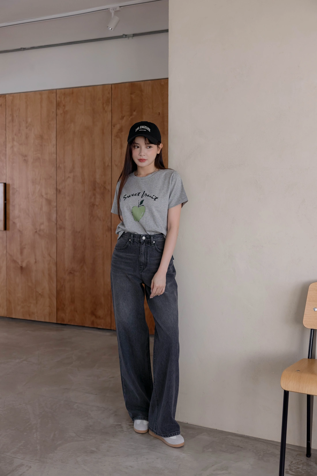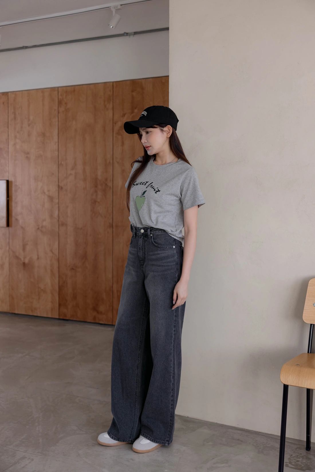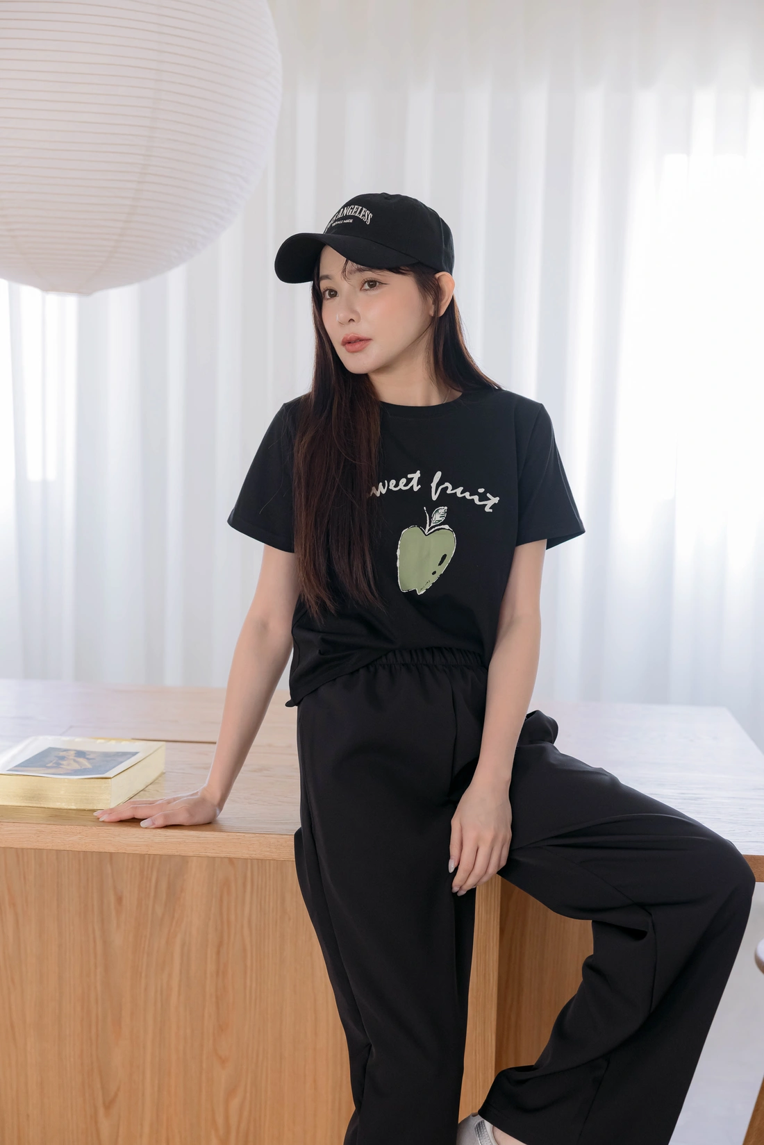 舒適棉質材質/短版百搭T-shirt/正面印有蘋果圖案