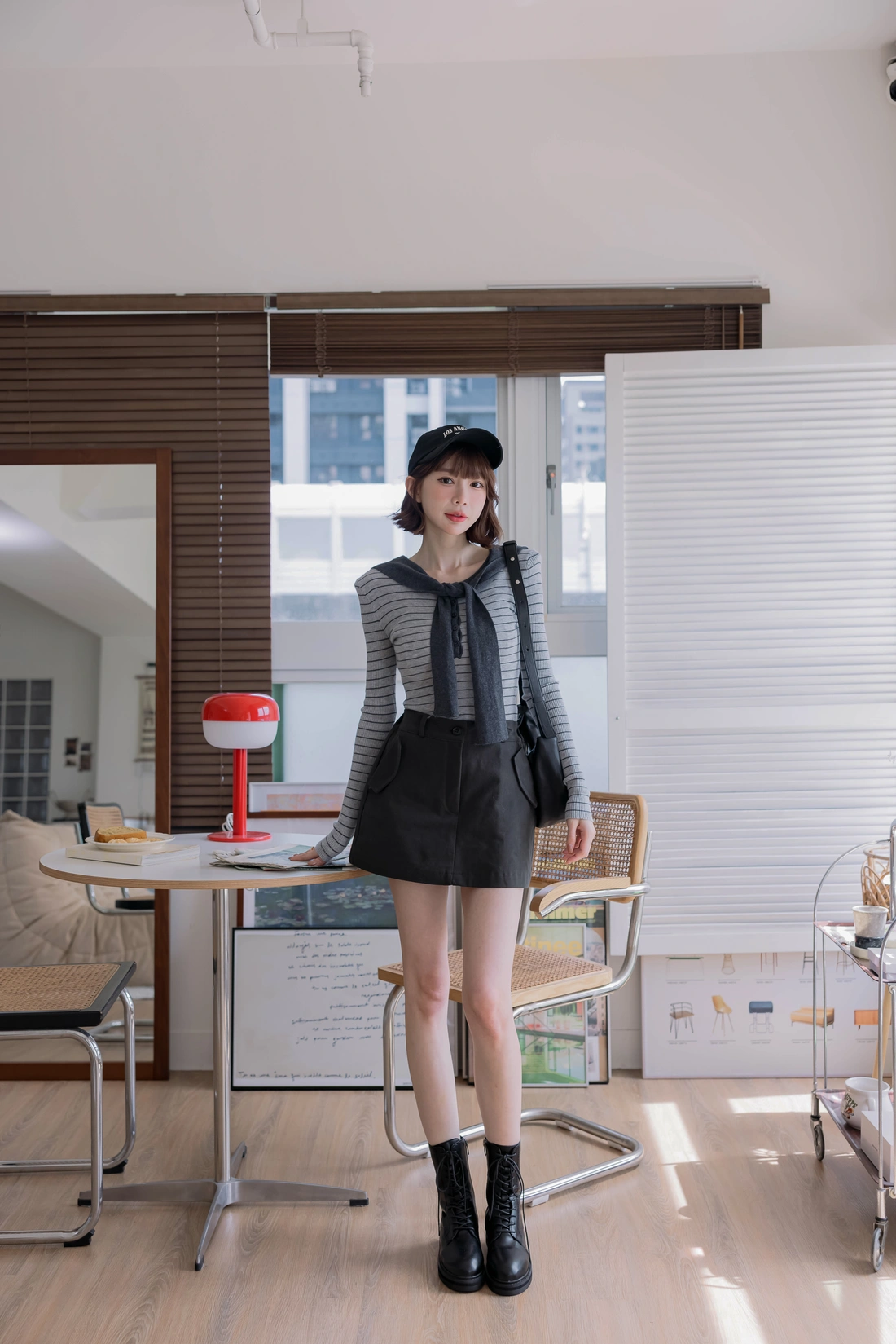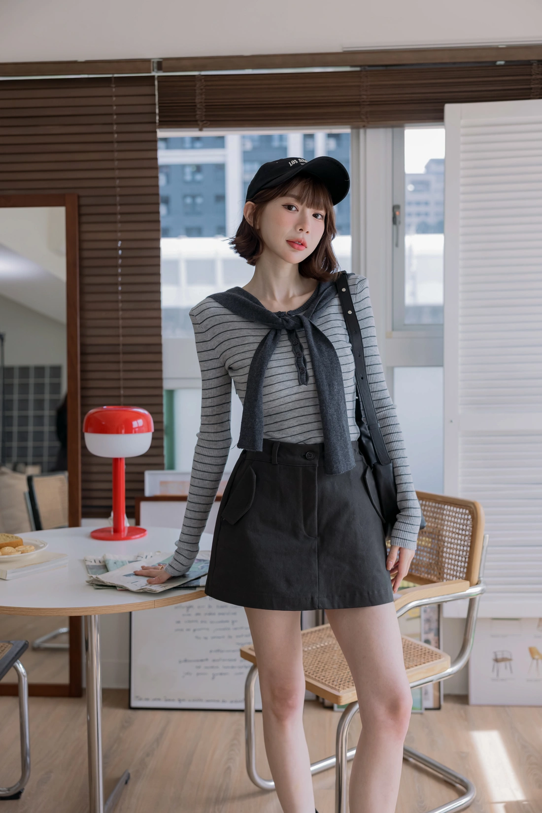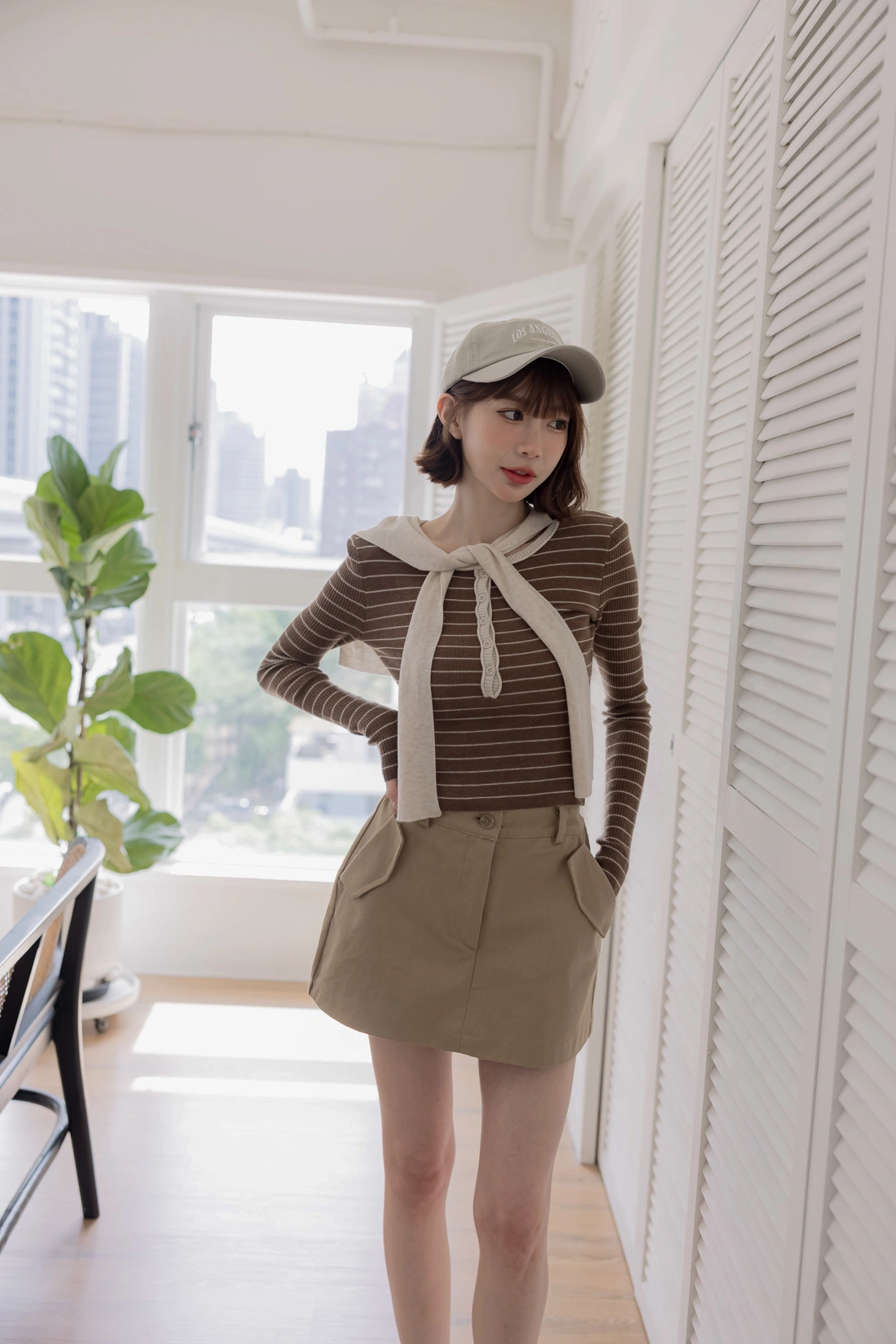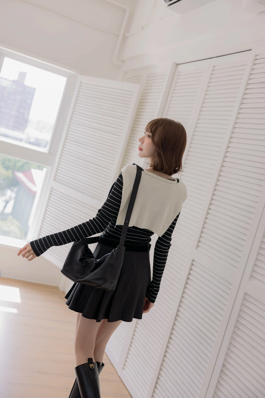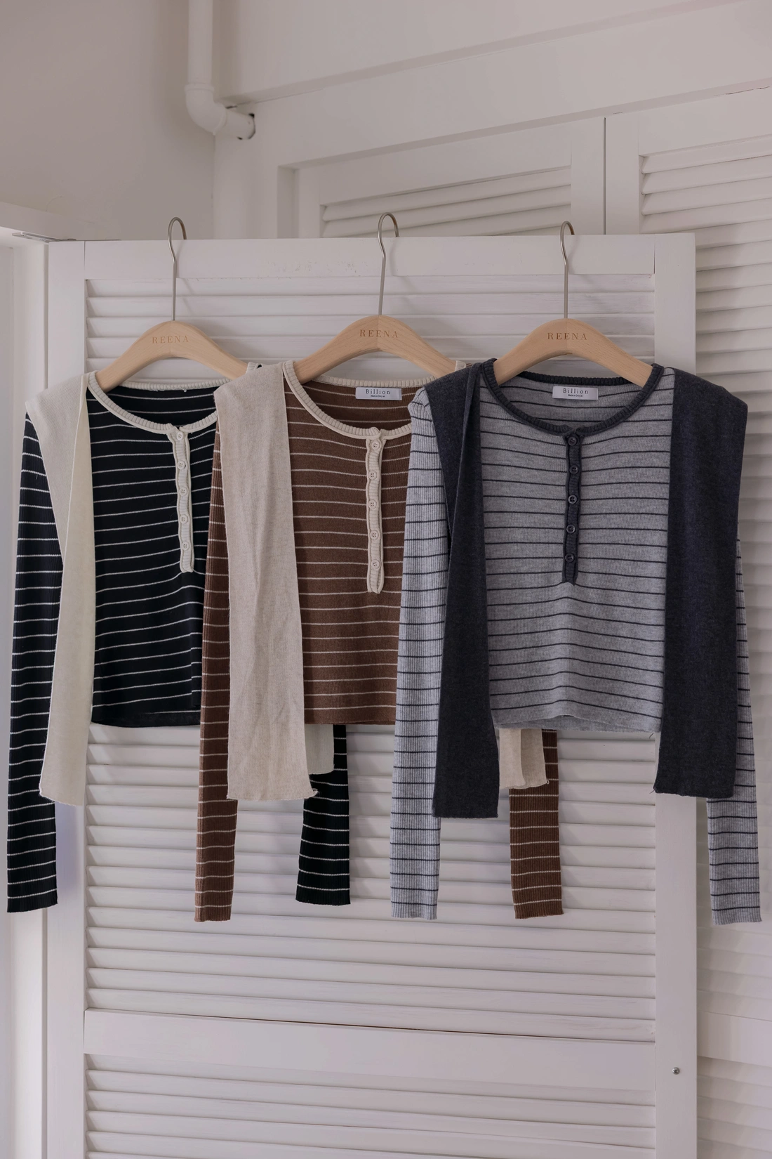 假兩件披風設計上衣/撞色布料設計/排釦設計