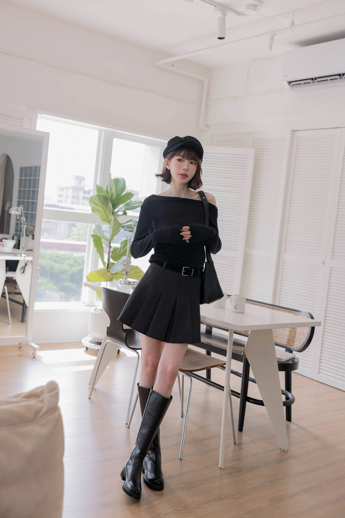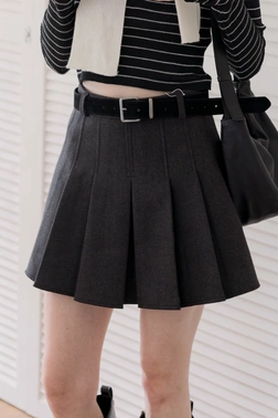 • 正韓製 超百搭百摺褲裙(附皮帶)