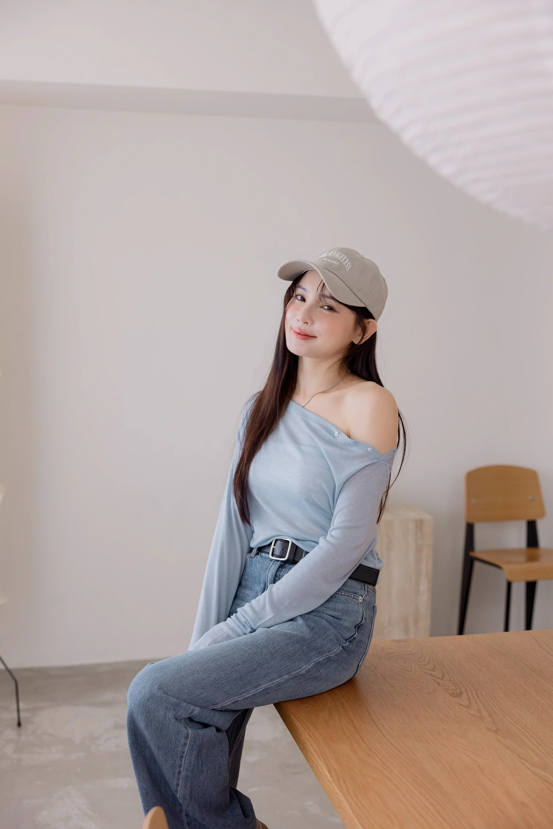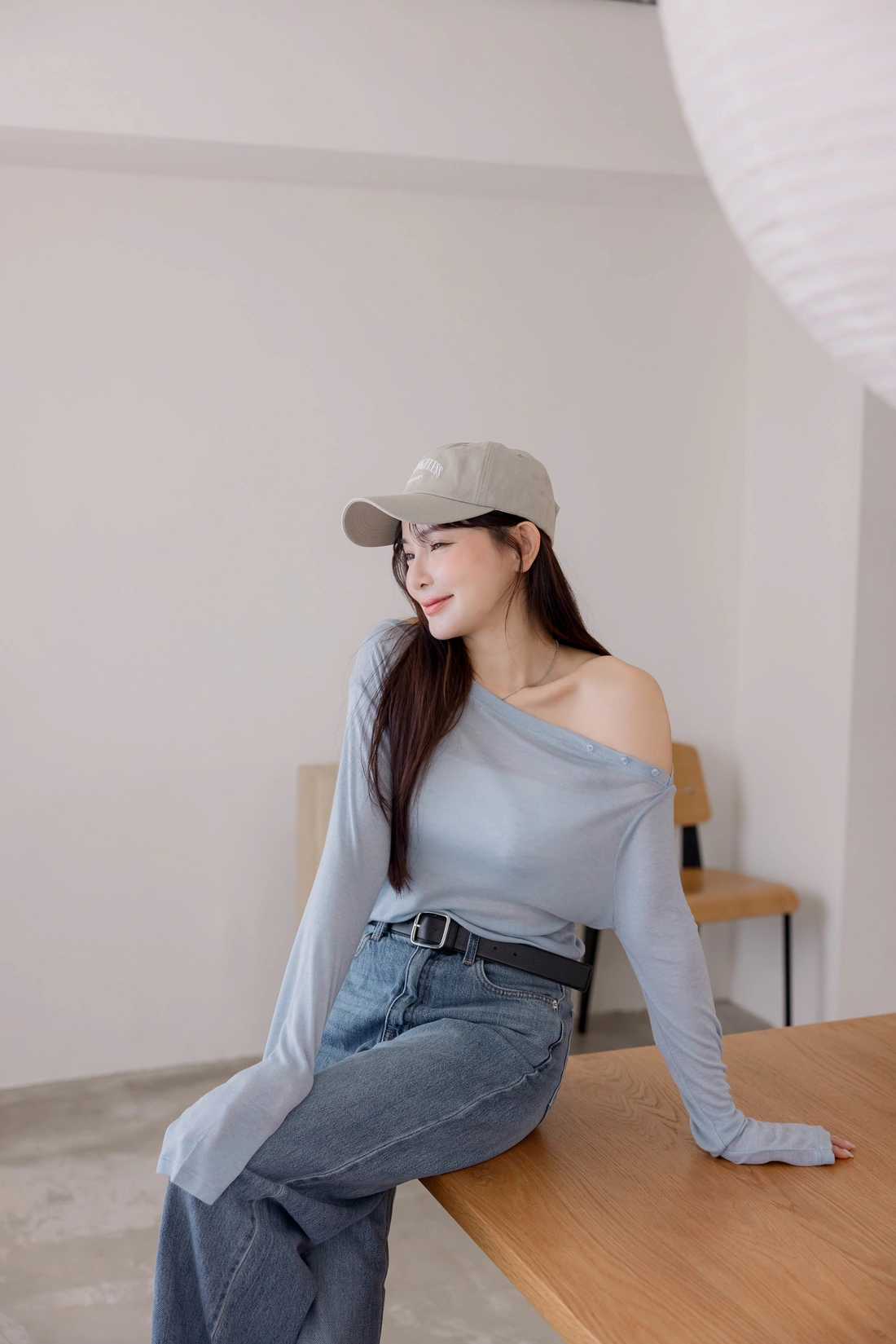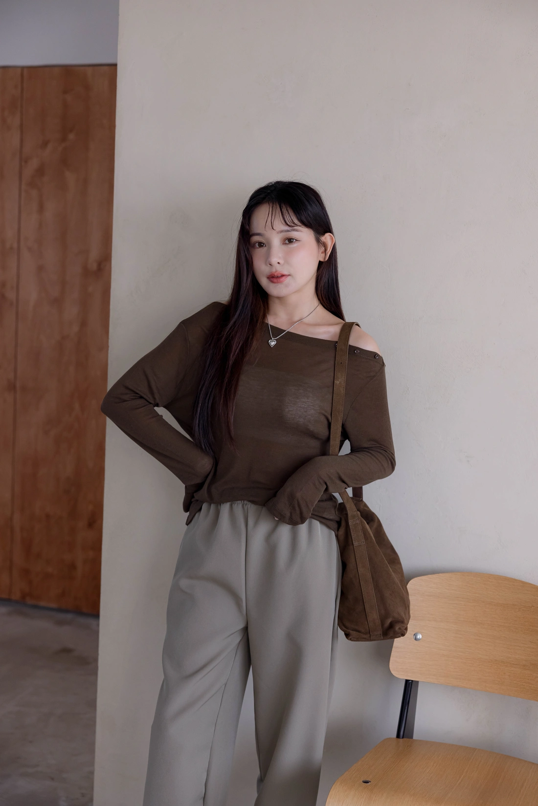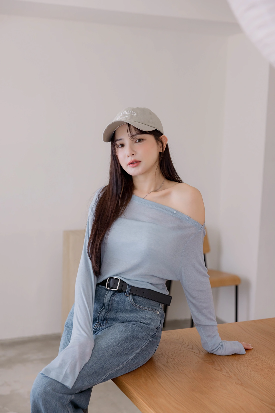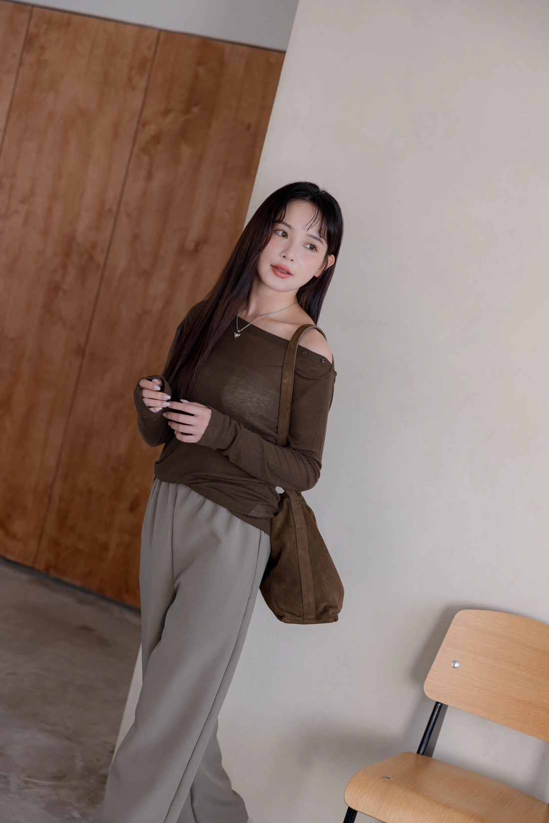 正韓製 超親膚大彈力肩開釦長袖棉衫/5色