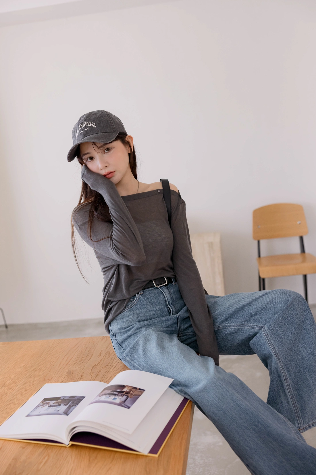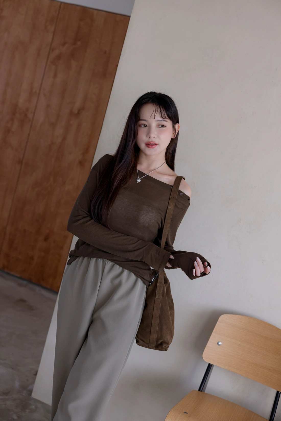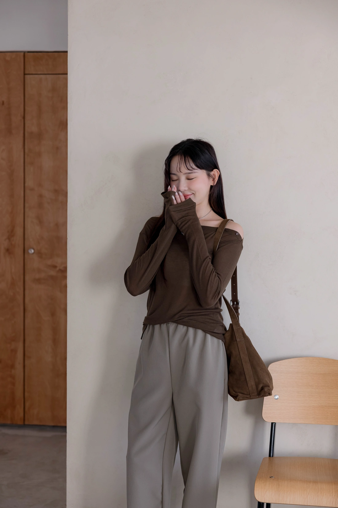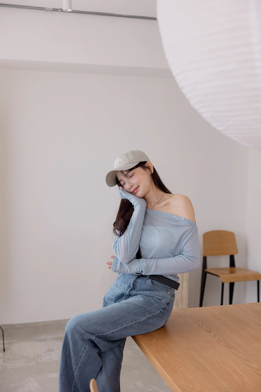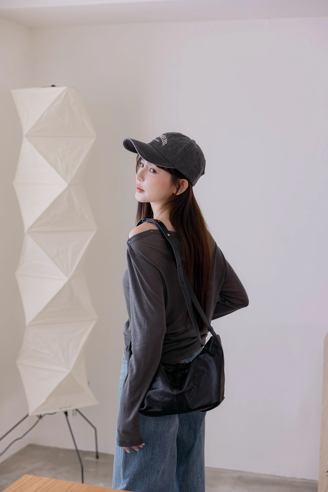 正韓製 超親膚大彈力肩開釦長袖棉衫/5色