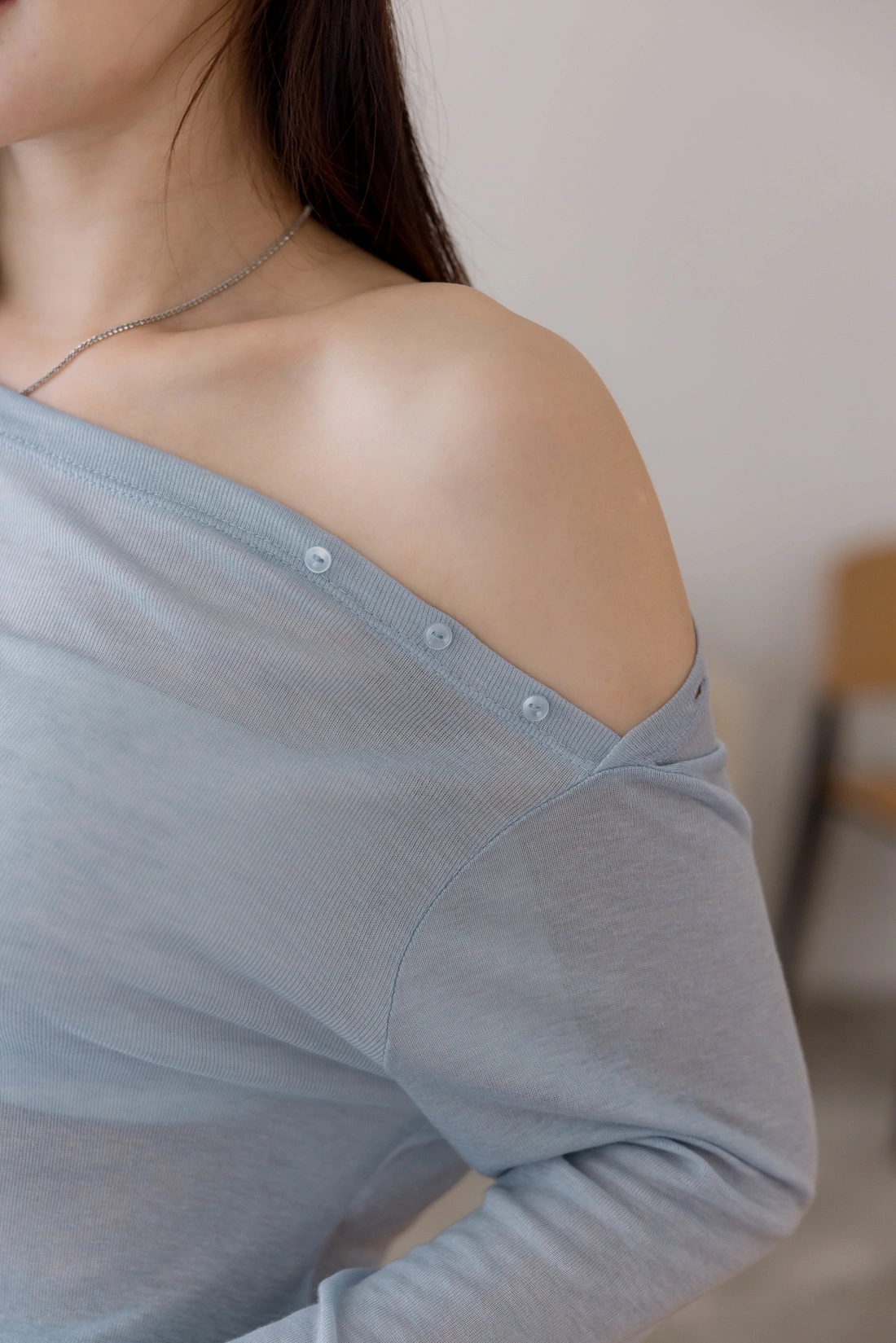 舒適棉質材質/左肩排釦設計/親膚透膚穿起來非常舒服