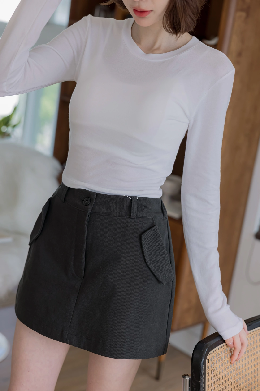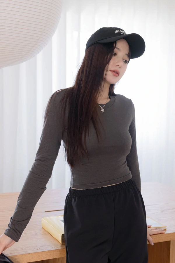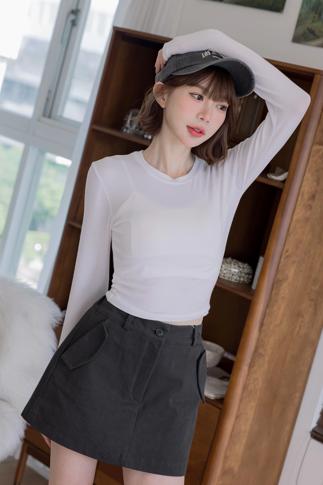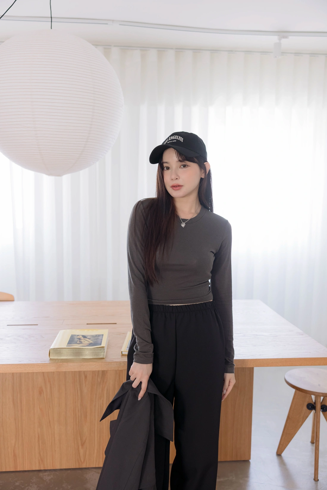 短版衣長/圓領設計素面上衣/舒適棉質材質