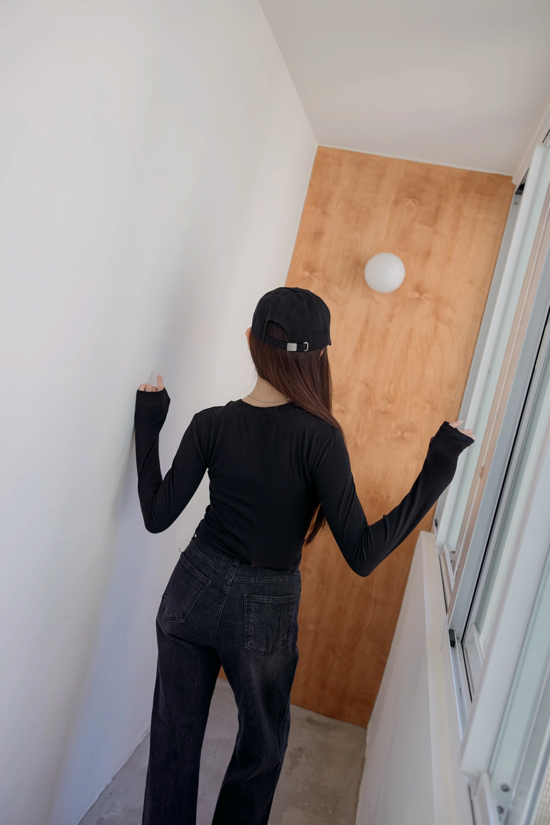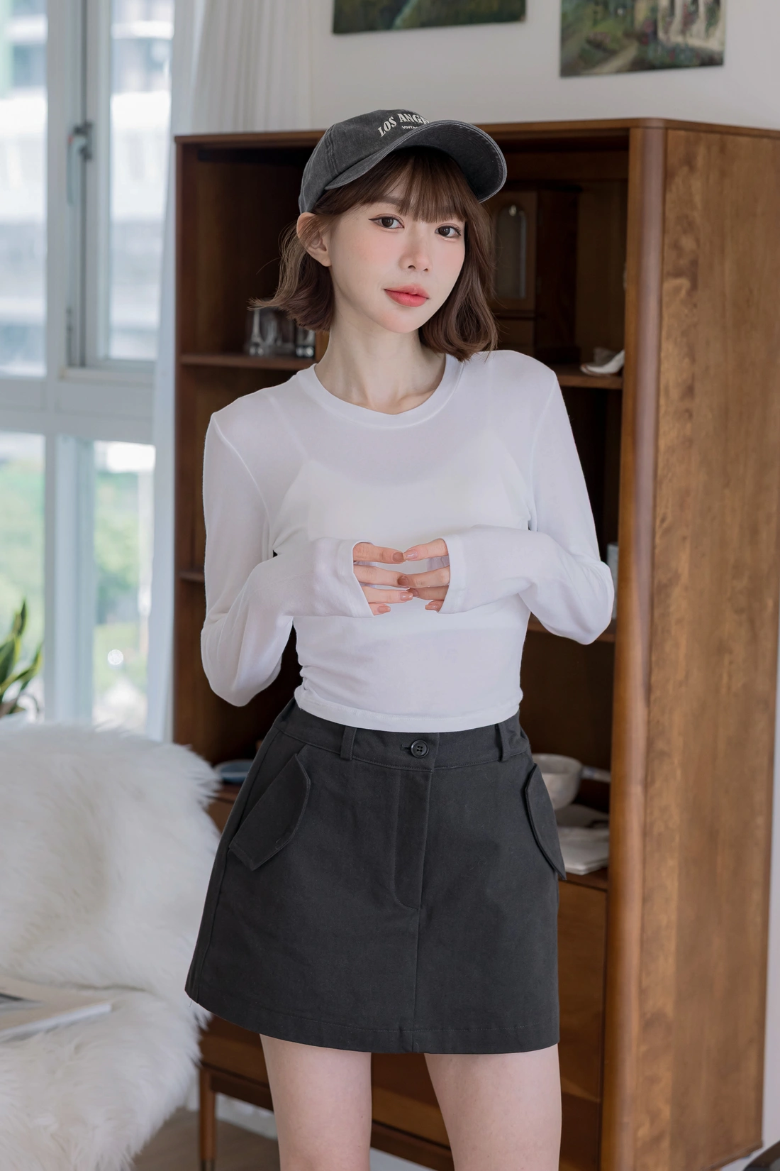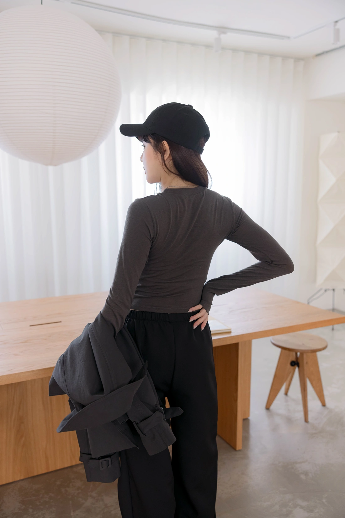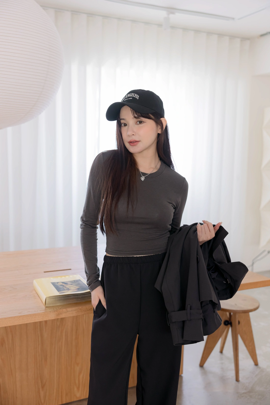 短版衣長/圓領設計素面上衣/舒適棉質材質