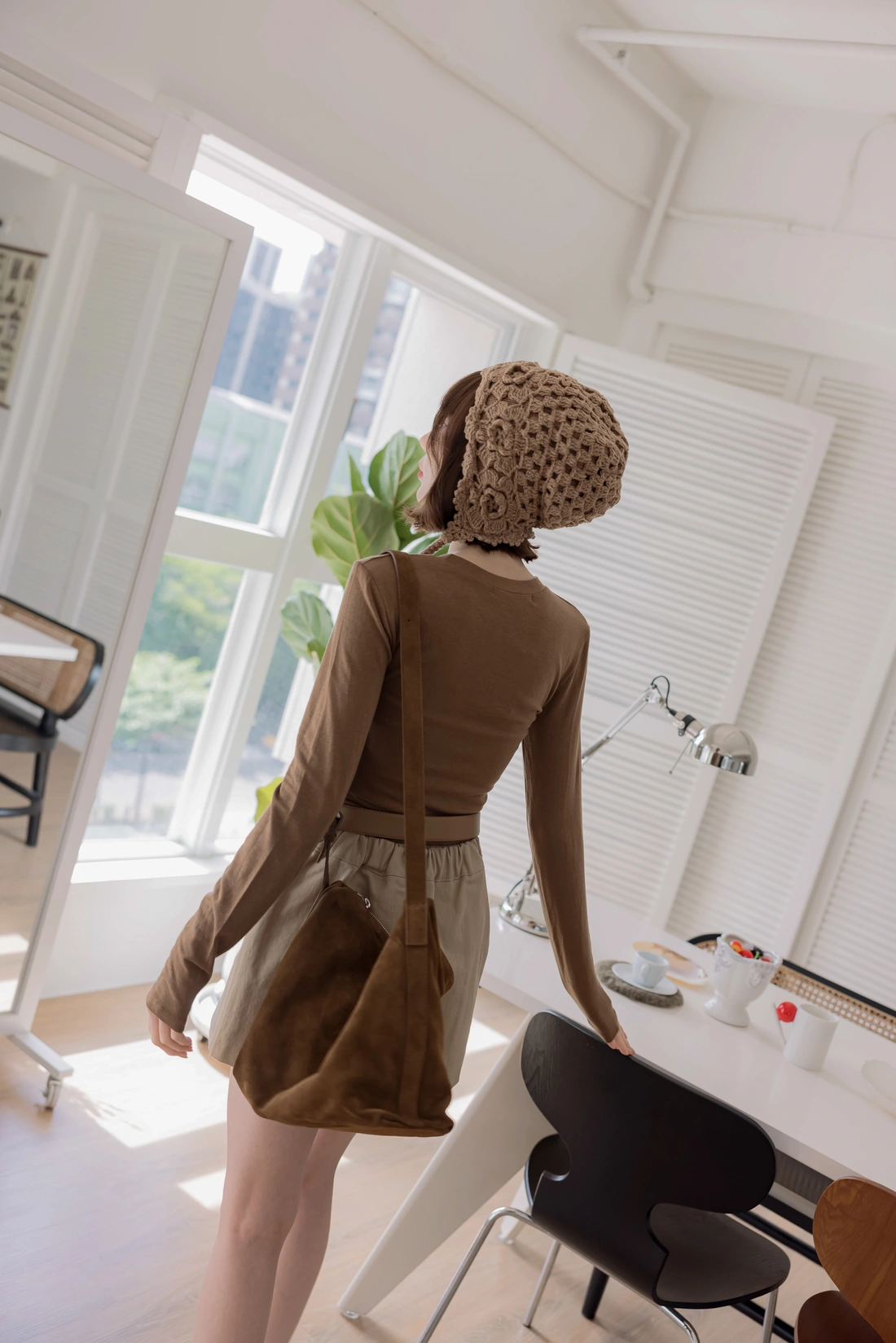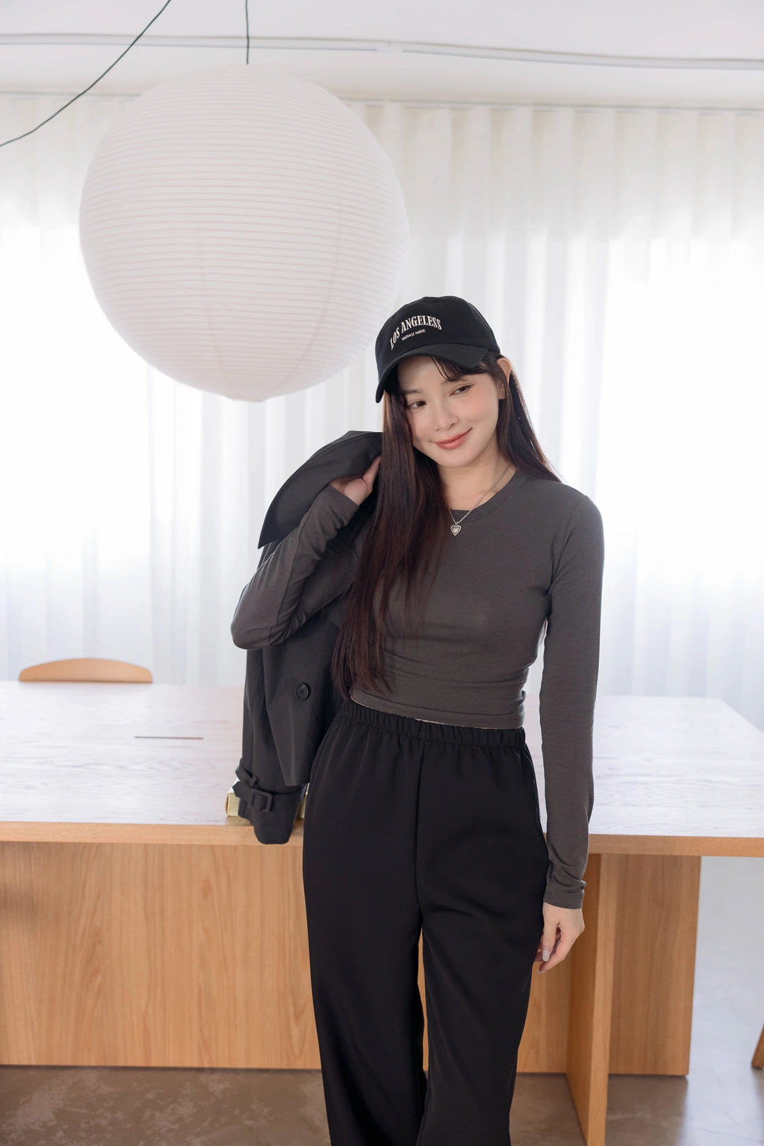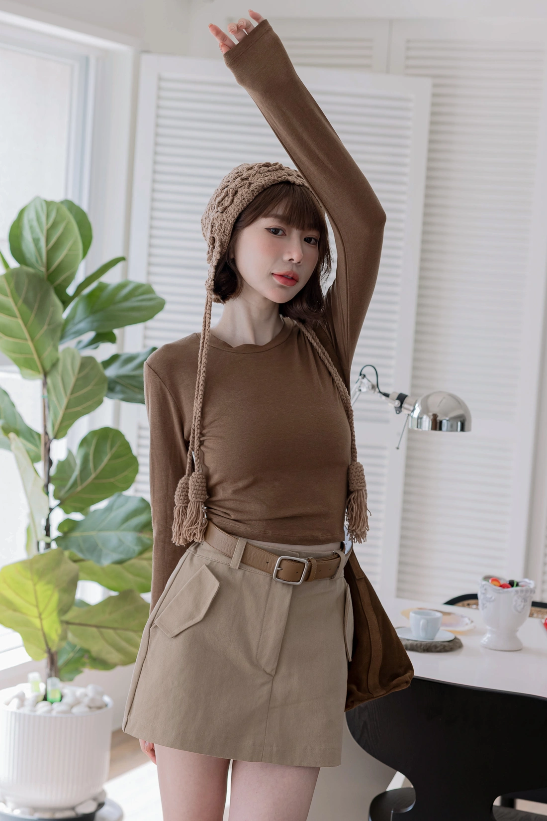 短版衣長/圓領設計素面上衣/舒適棉質材質