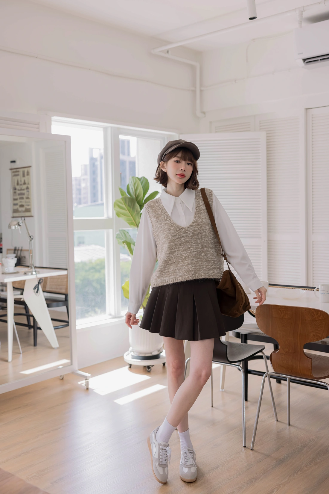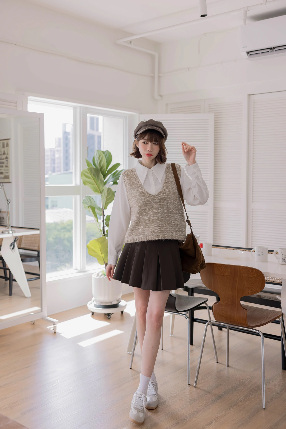 左胸銀圓釦設計/實用兩件式背心和襯衫/可以兩穿非常值得買