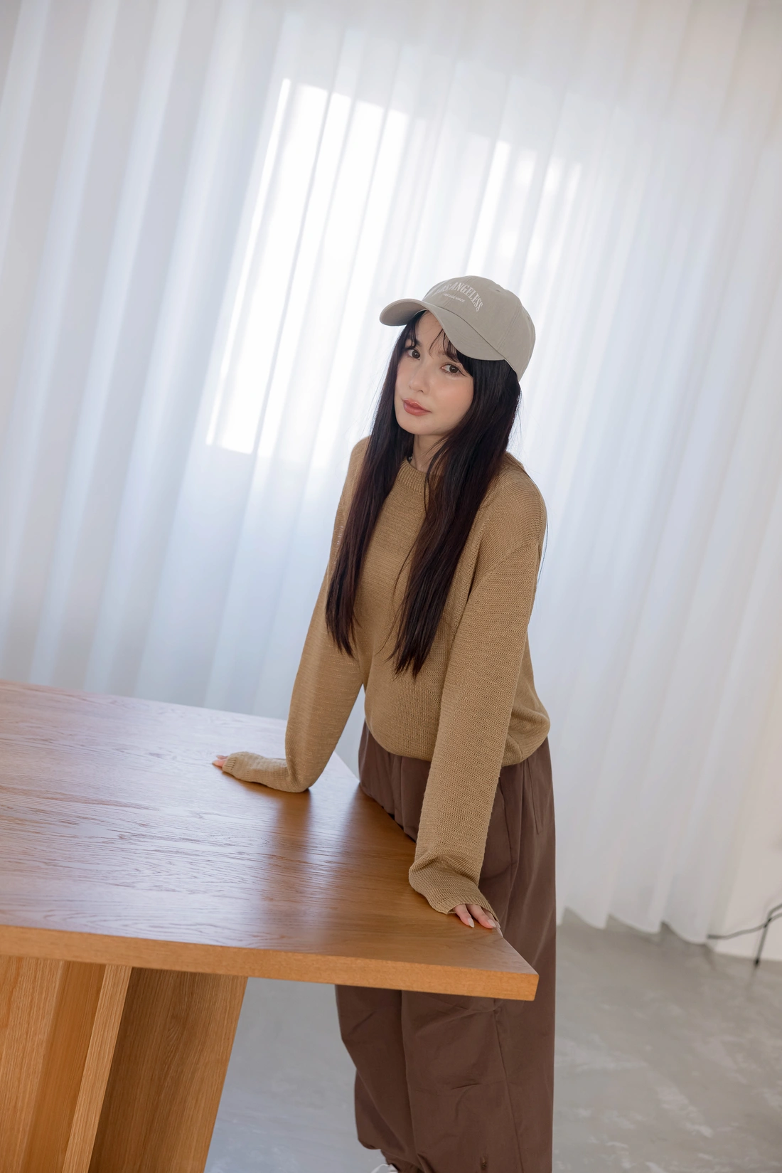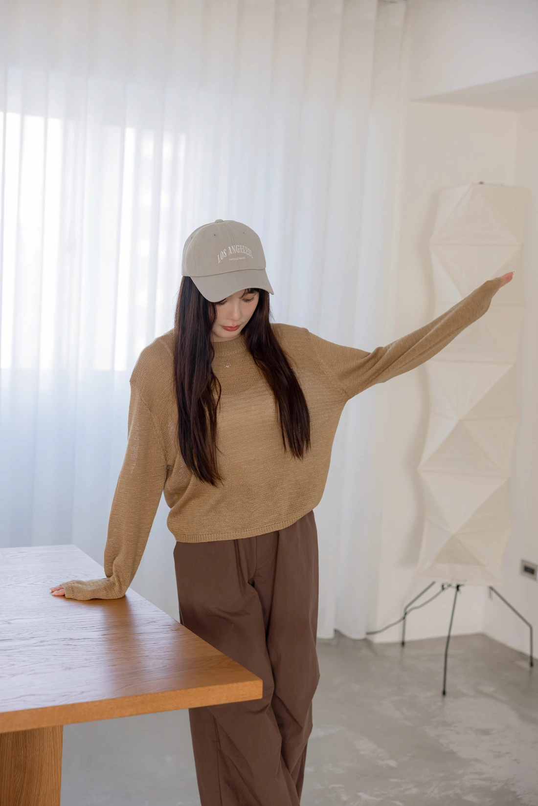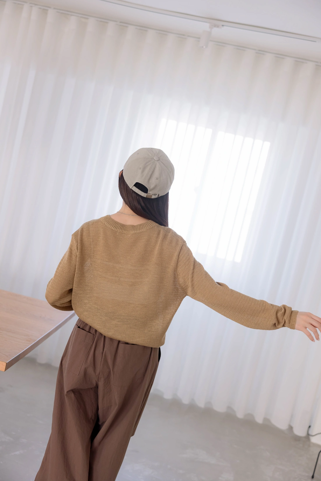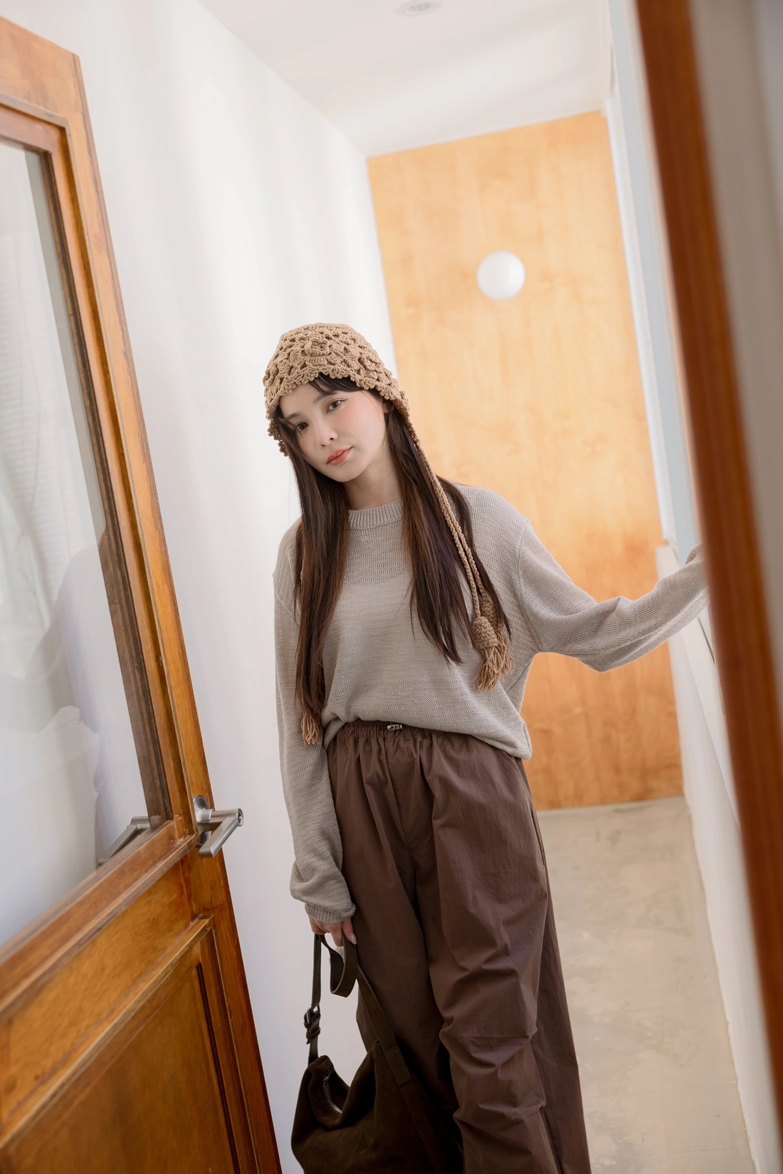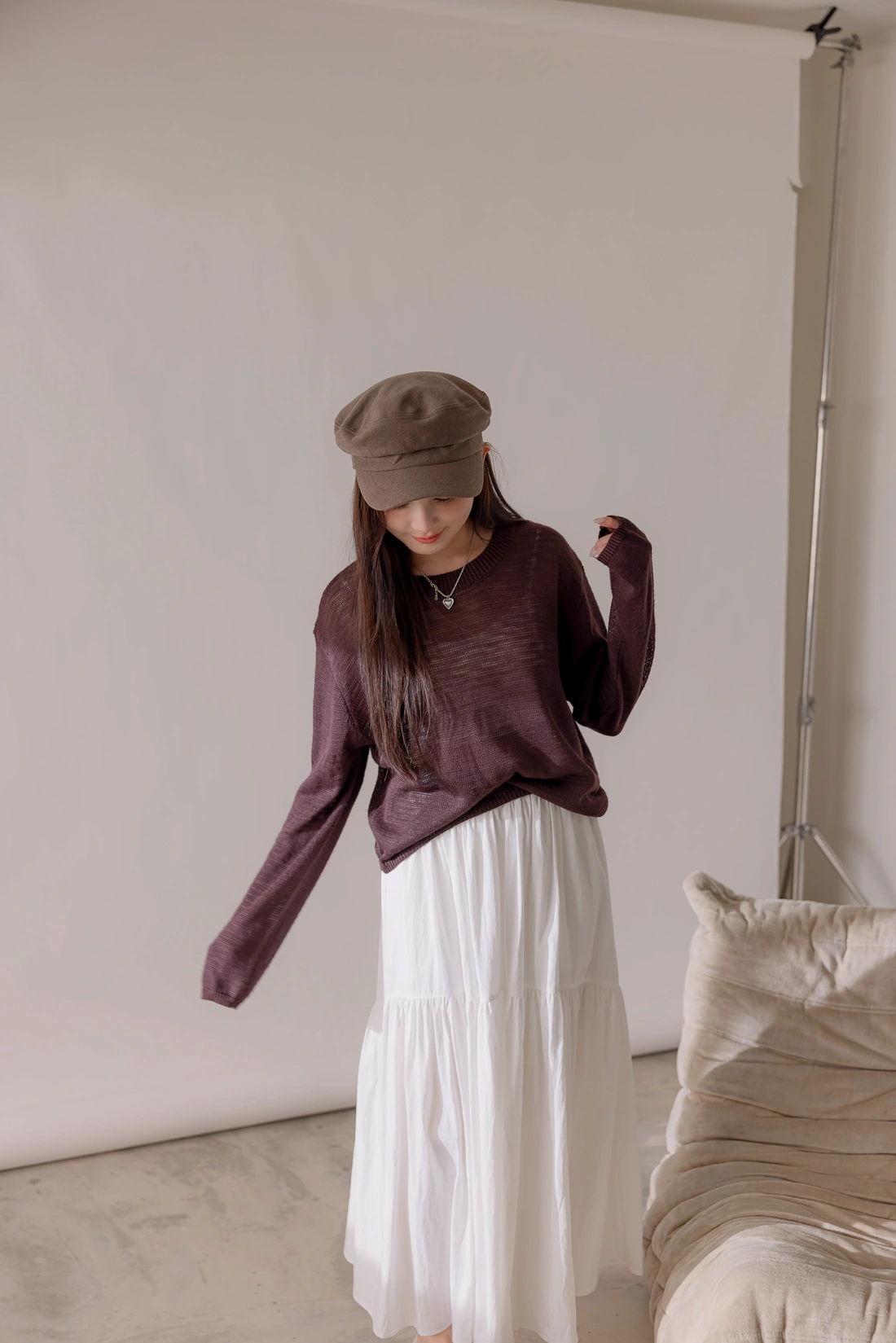 圓領設計寬鬆上衣/簍空布料設計/微透膚針織上衣