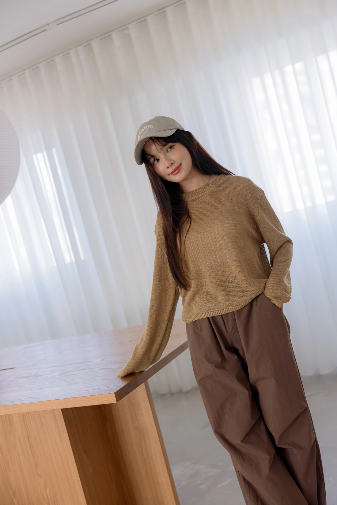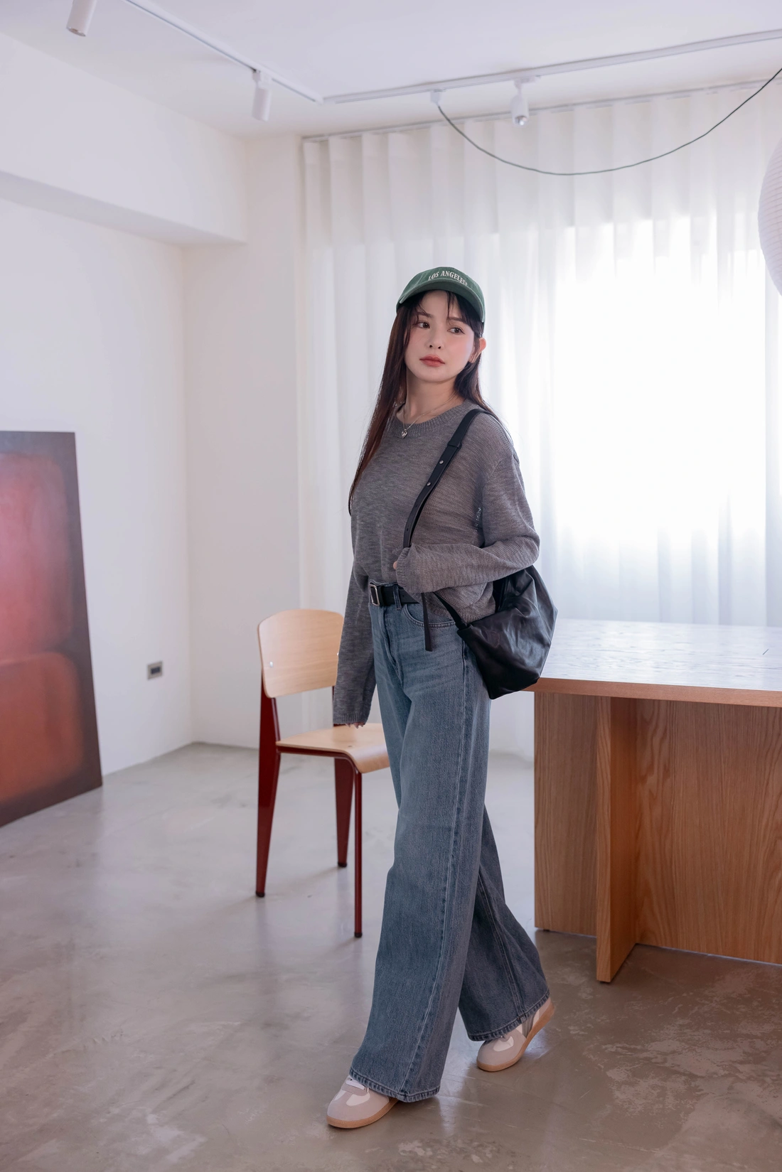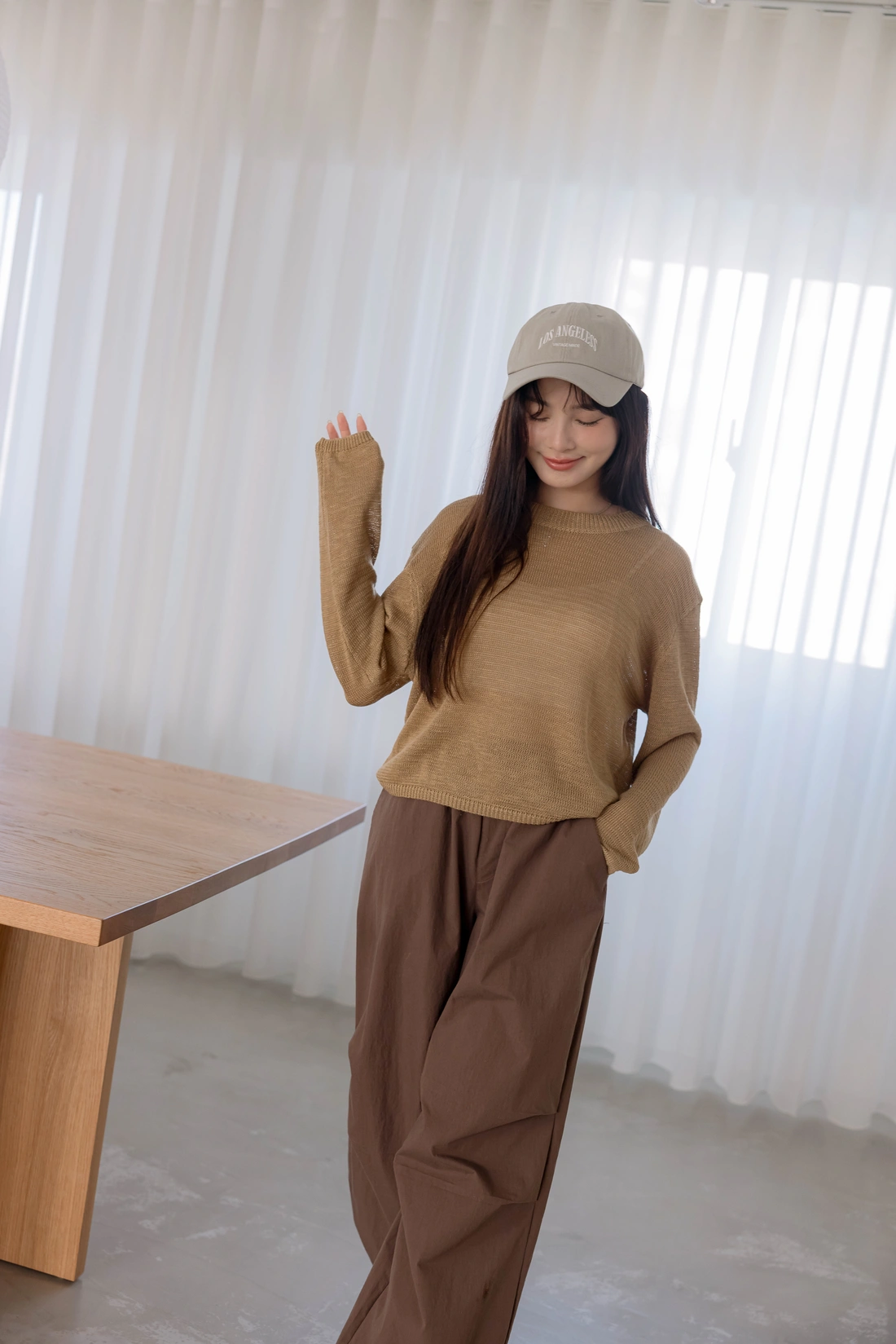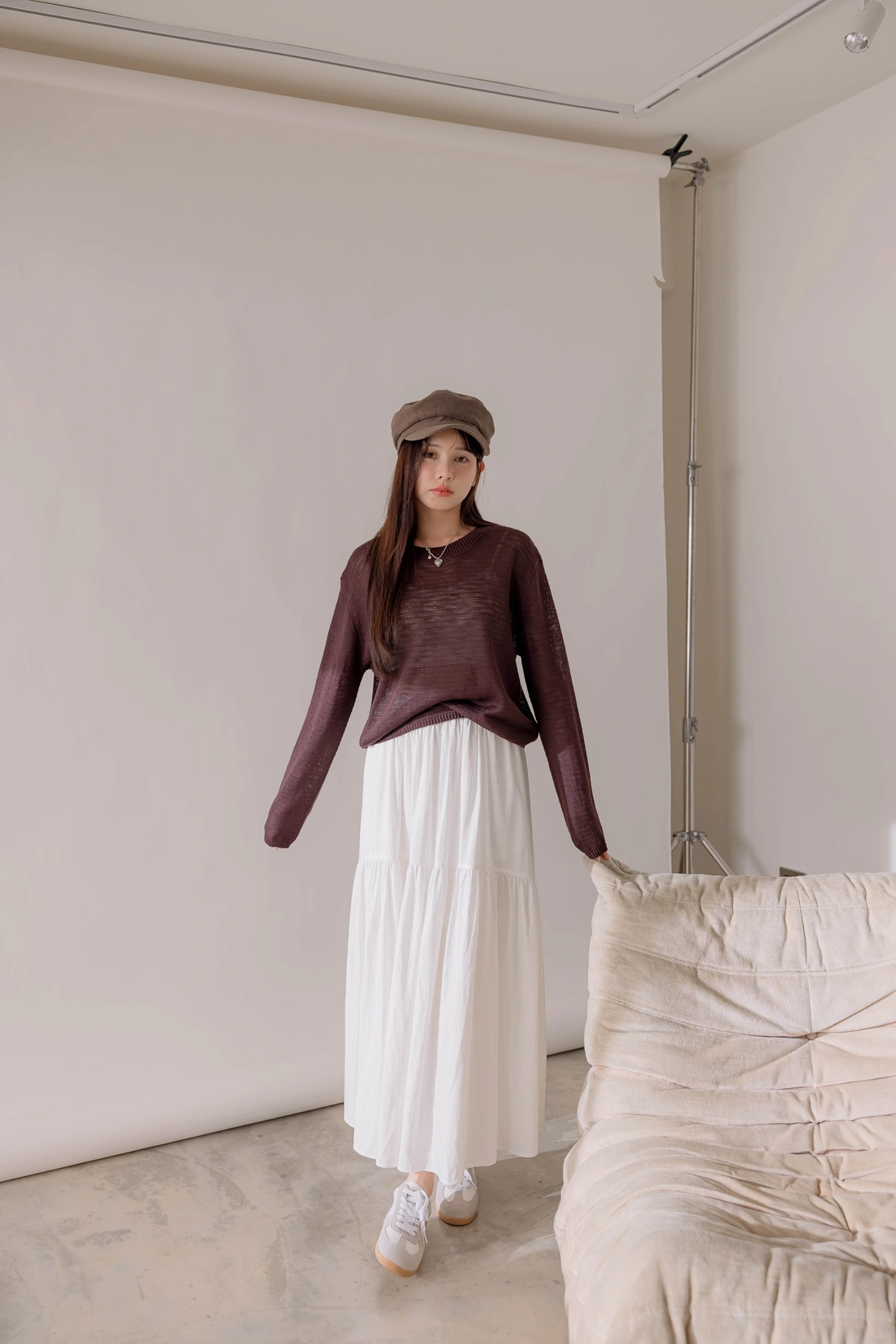 圓領設計寬鬆上衣/簍空布料設計/微透膚針織上衣
