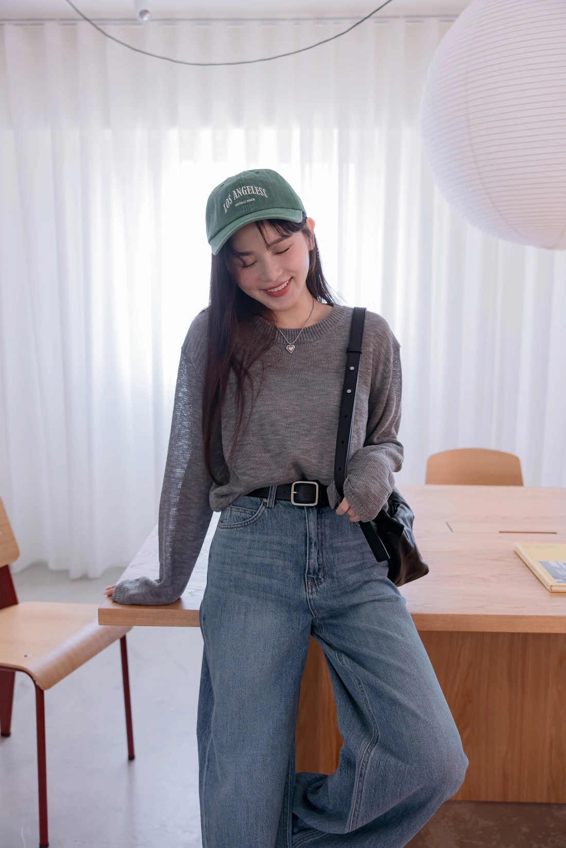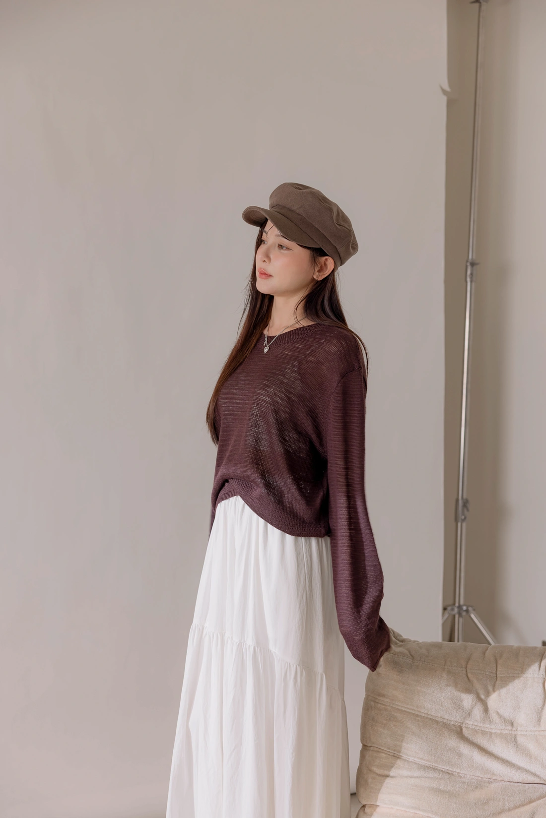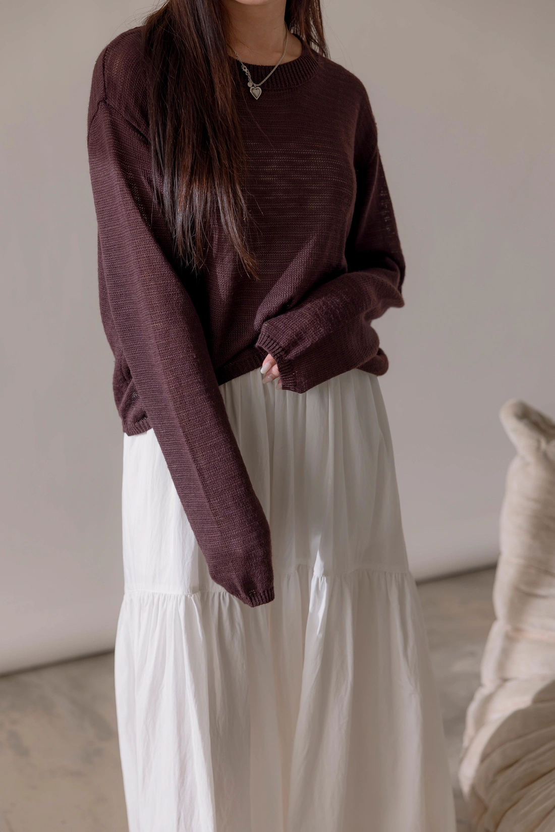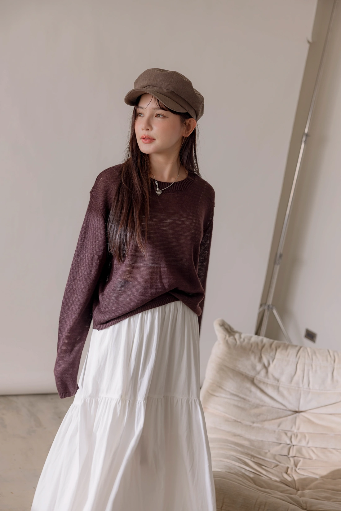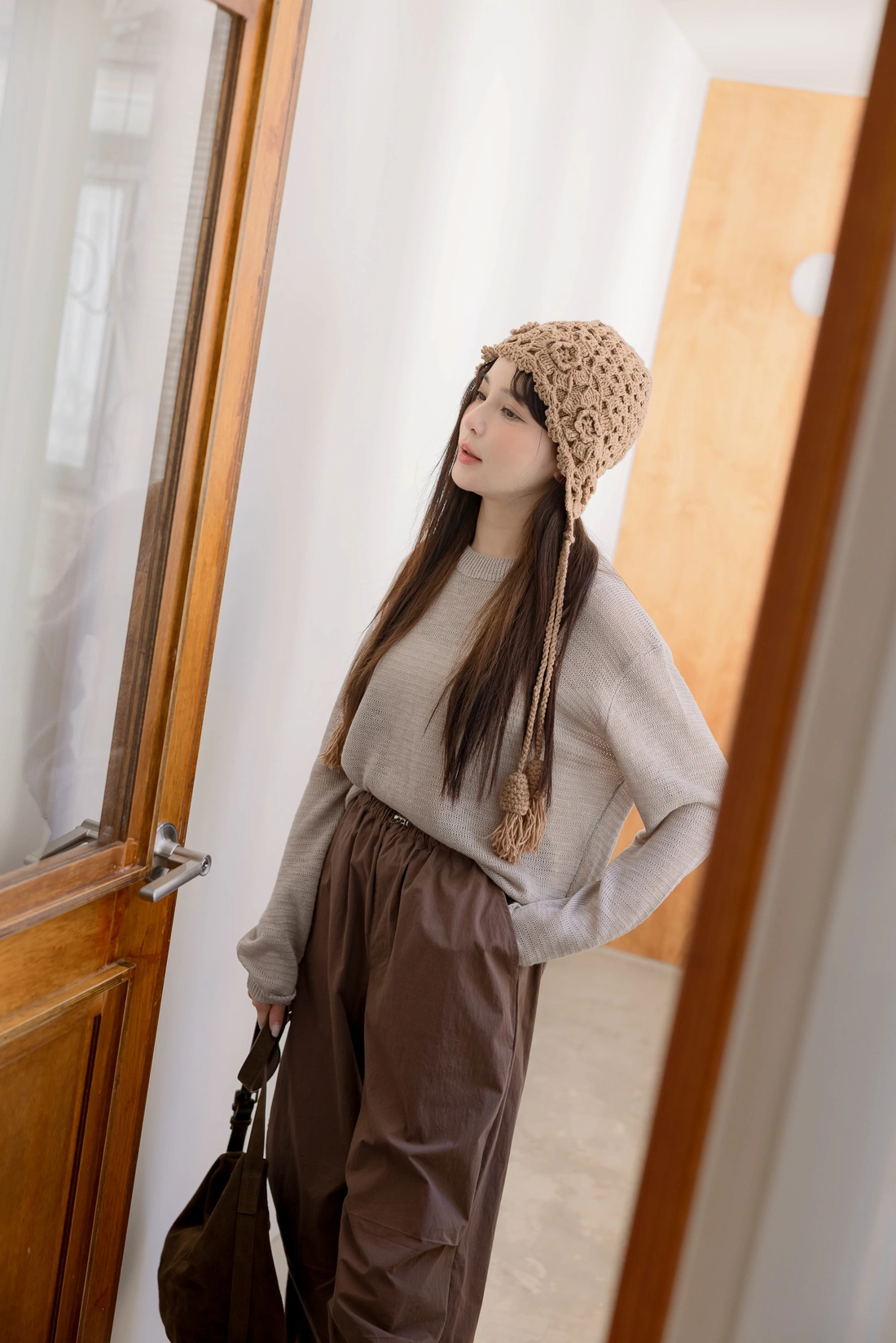 圓領設計寬鬆上衣/簍空布料設計/微透膚針織上衣
