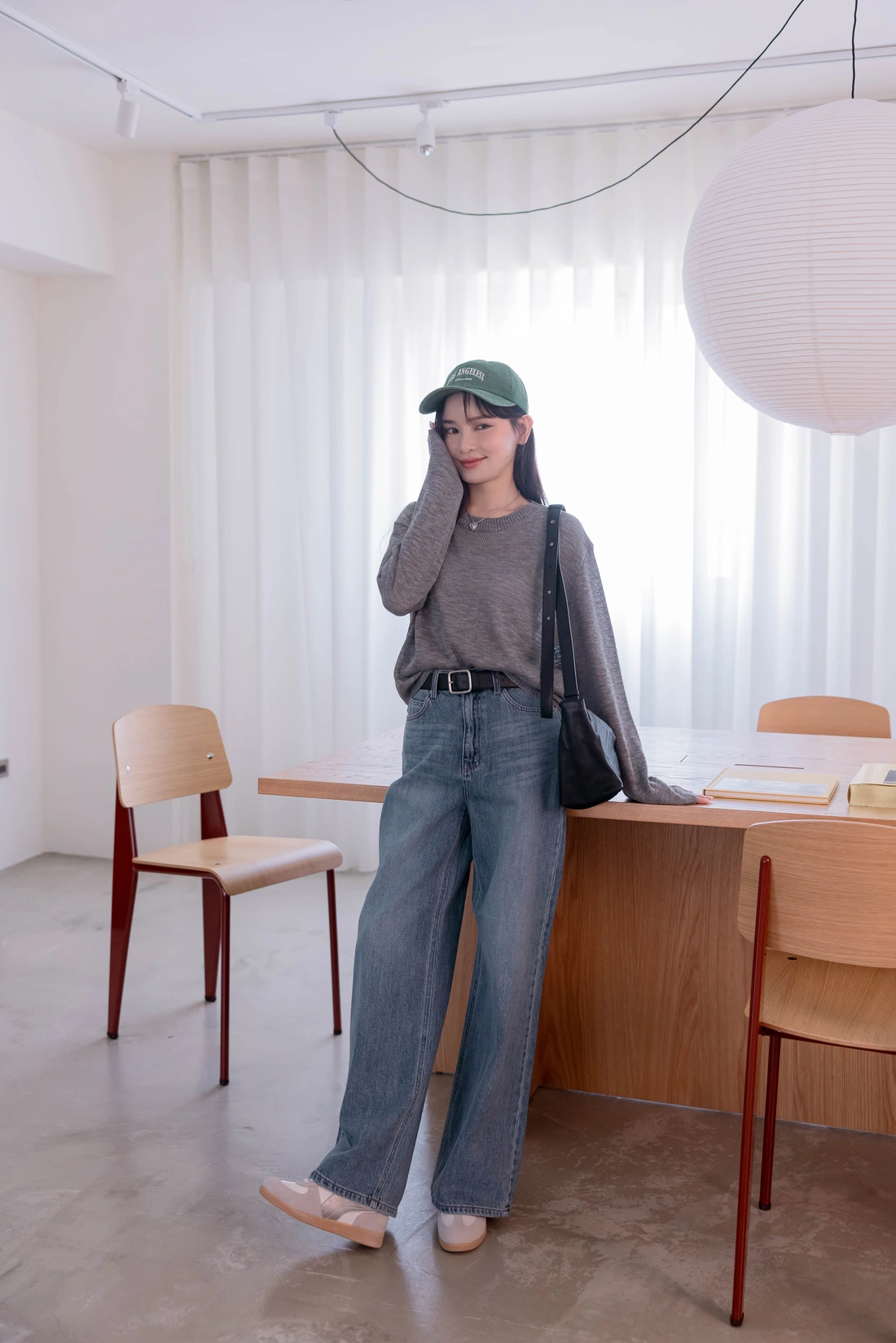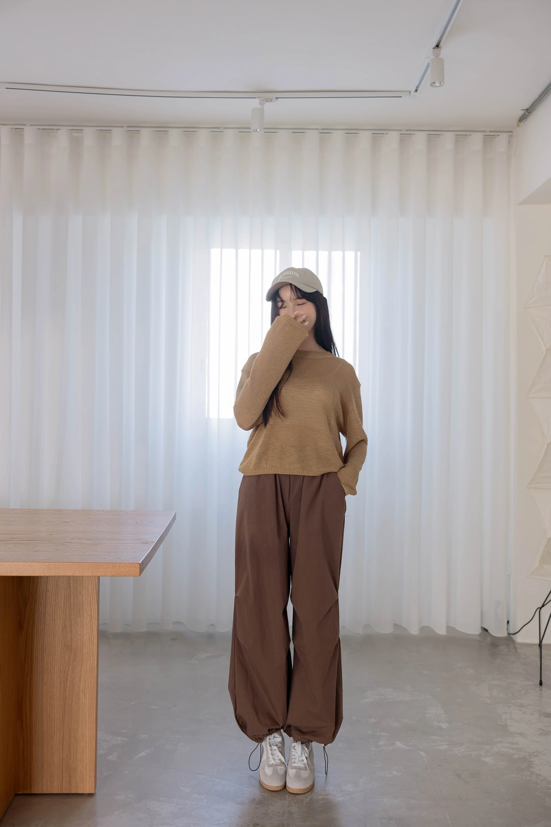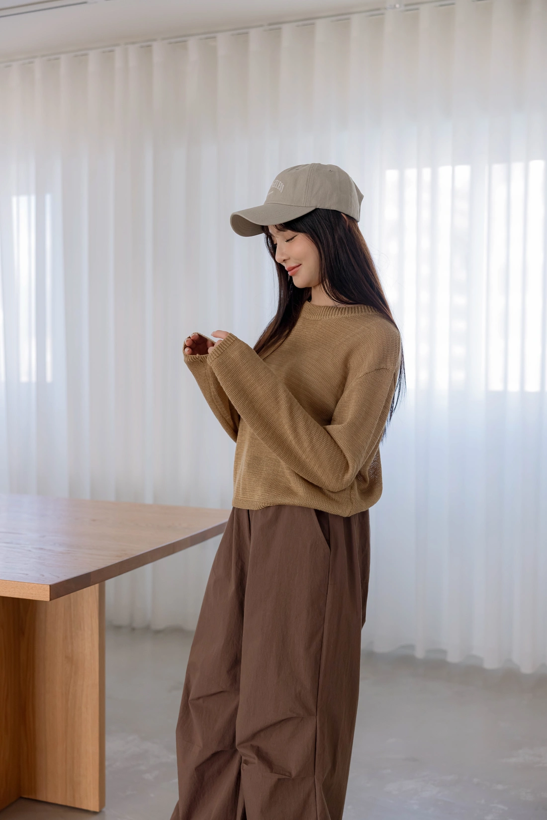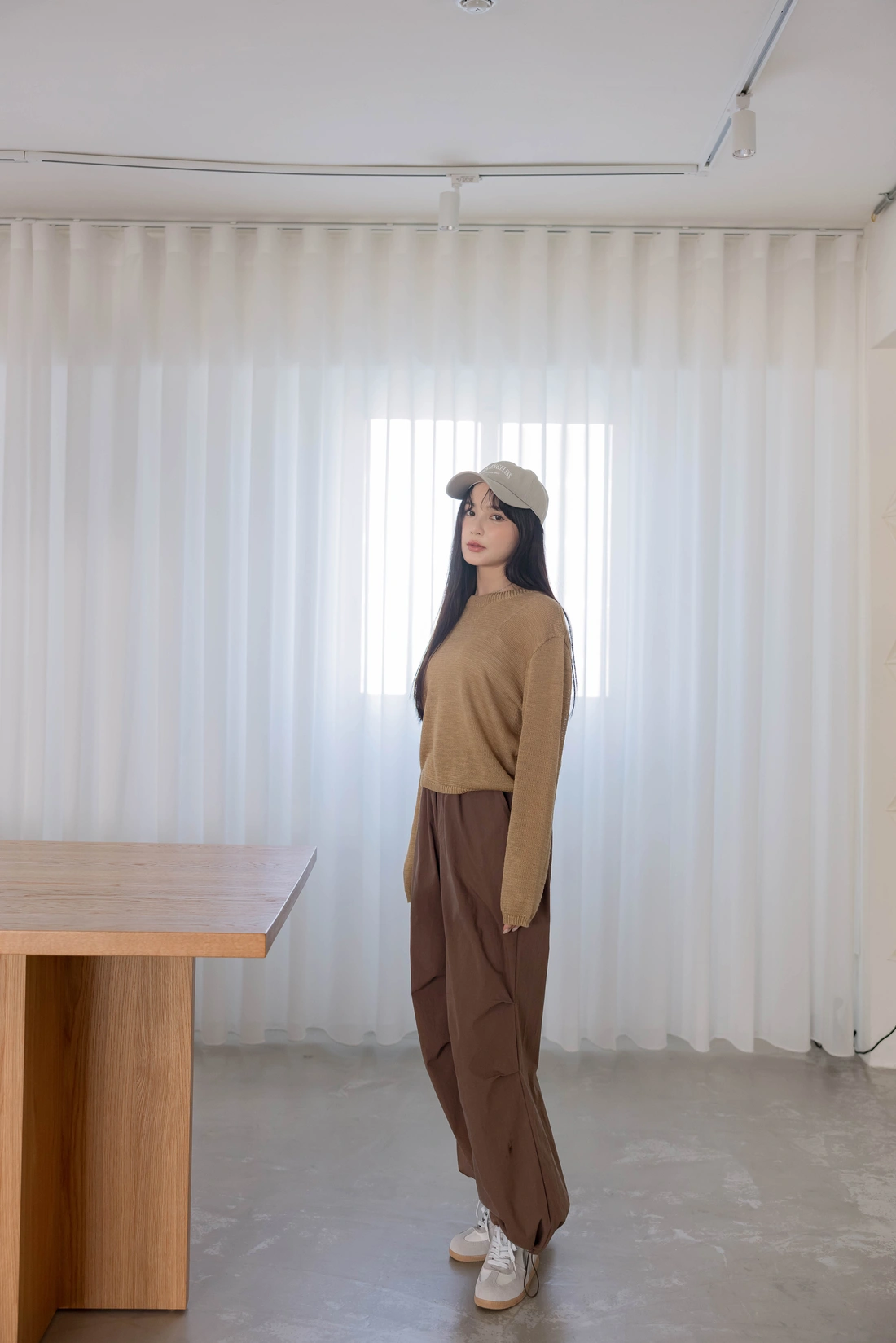 圓領設計寬鬆上衣/簍空布料設計/微透膚針織上衣