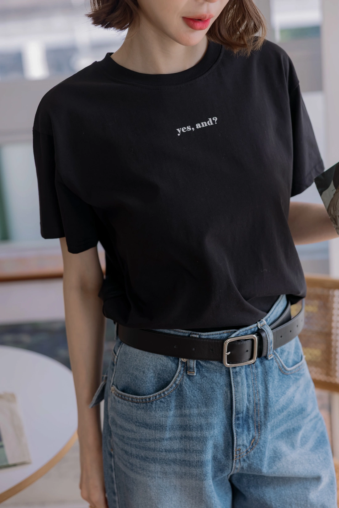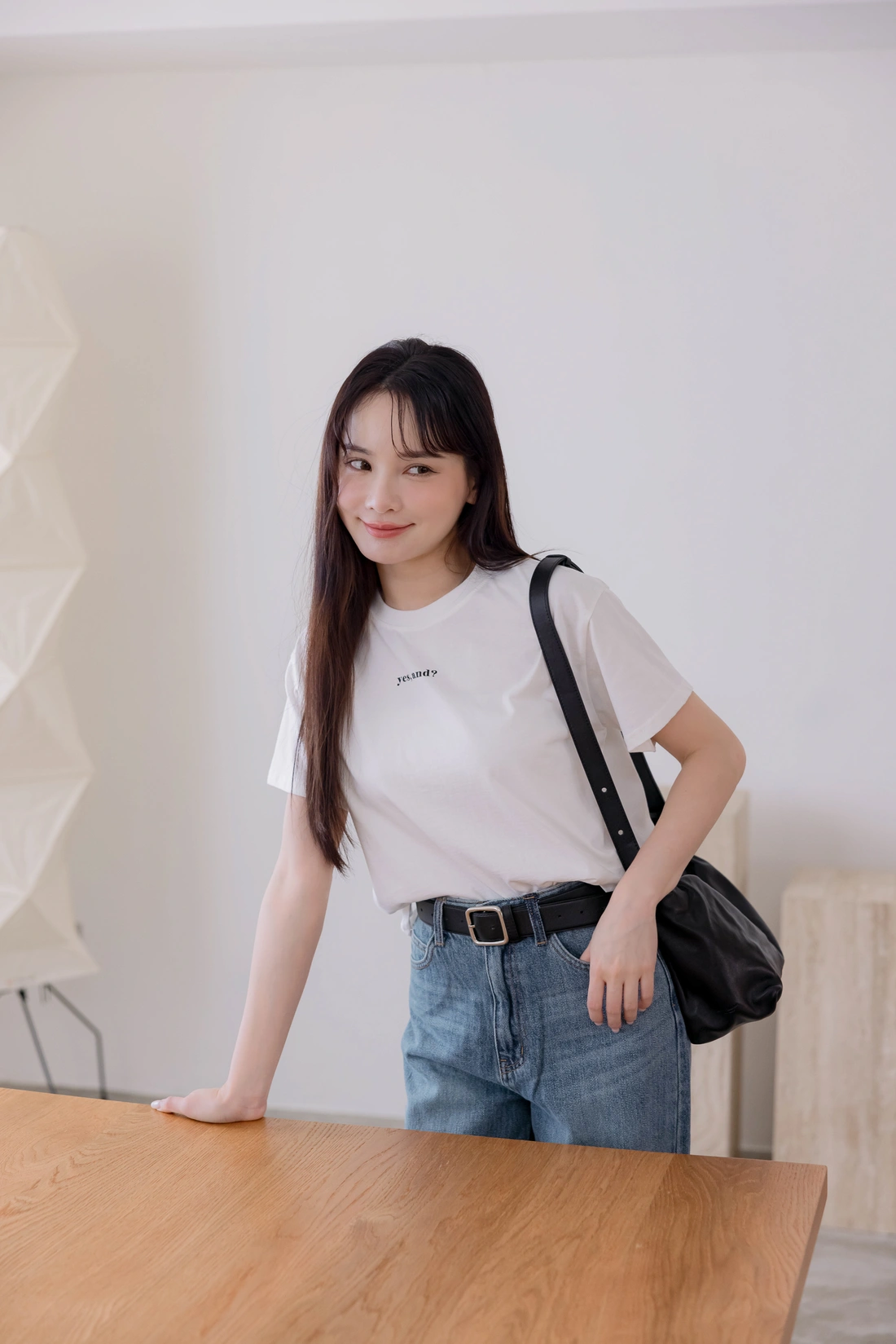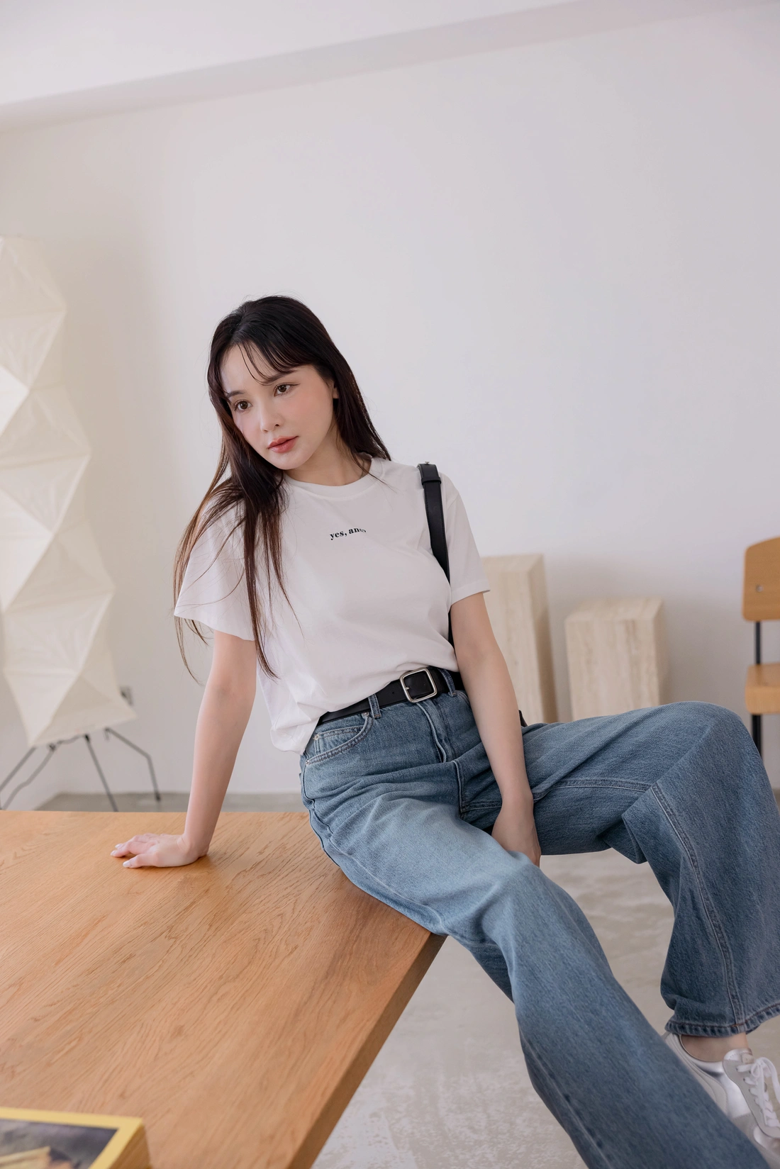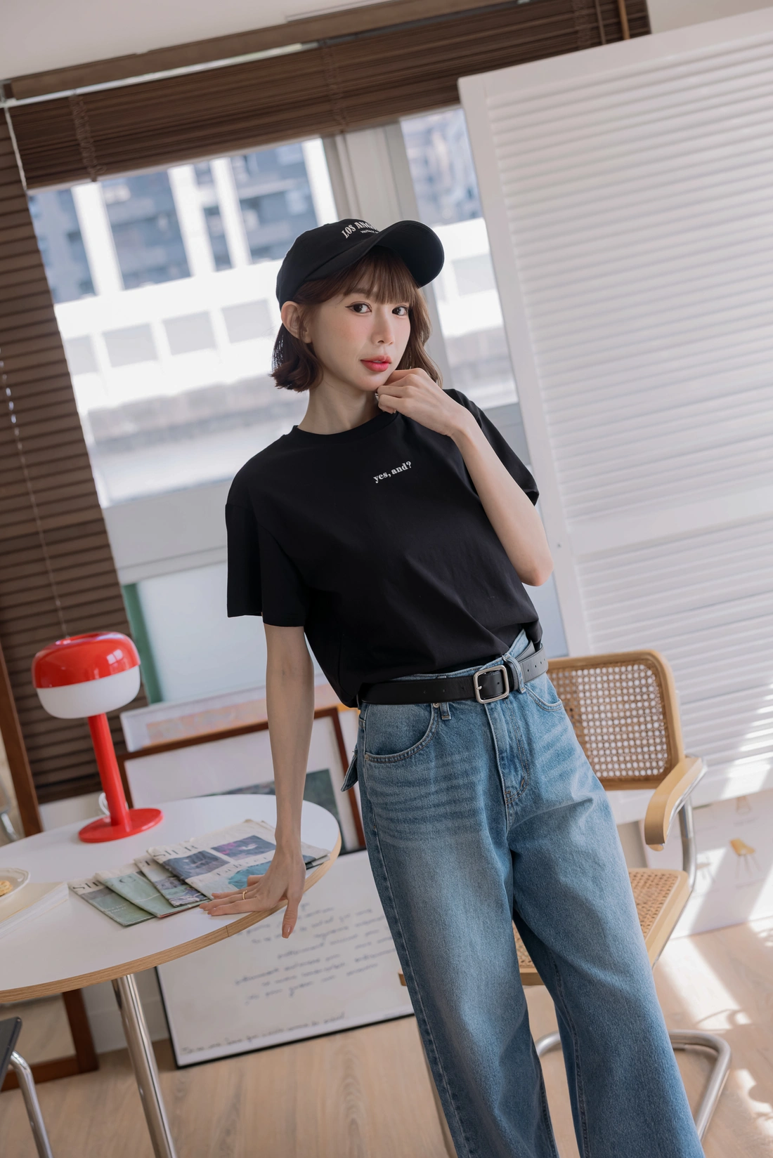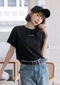 正面印有文字簡約標語/舒適棉質材質/短版衣長包色款T-shirt