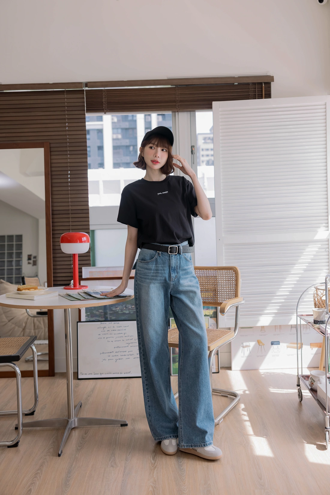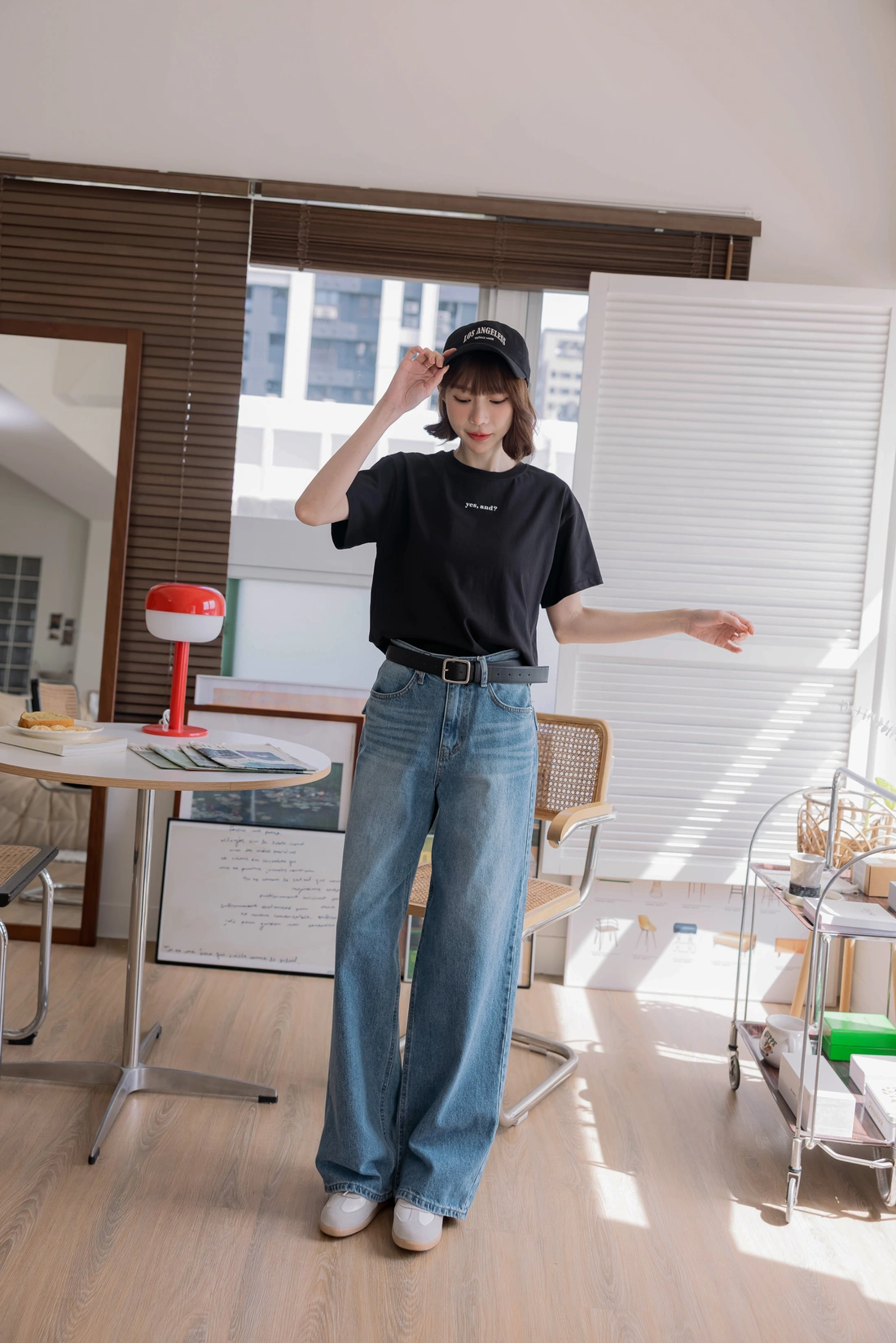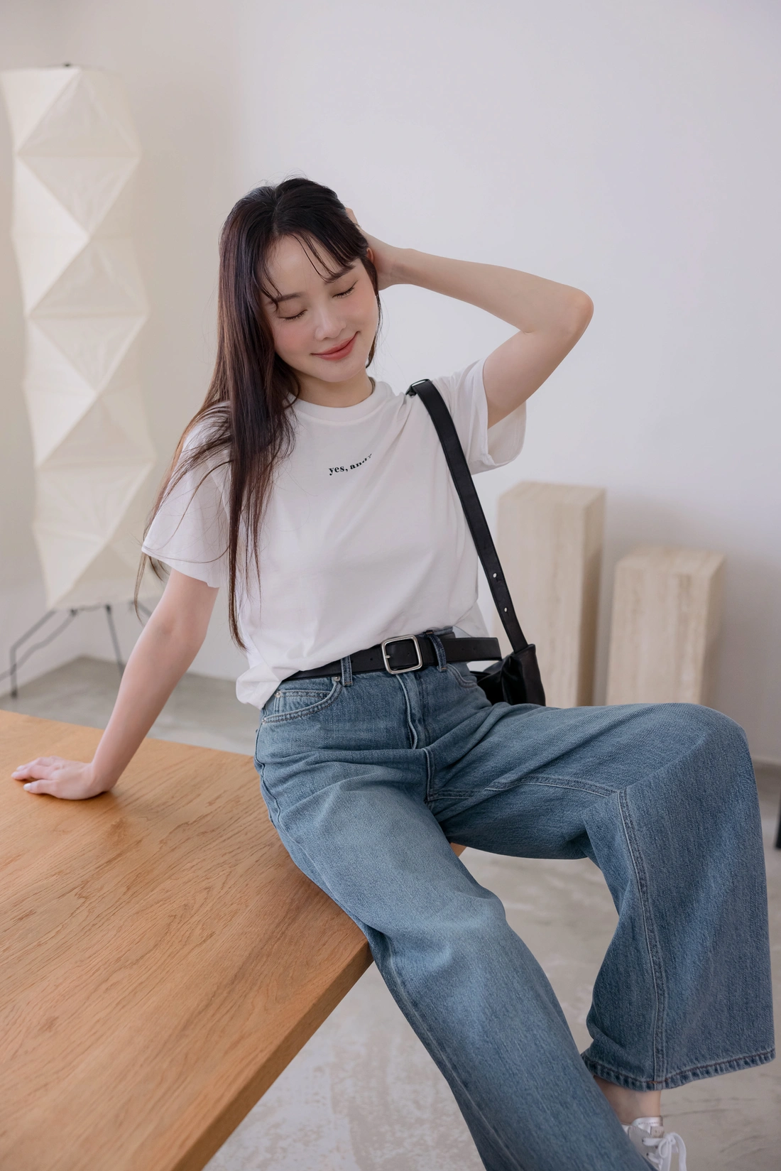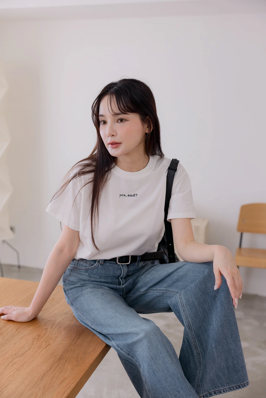 正面印有文字簡約標語/舒適棉質材質/短版衣長包色款T-shirt