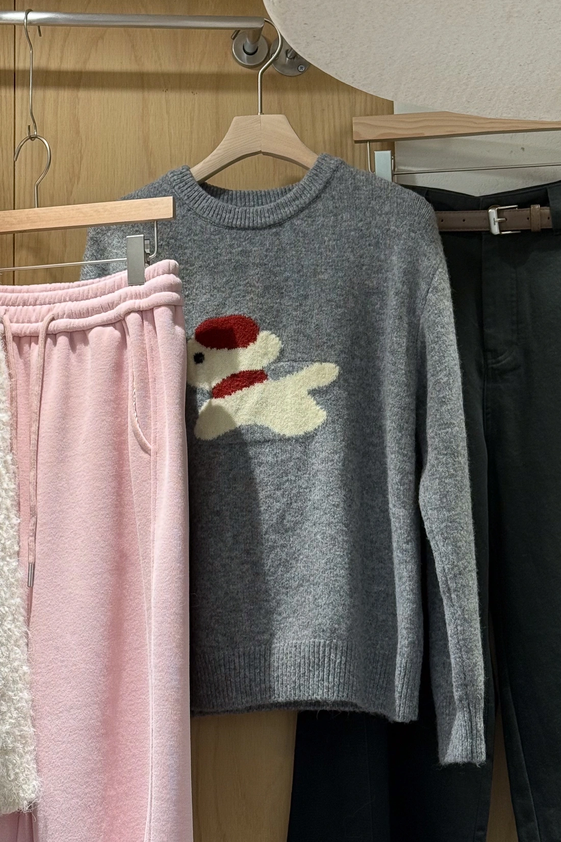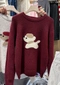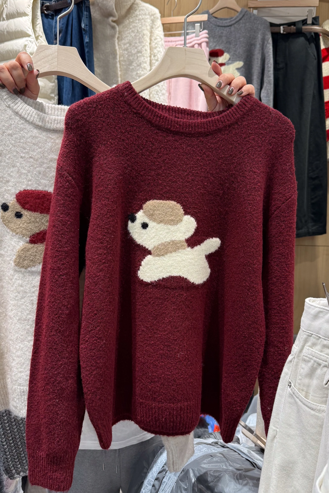 正面狗狗毛線刺繡設計上衣/圓領設計/聖誕節必買紅