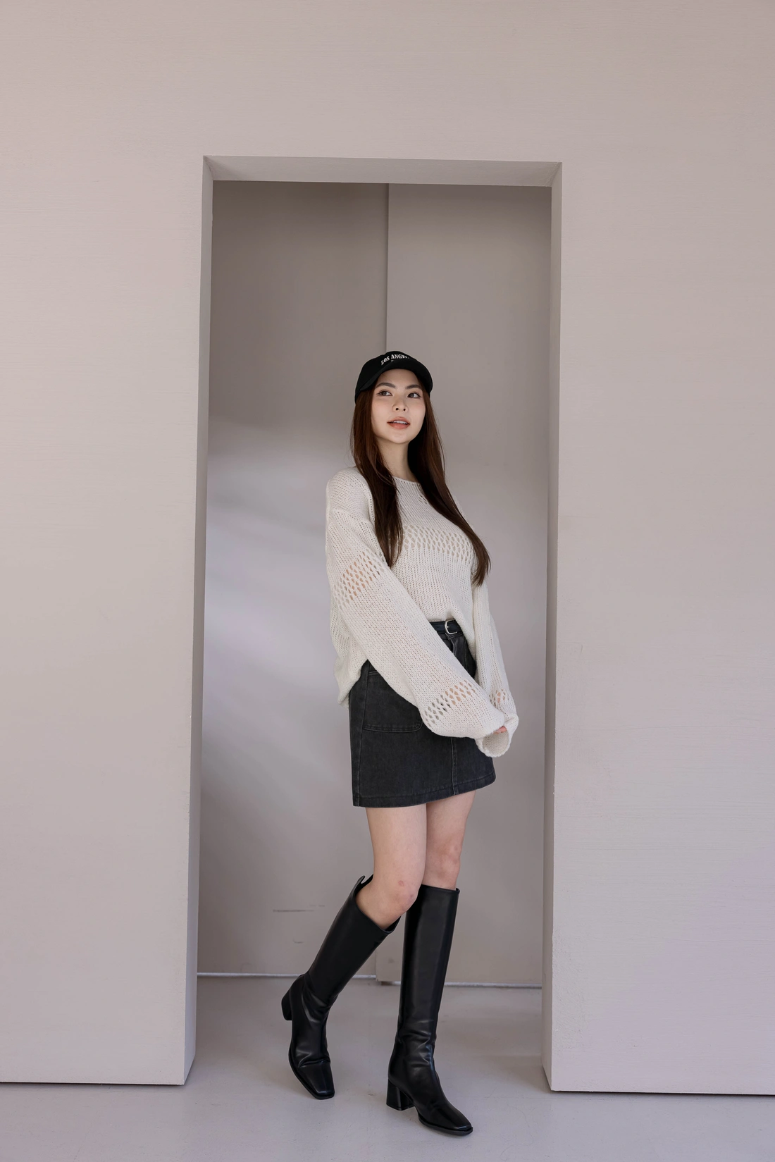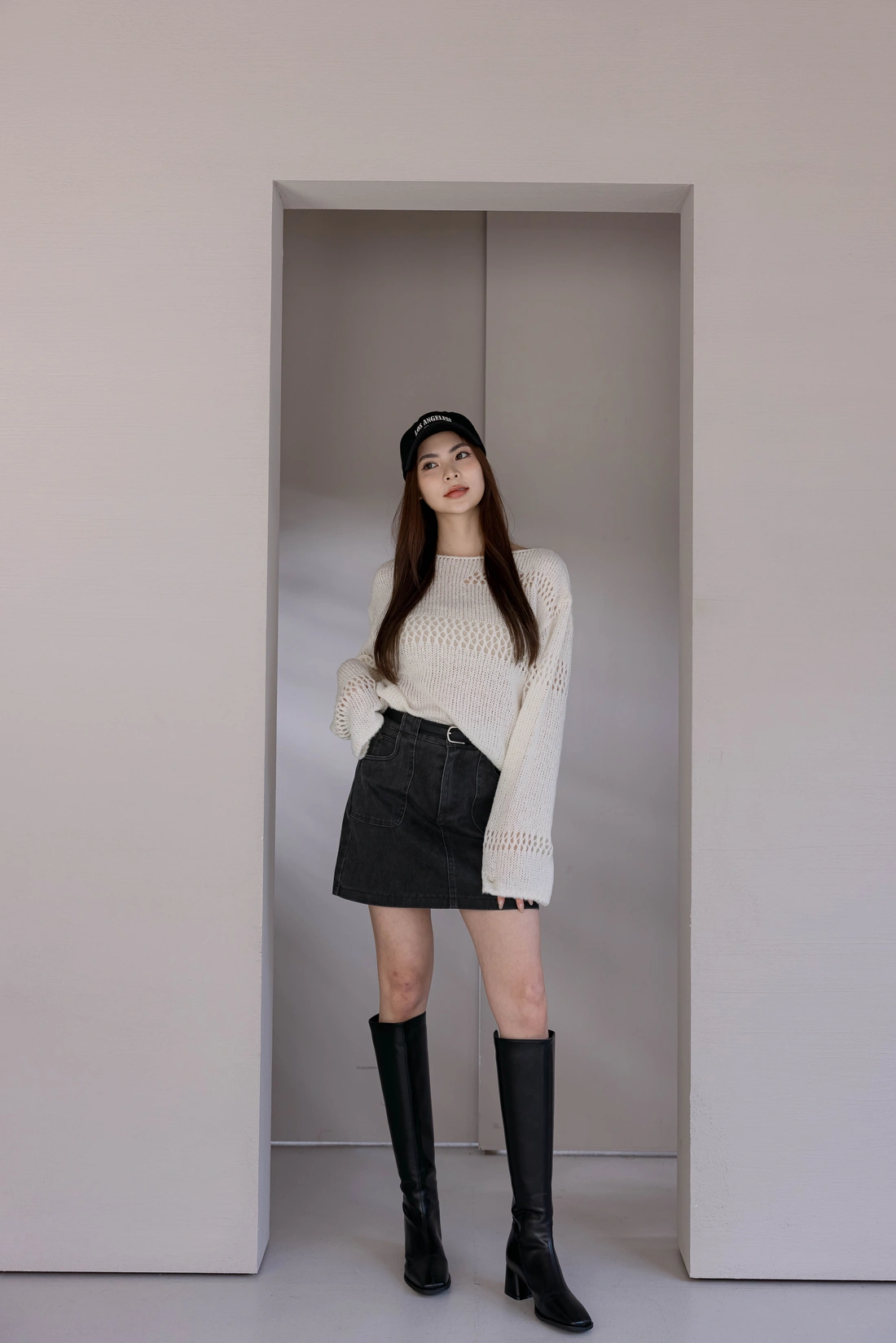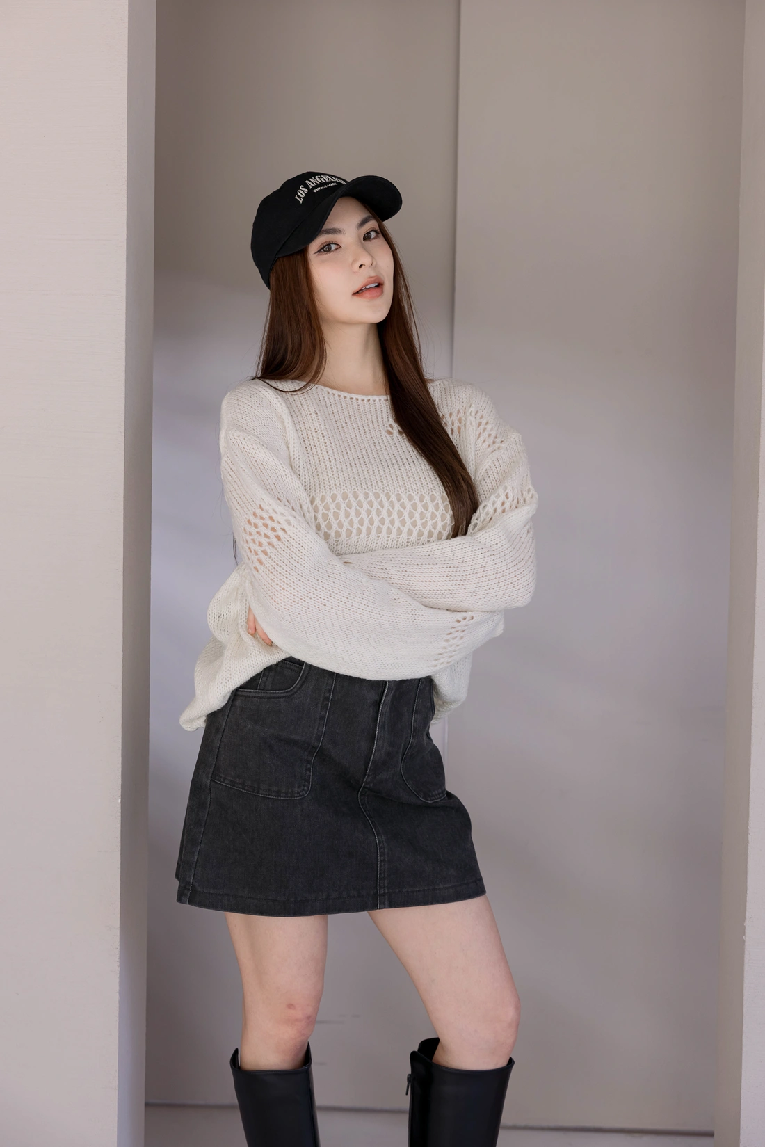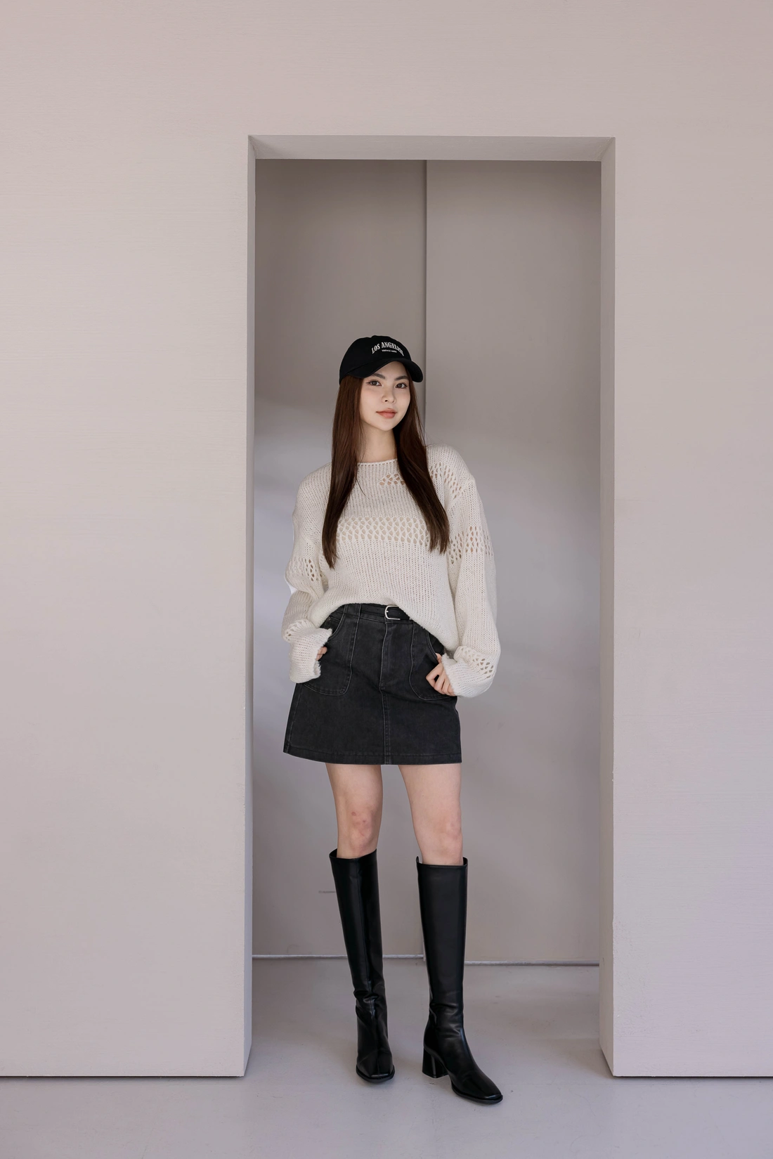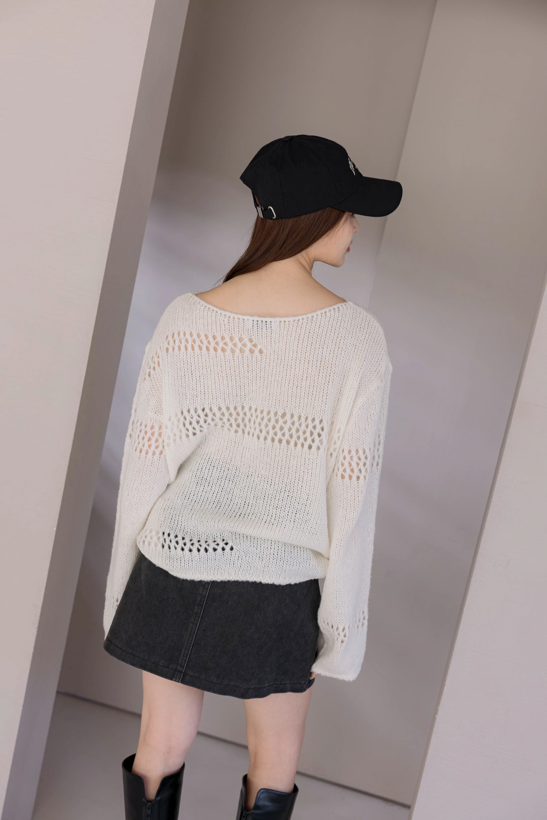 寬鬆中長版版型/簍空設計/領口不收邊設計