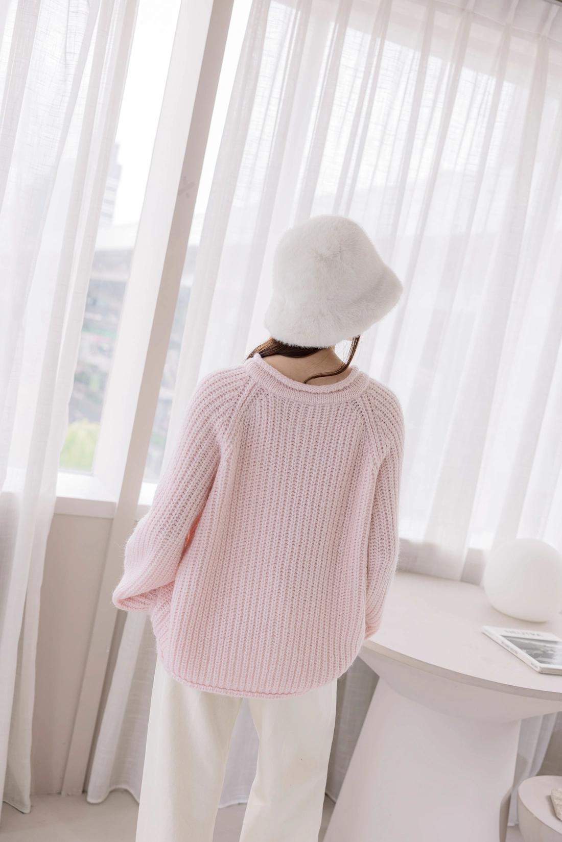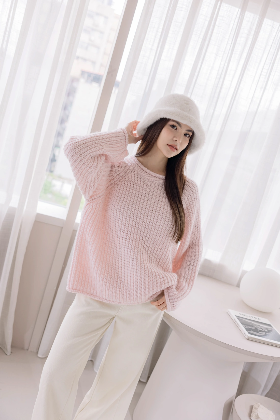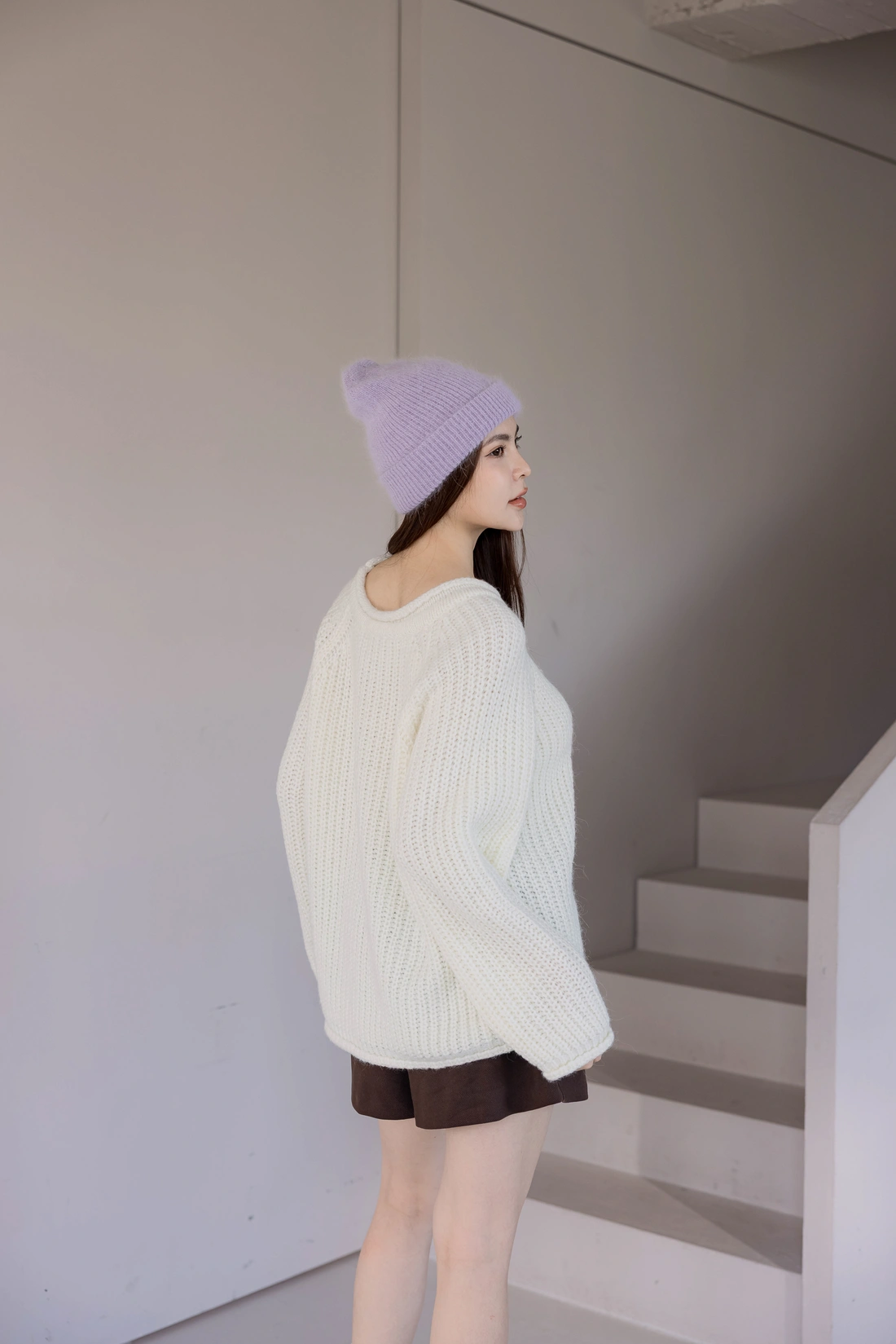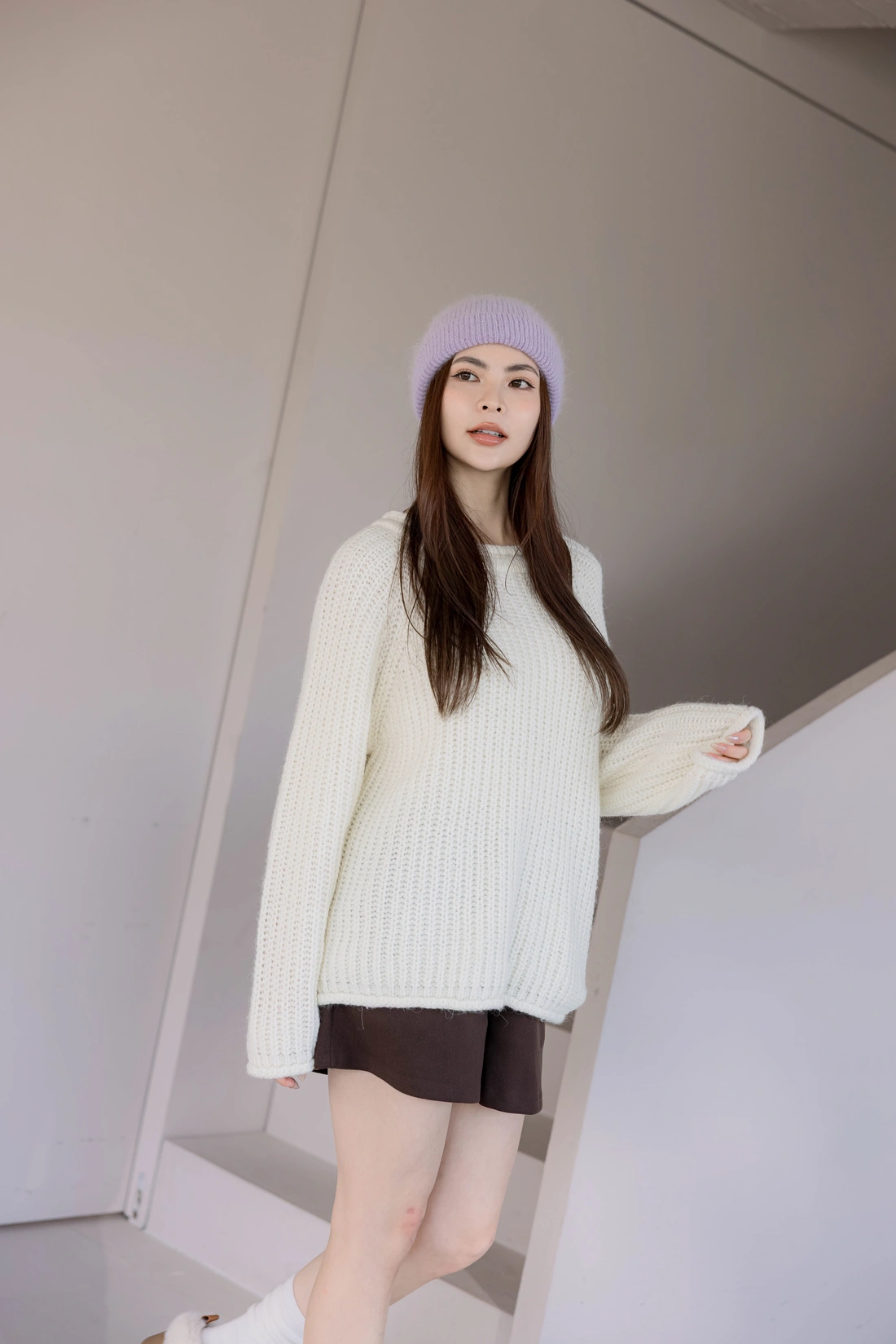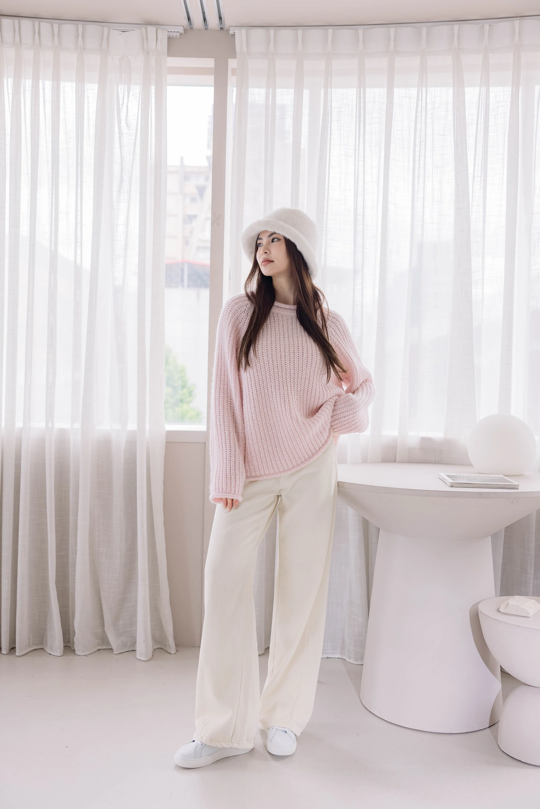 粗編織設計毛衣/捲邊設計/少量羊毛材質