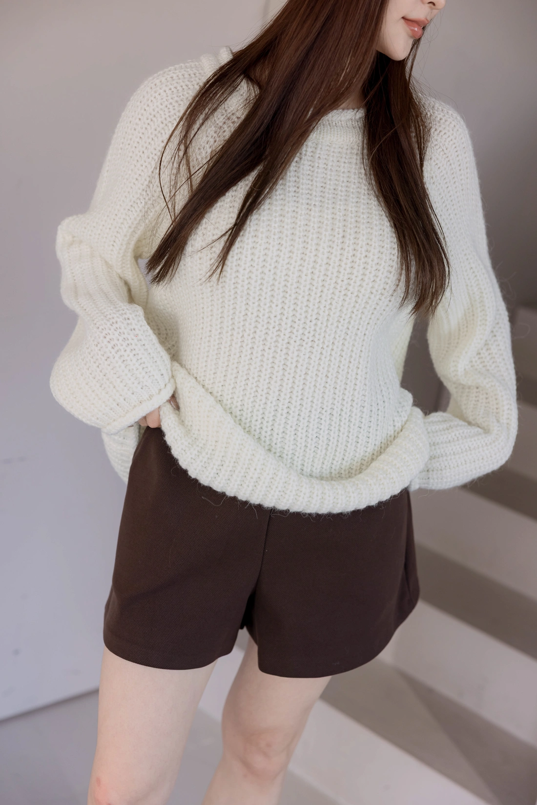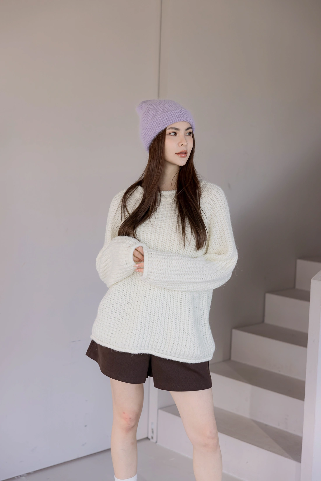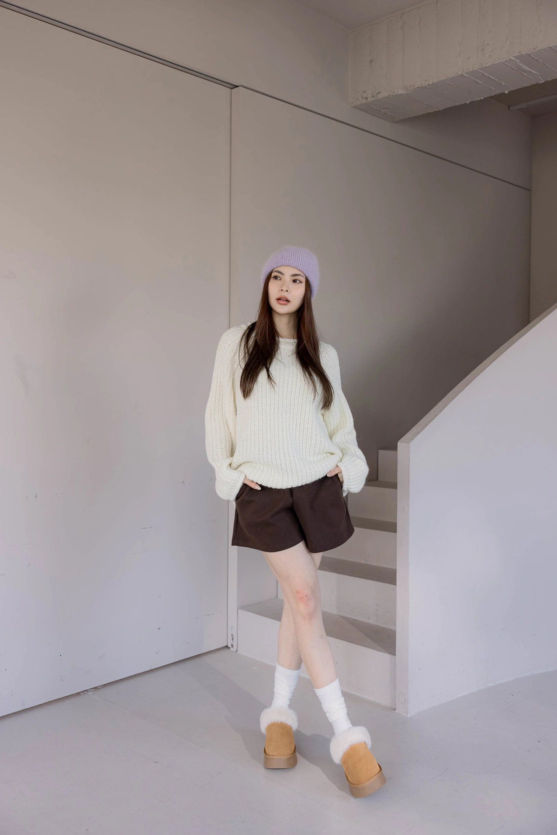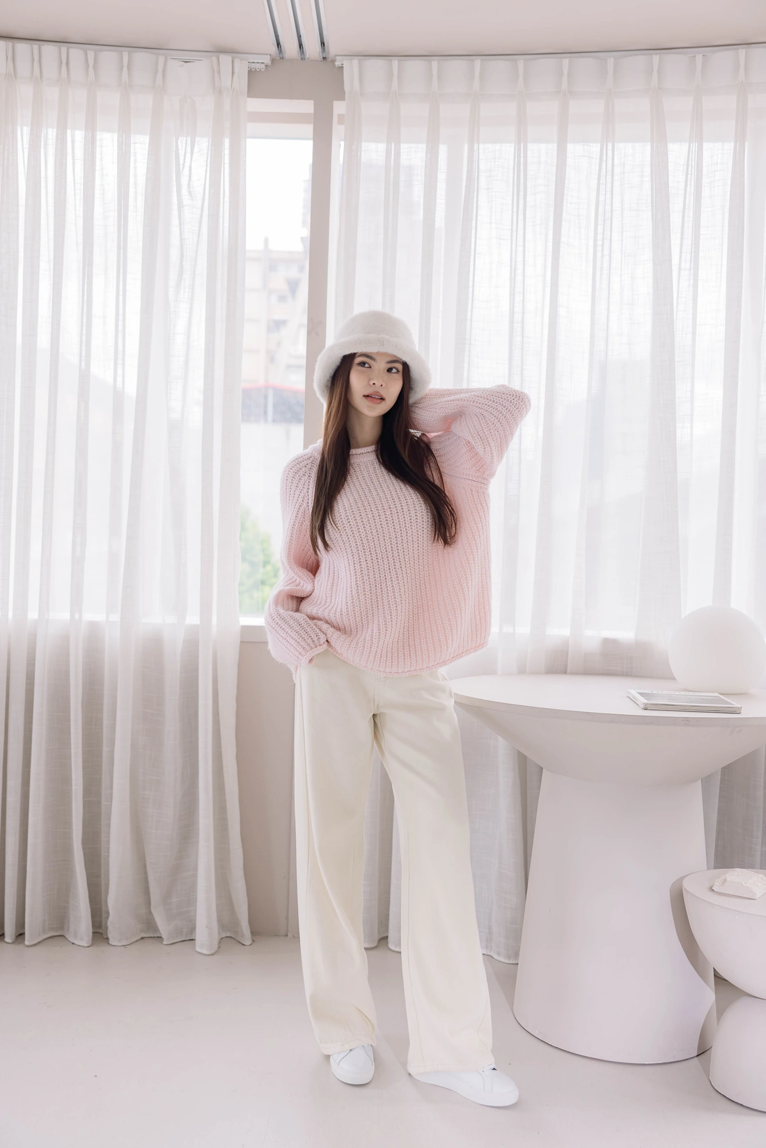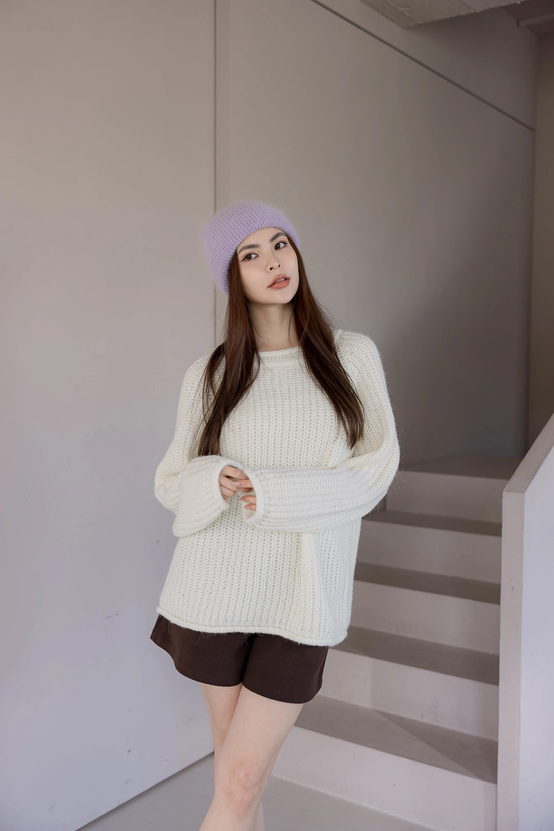 粗編織設計毛衣/捲邊設計/少量羊毛材質