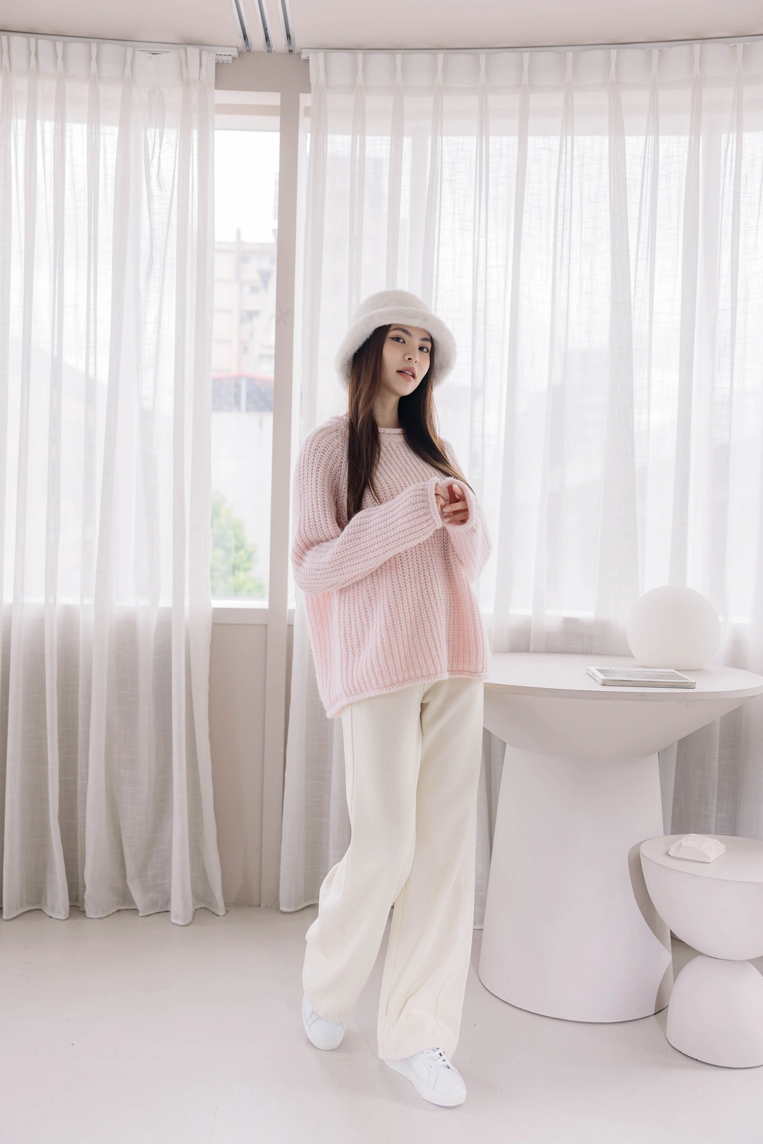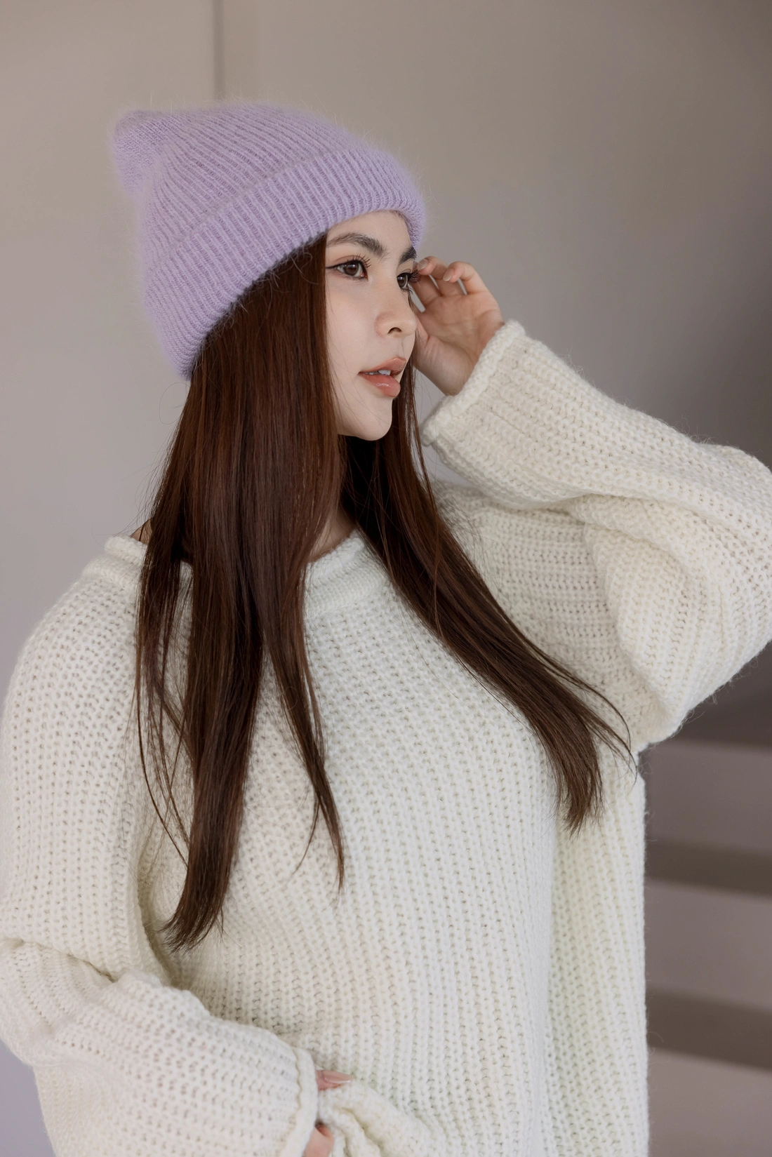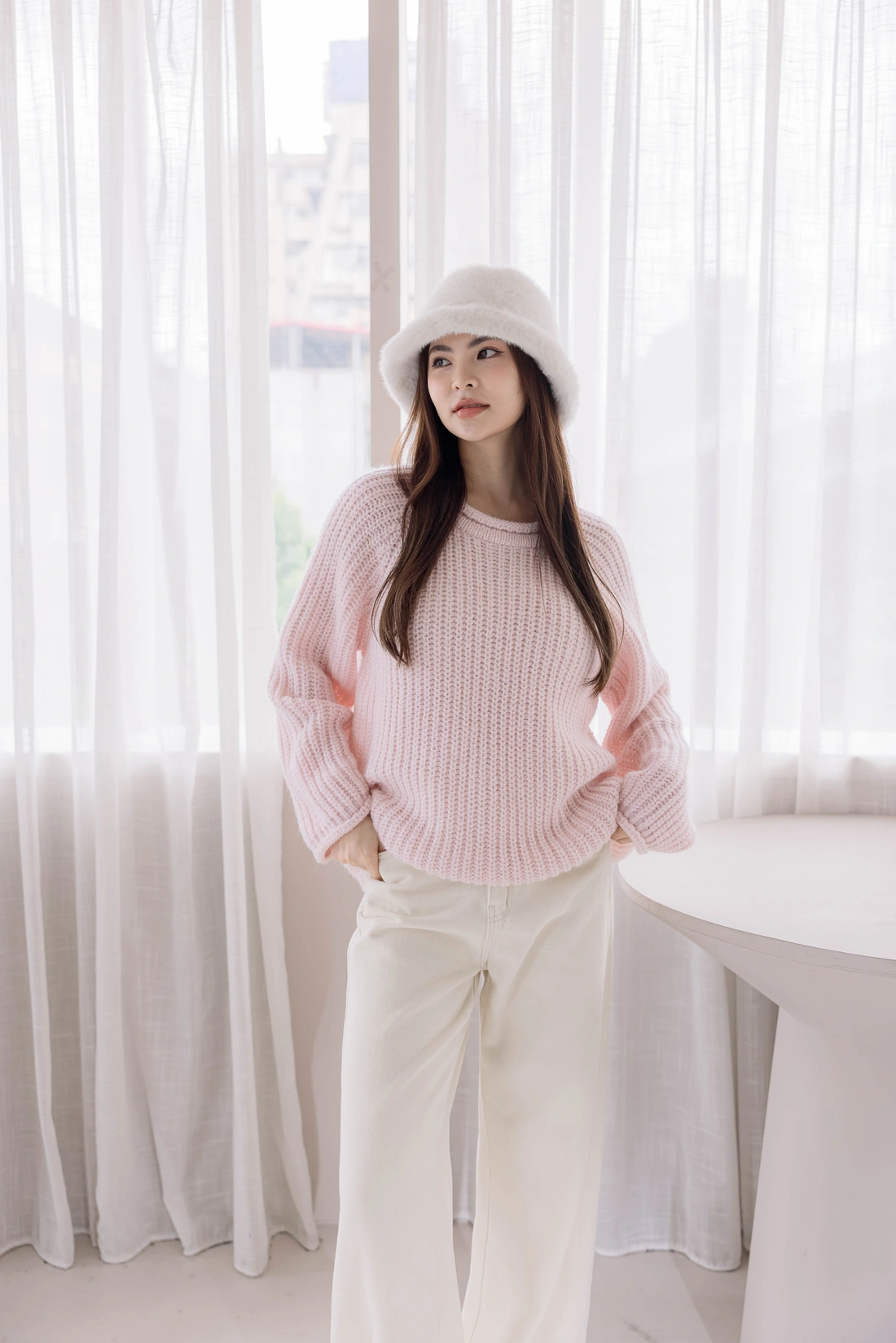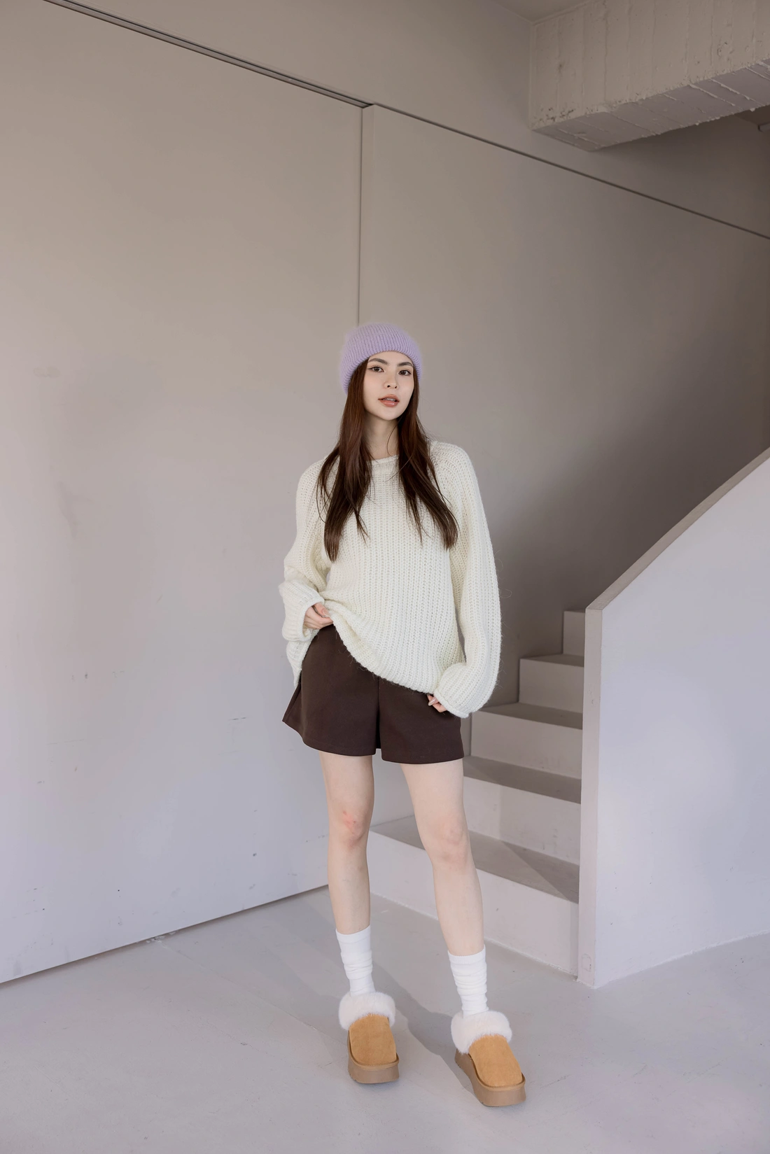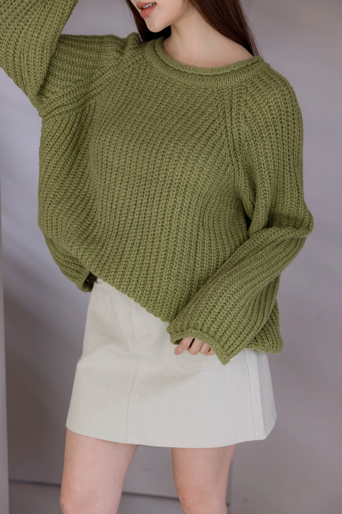 粗編織設計毛衣/捲邊設計/少量羊毛材質