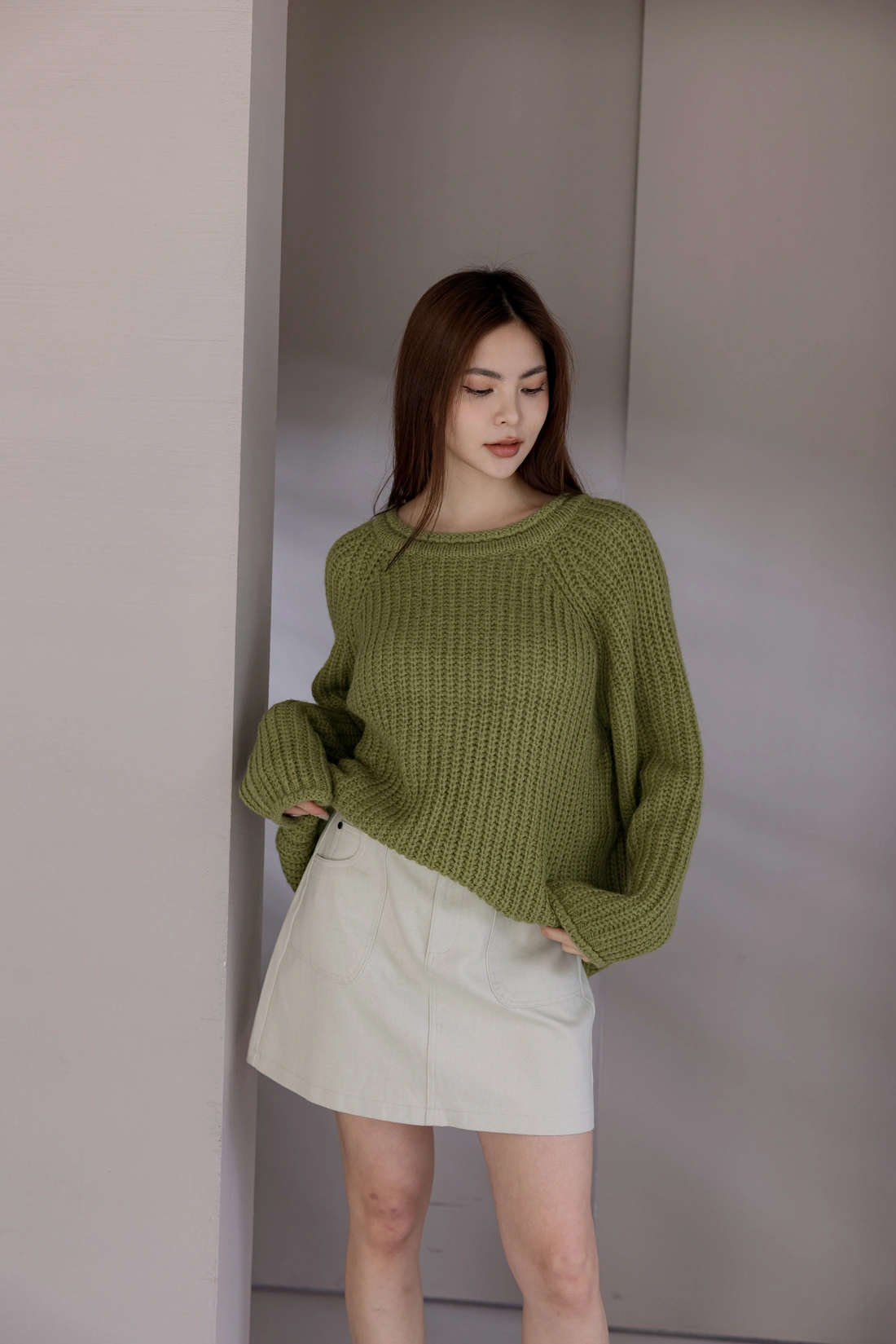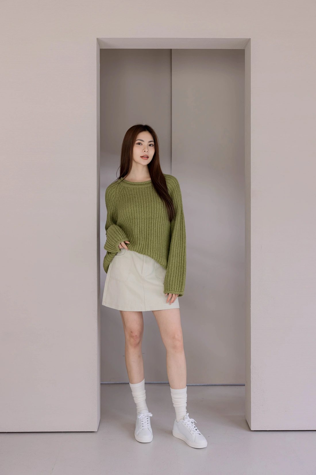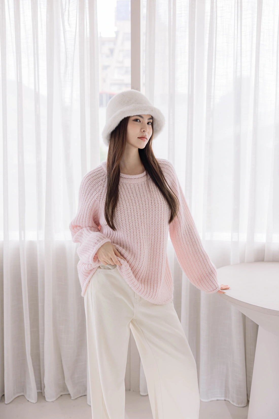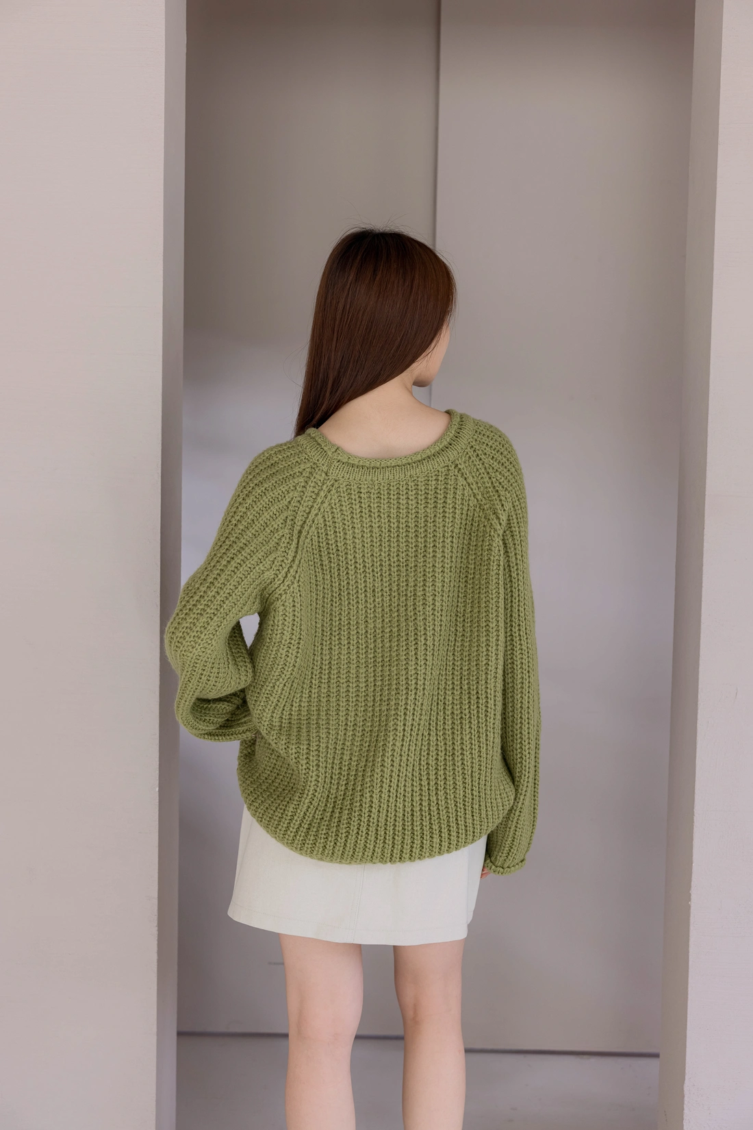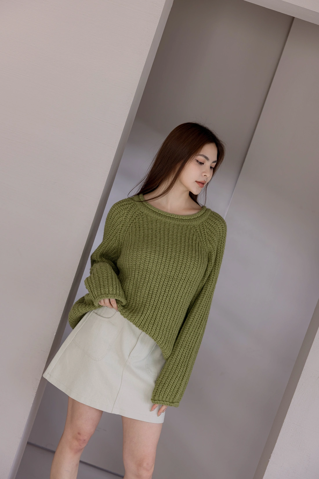粗編織設計毛衣/捲邊設計/少量羊毛材質