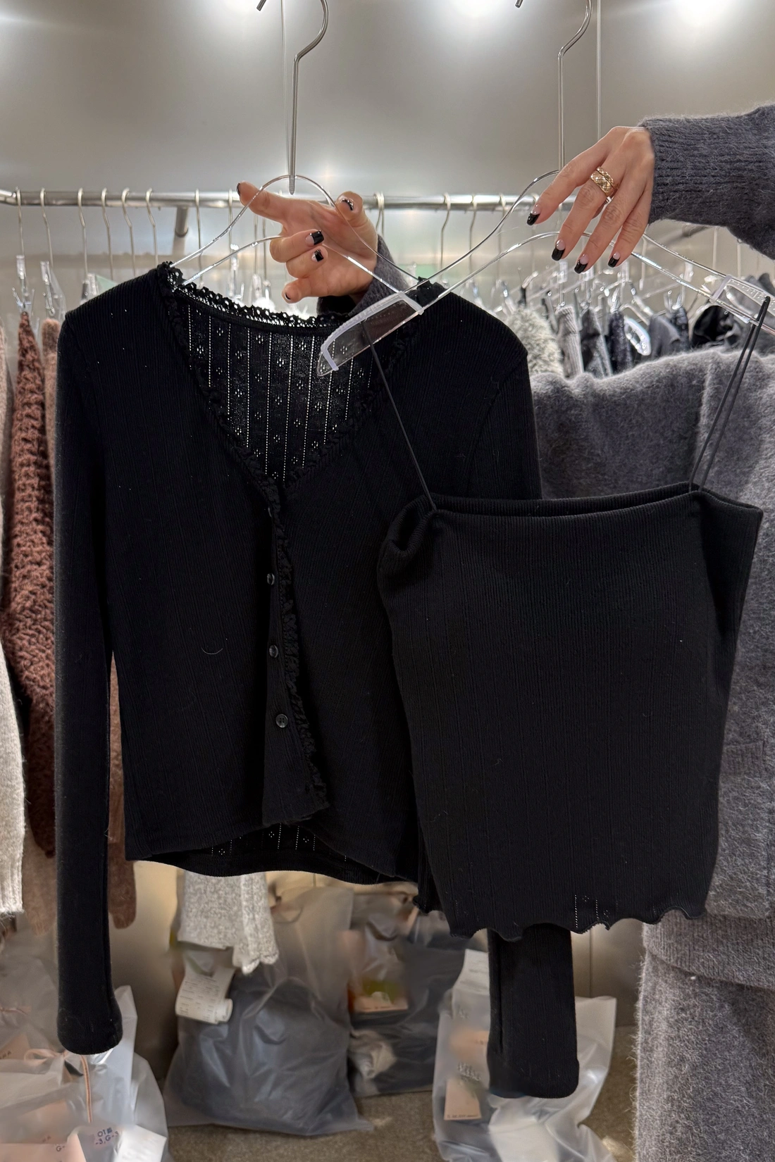 正韓製 純慾風荷葉邊外套+Bratop