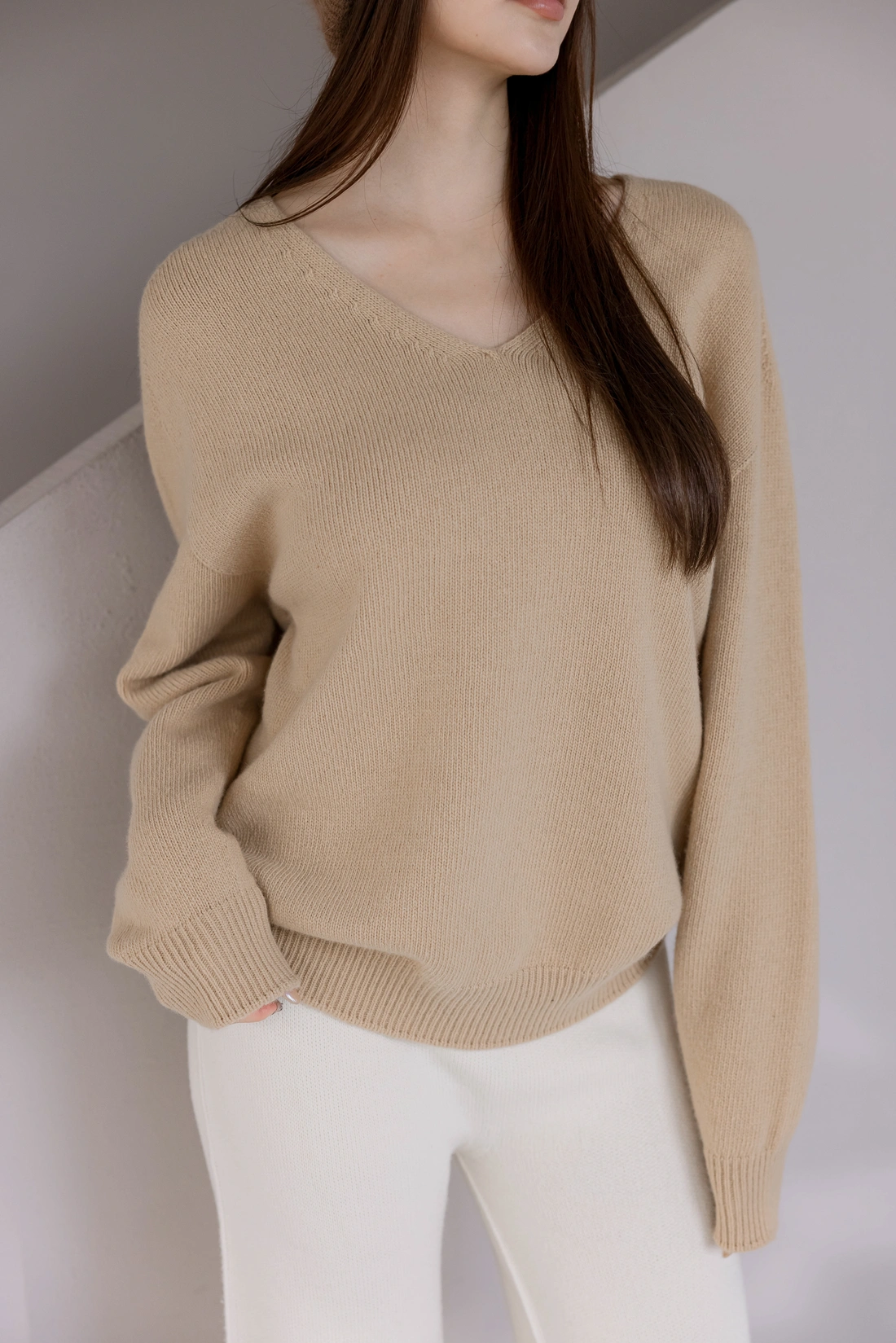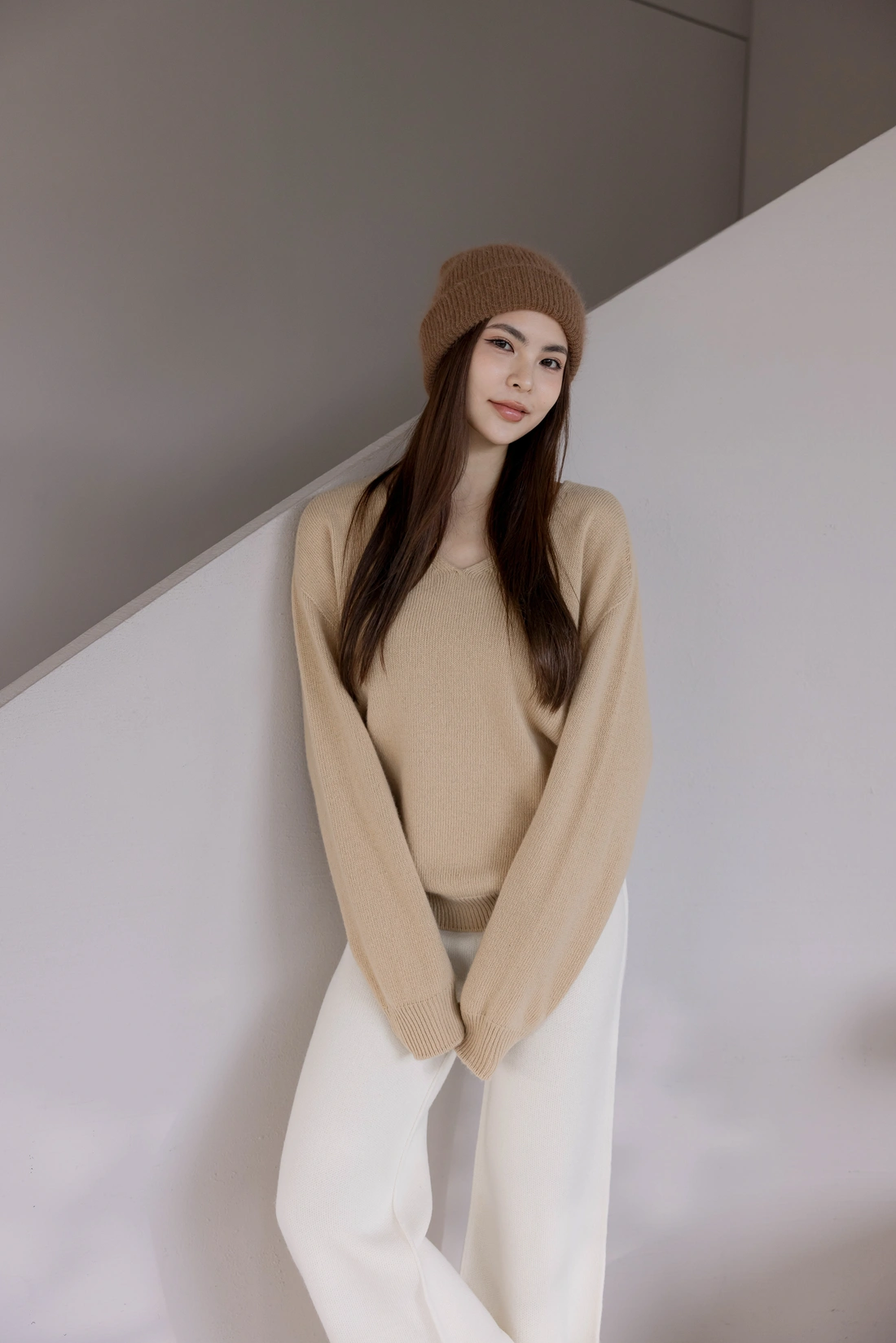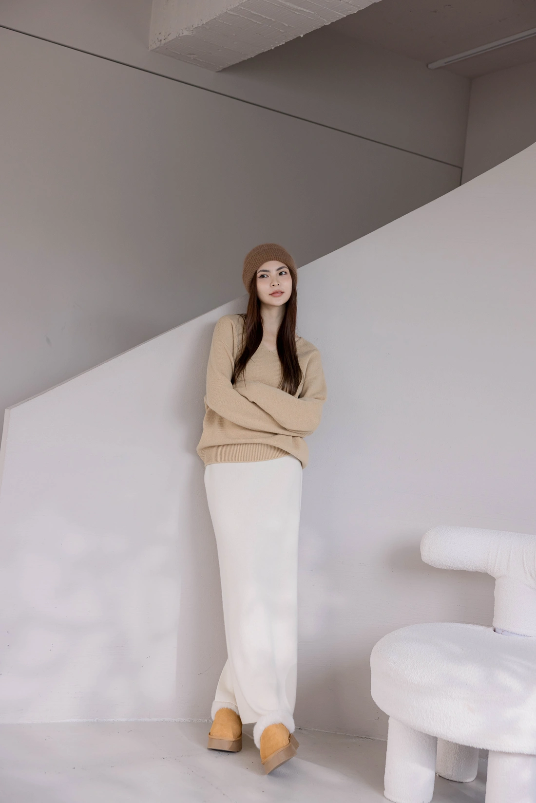 正韓製 高級感100%cashmere羊毛V領長版毛衣