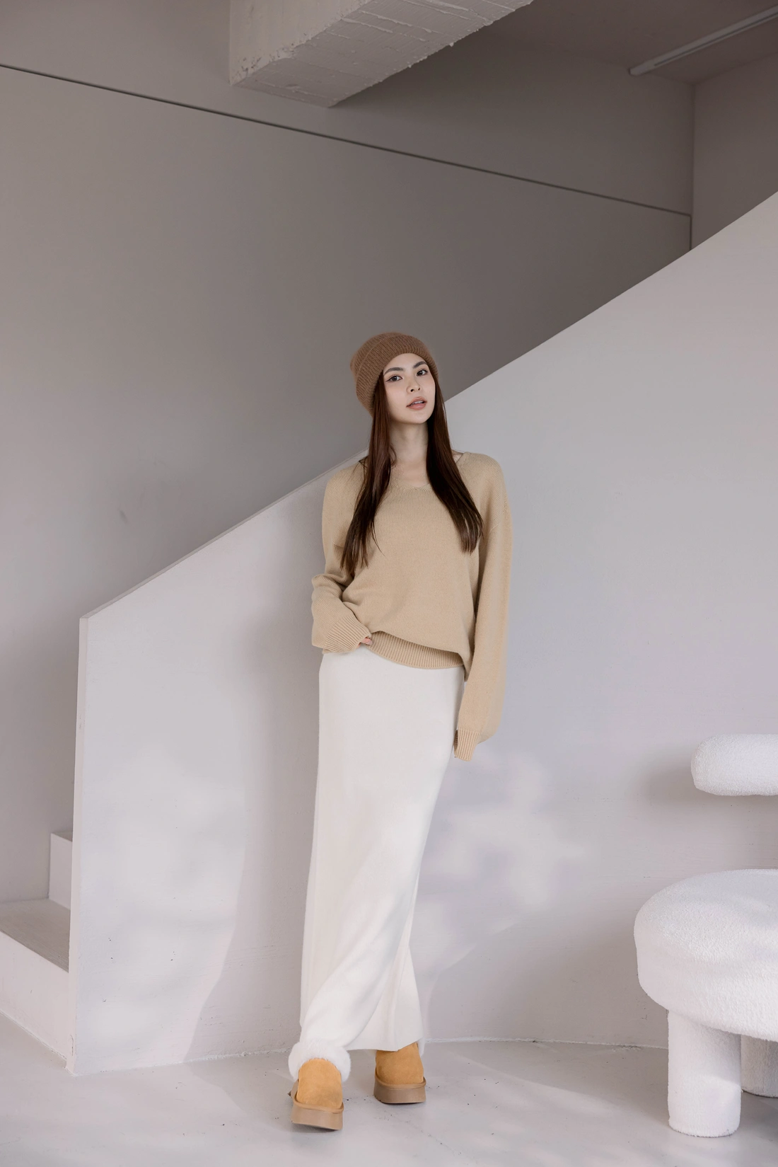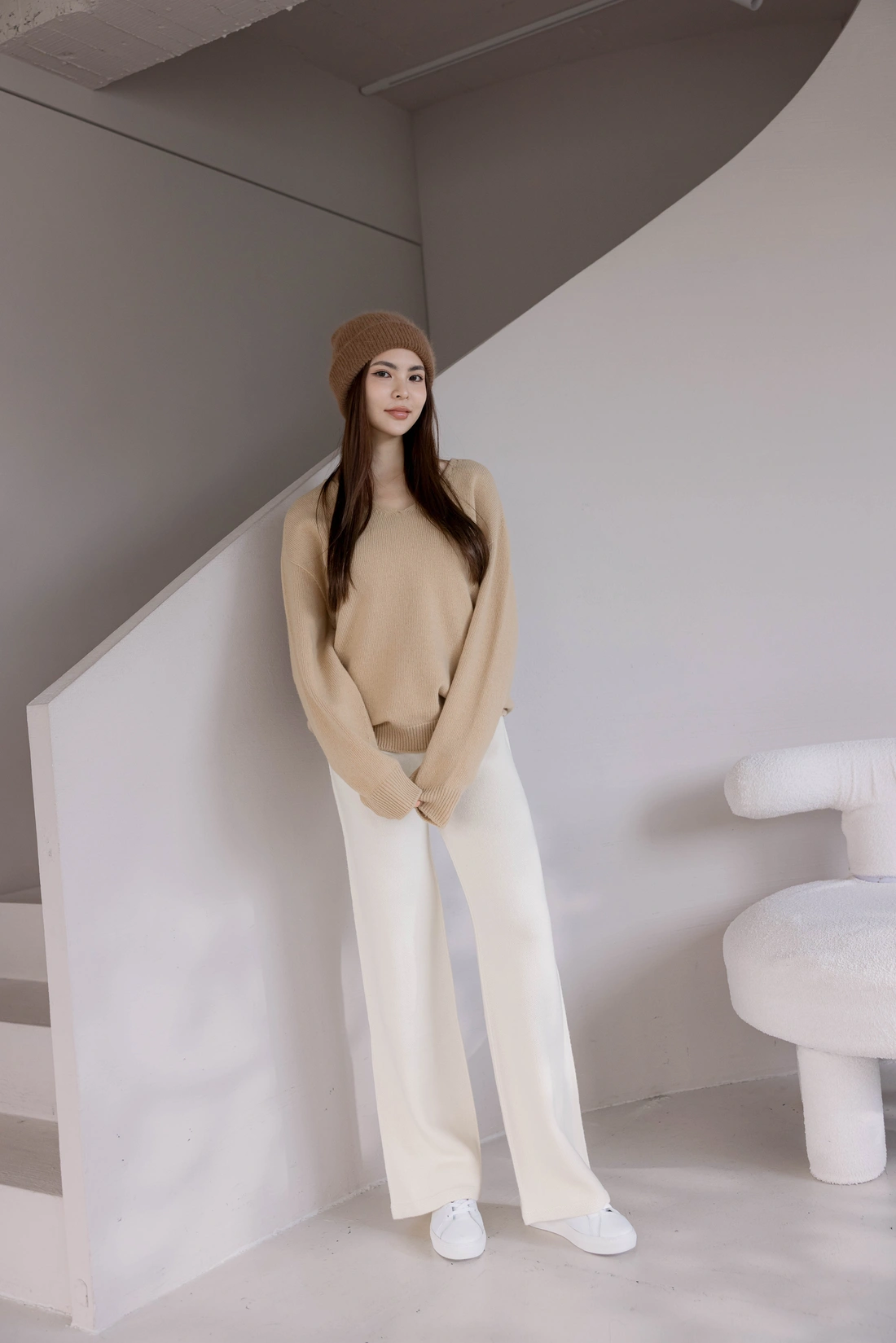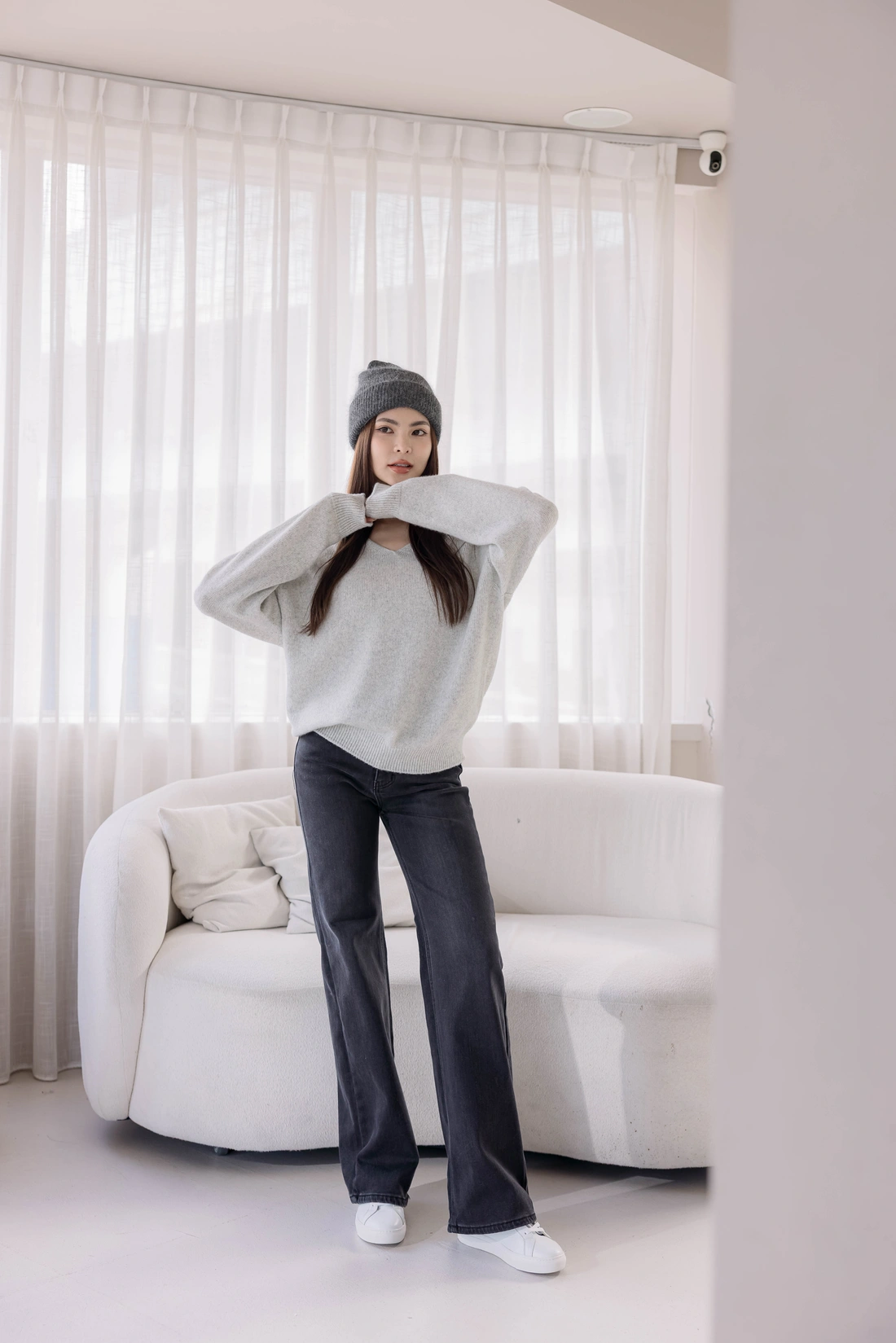 正韓製 高級感100%cashmere羊毛V領長版毛衣