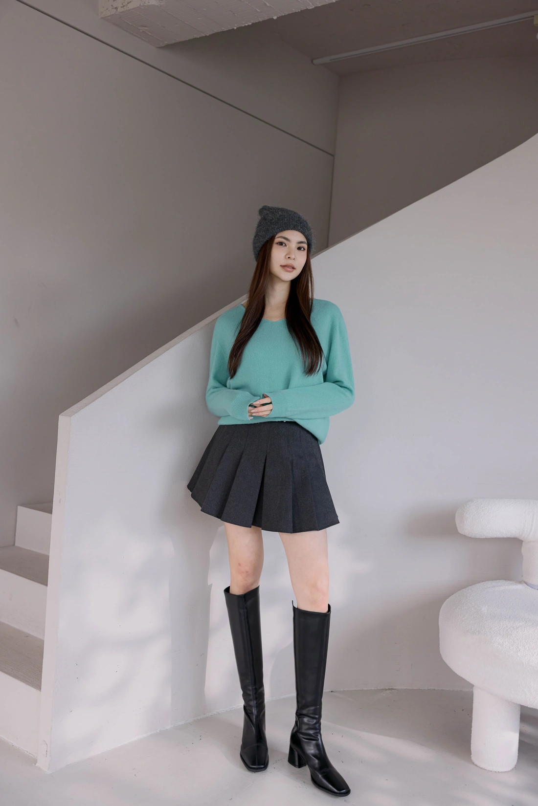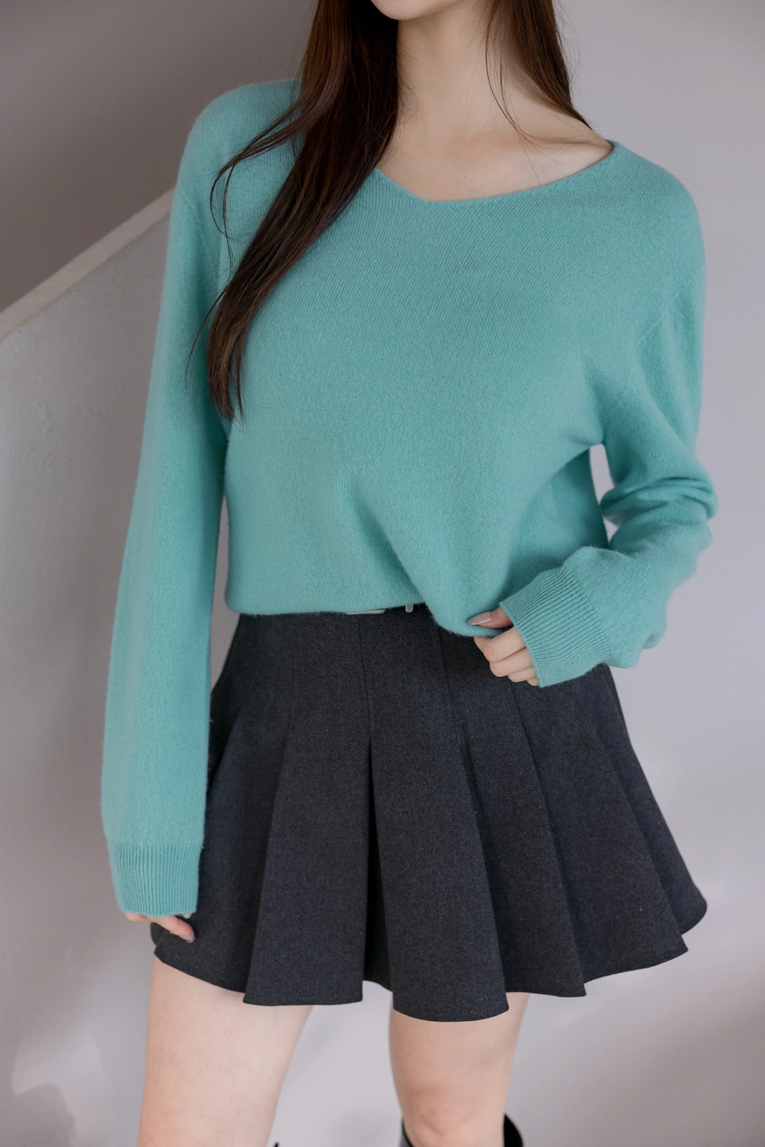 正韓製 純色羊毛V領超輕量毛衣