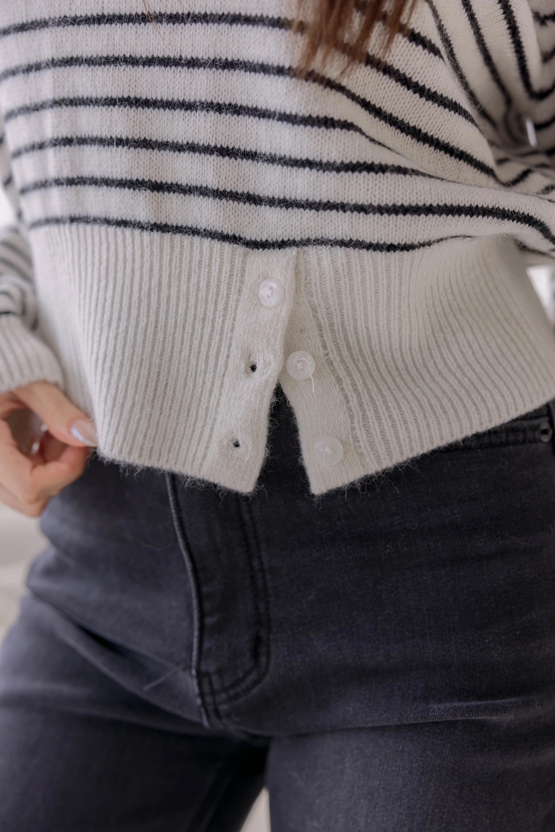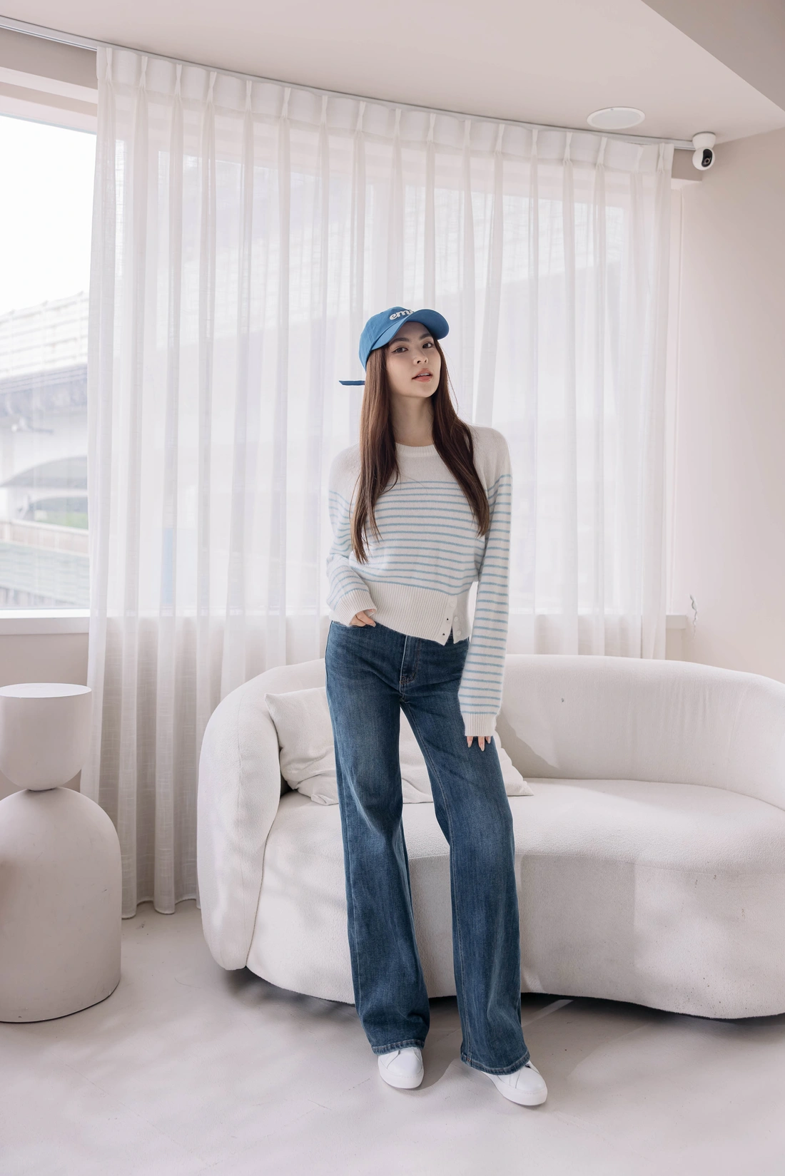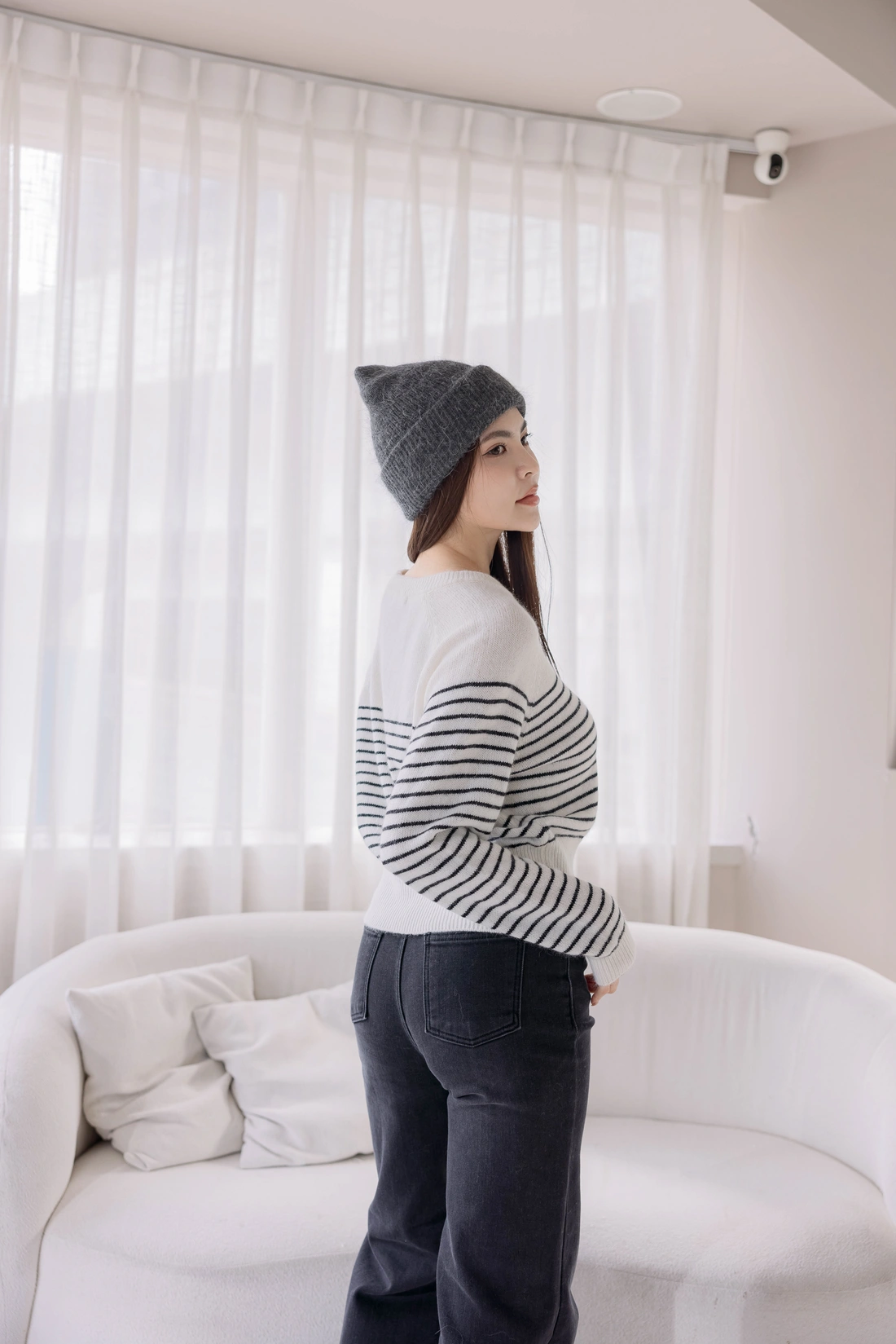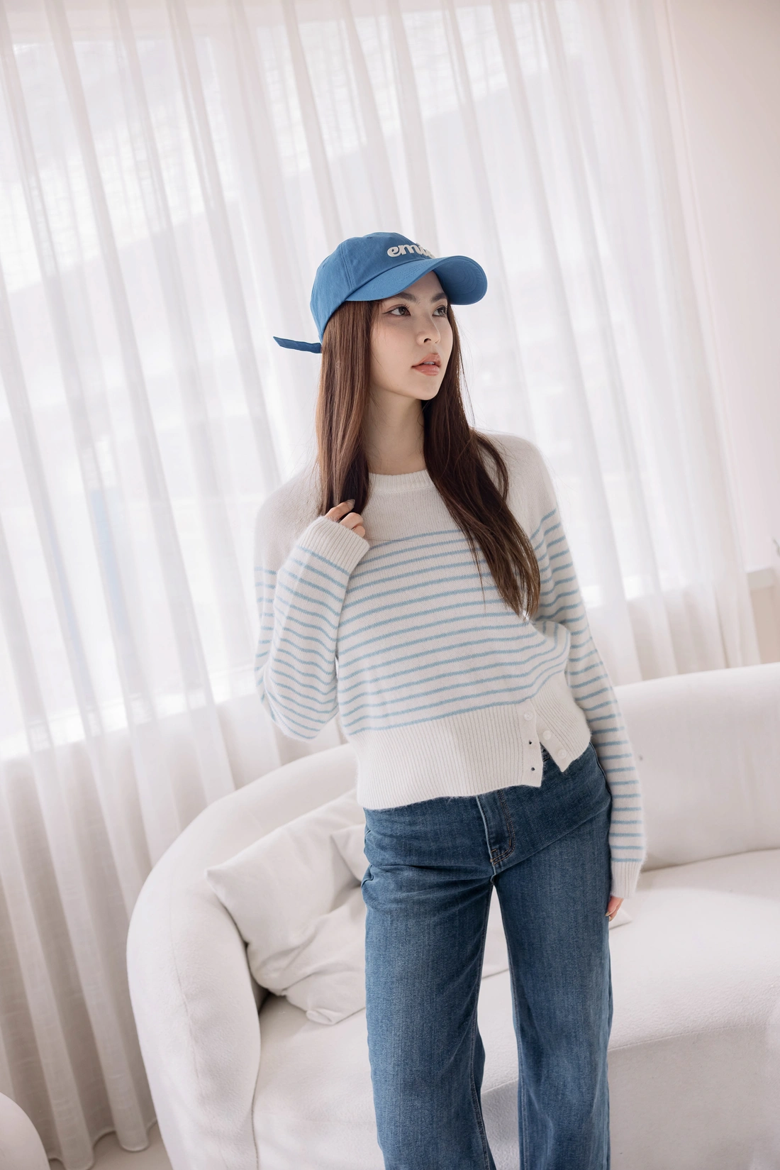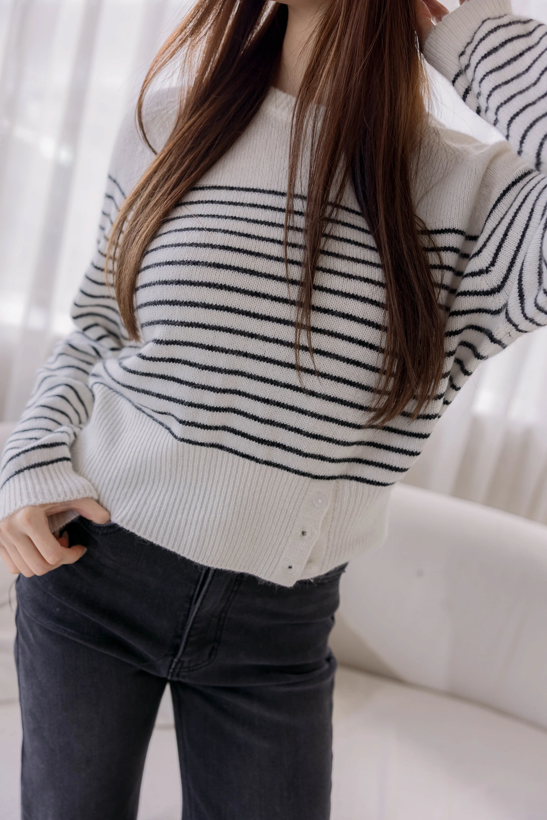 圓領設計/下襬排扣造型/簡約條紋百搭款