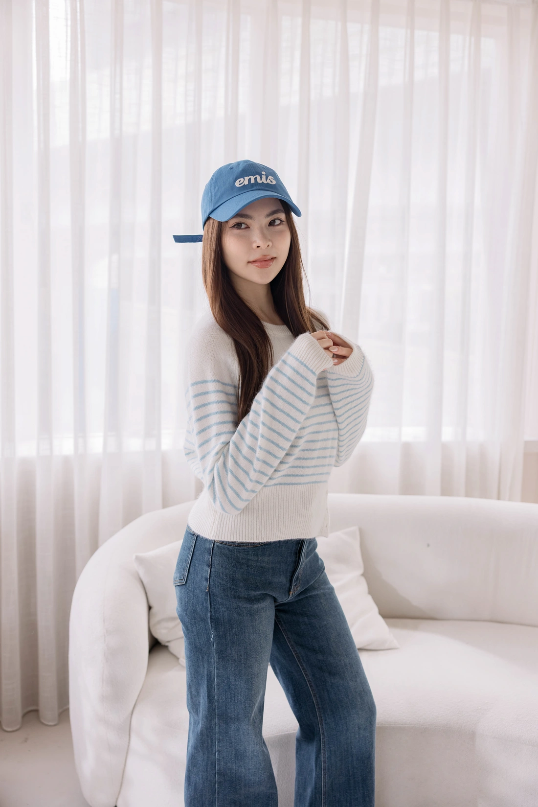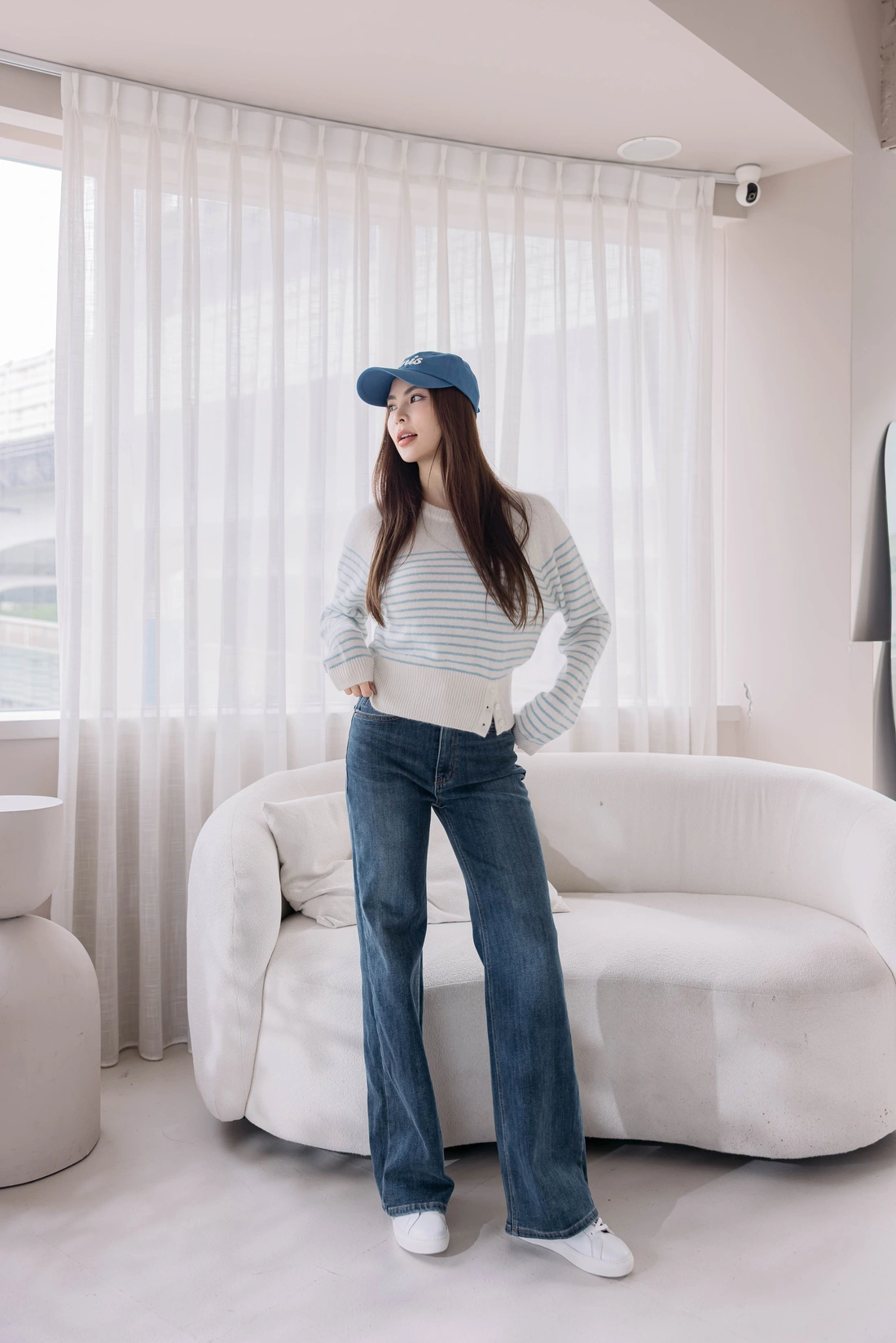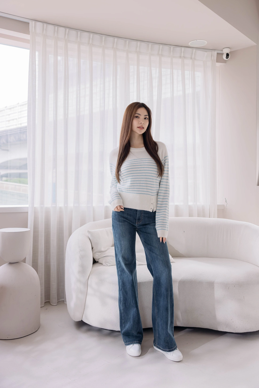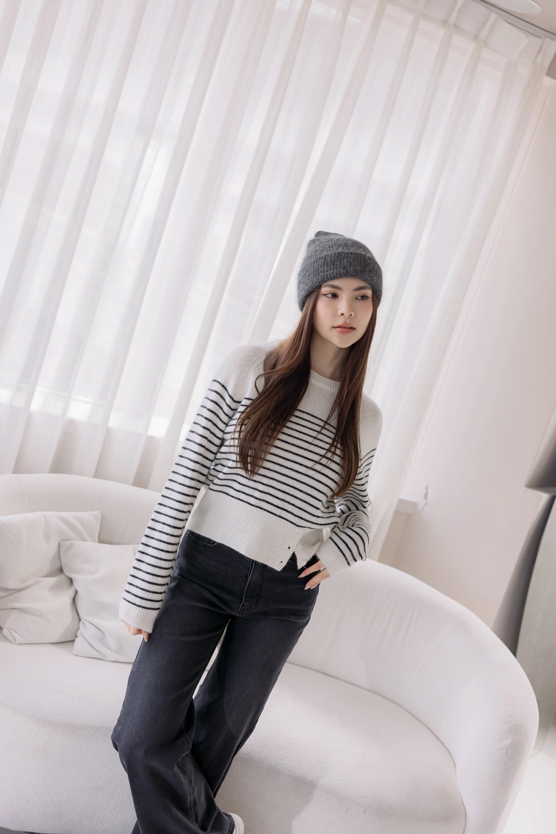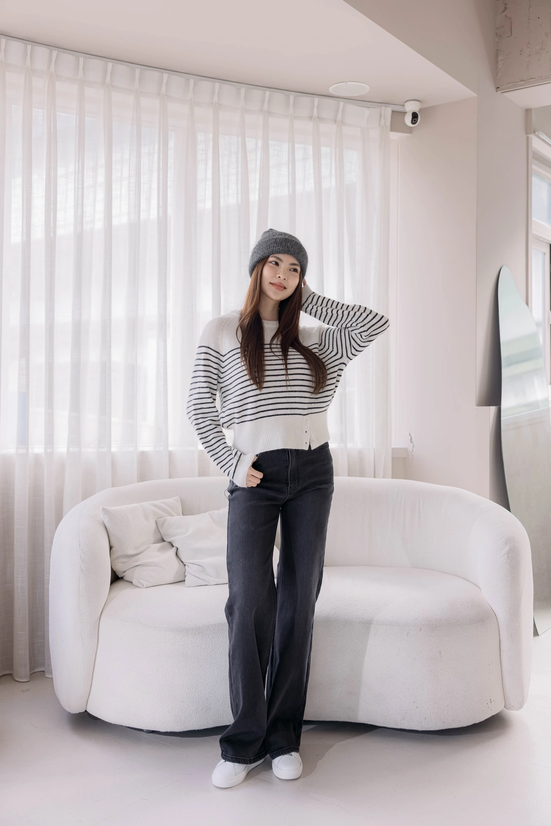 圓領設計/下襬排扣造型/簡約條紋百搭款