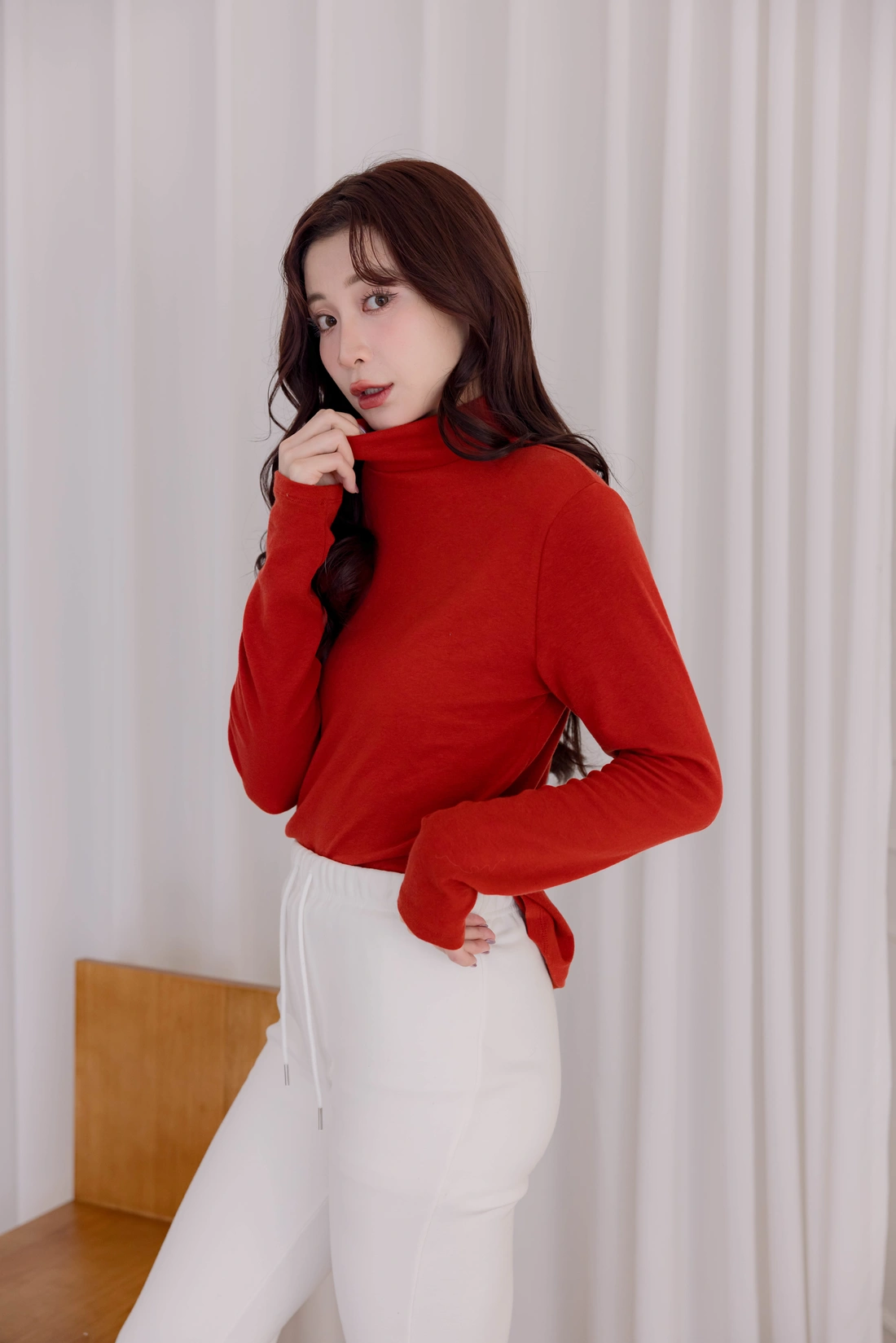 柔膚羊毛天絲材質/高領設計內搭上衣/每色都百搭