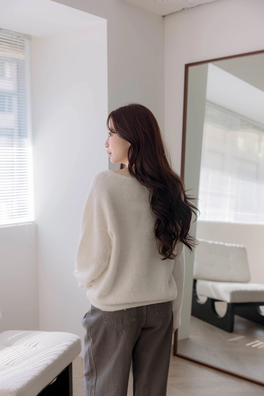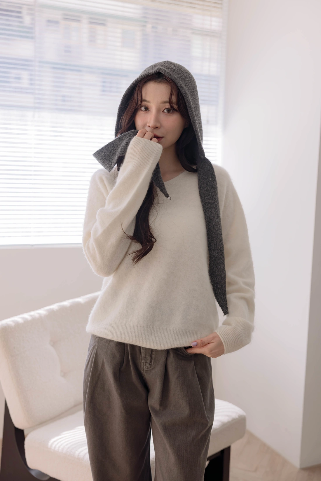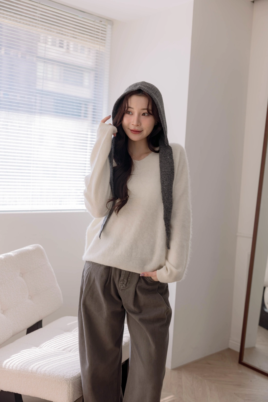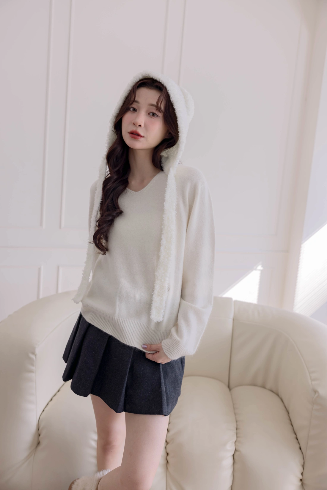 正韓製 高級感V領羊毛混浣熊毛毛衣