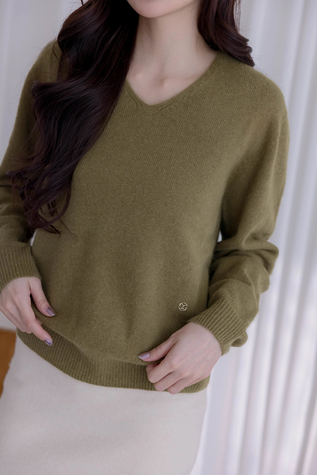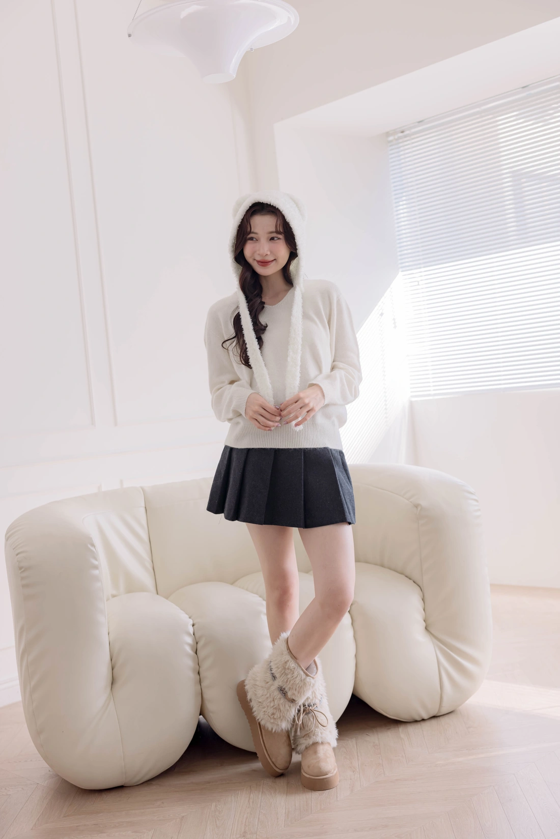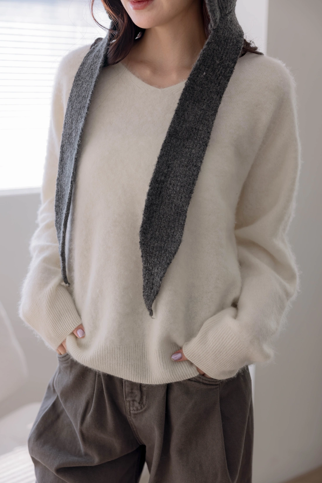 正韓製 高級感V領羊毛混浣熊毛毛衣