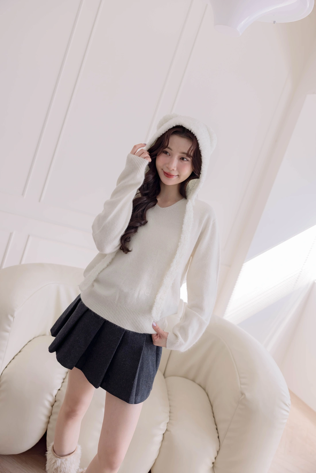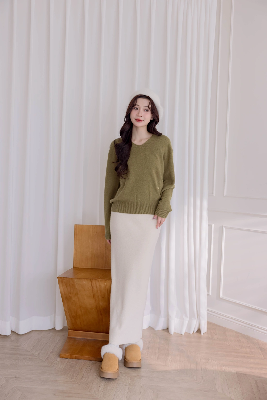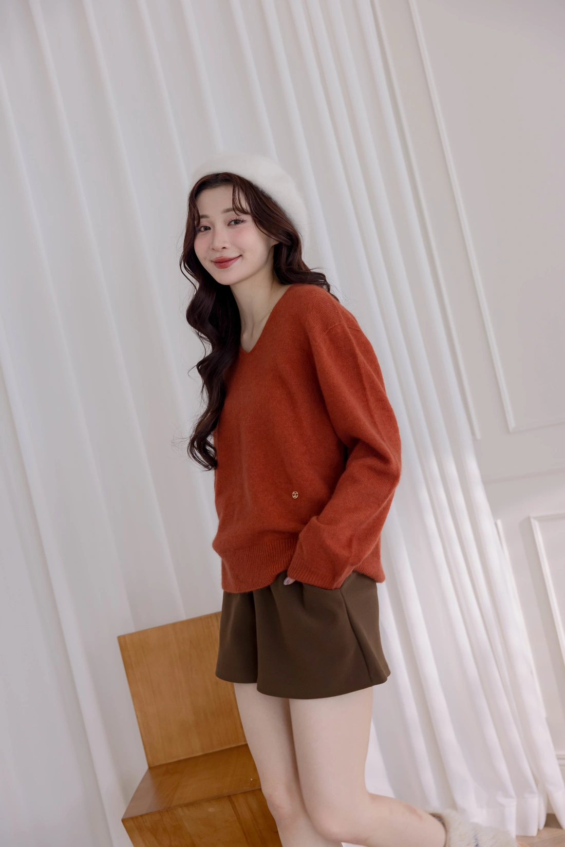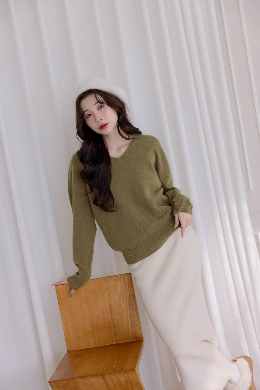 正韓製 高級感V領羊毛混浣熊毛毛衣