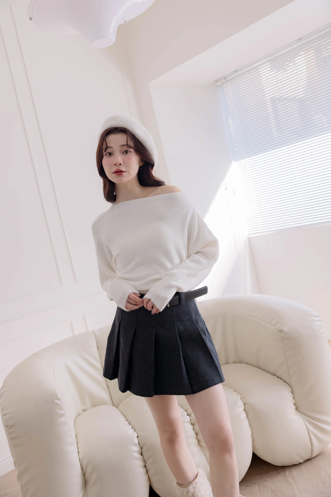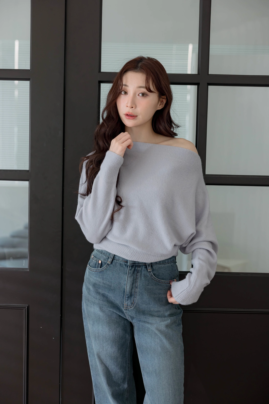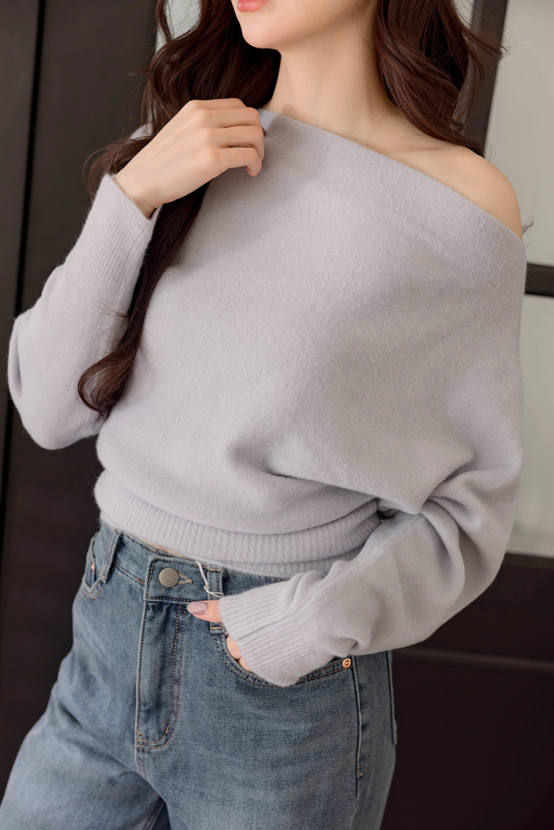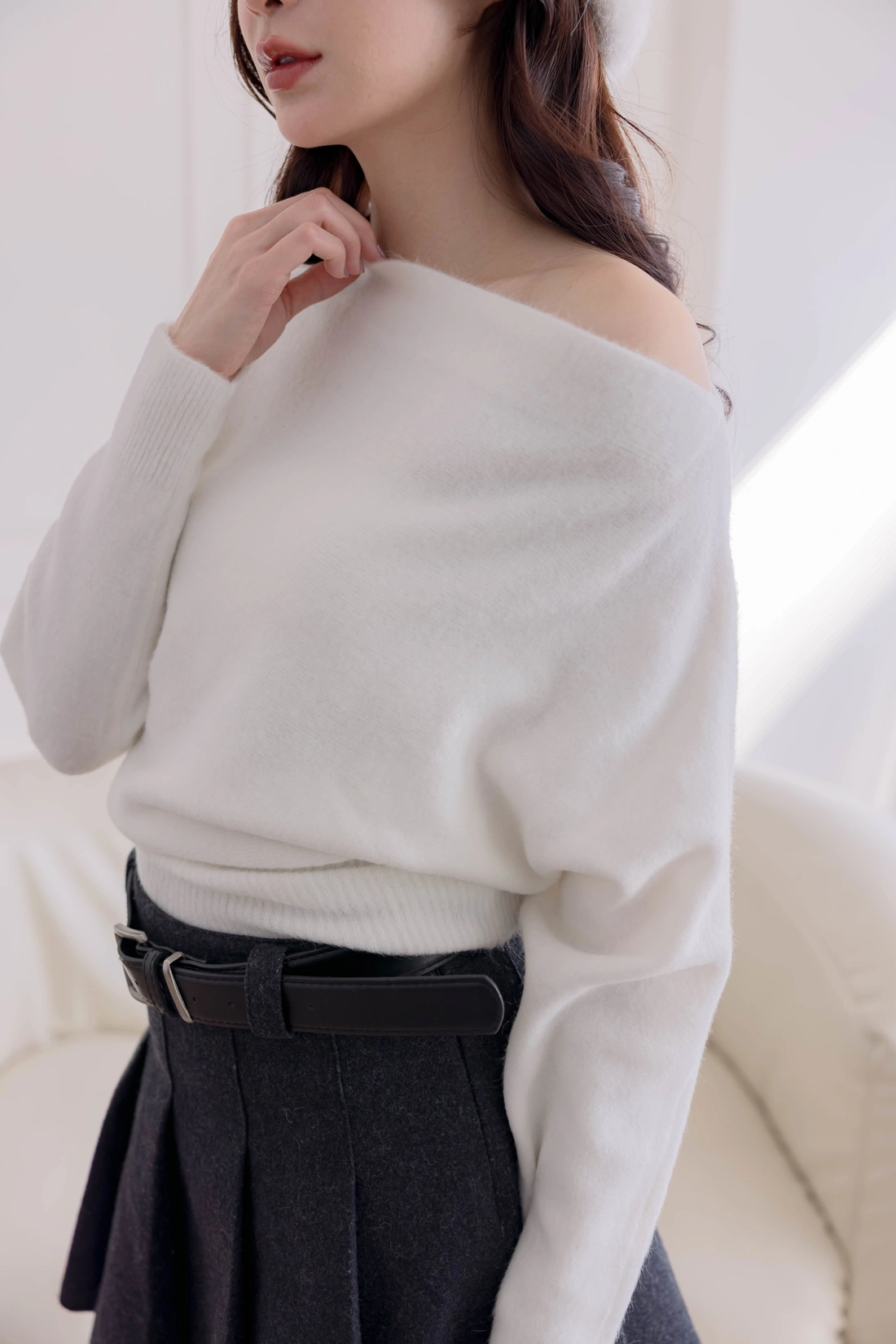 正韓製 優雅一字領純色毛衣