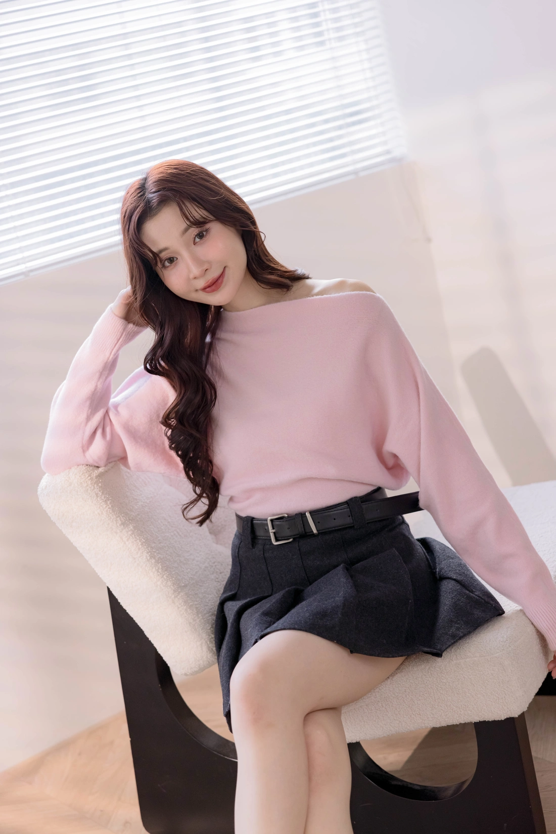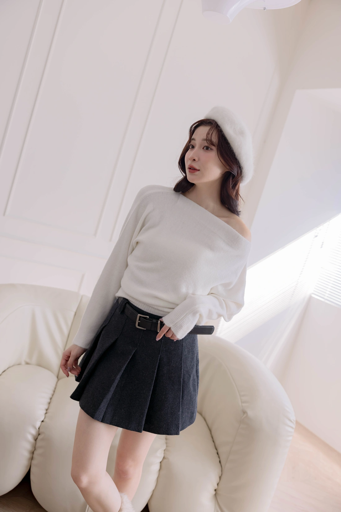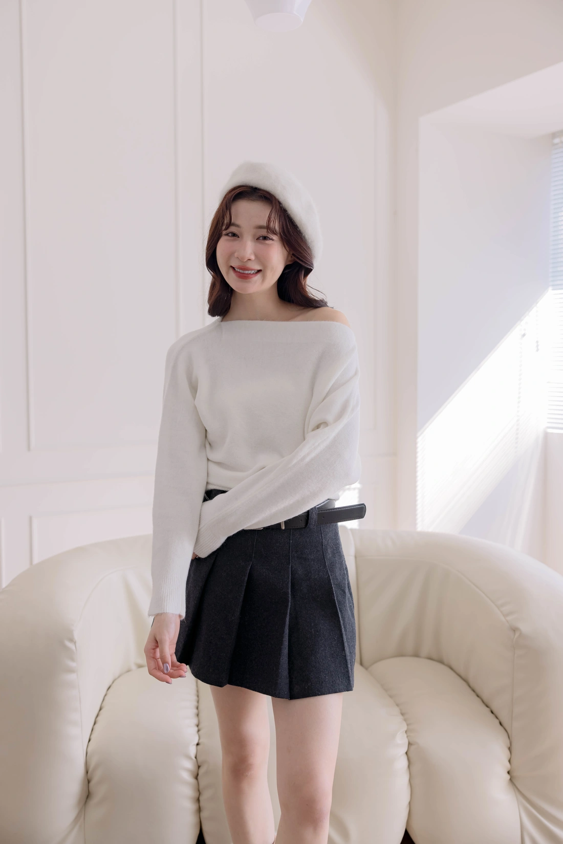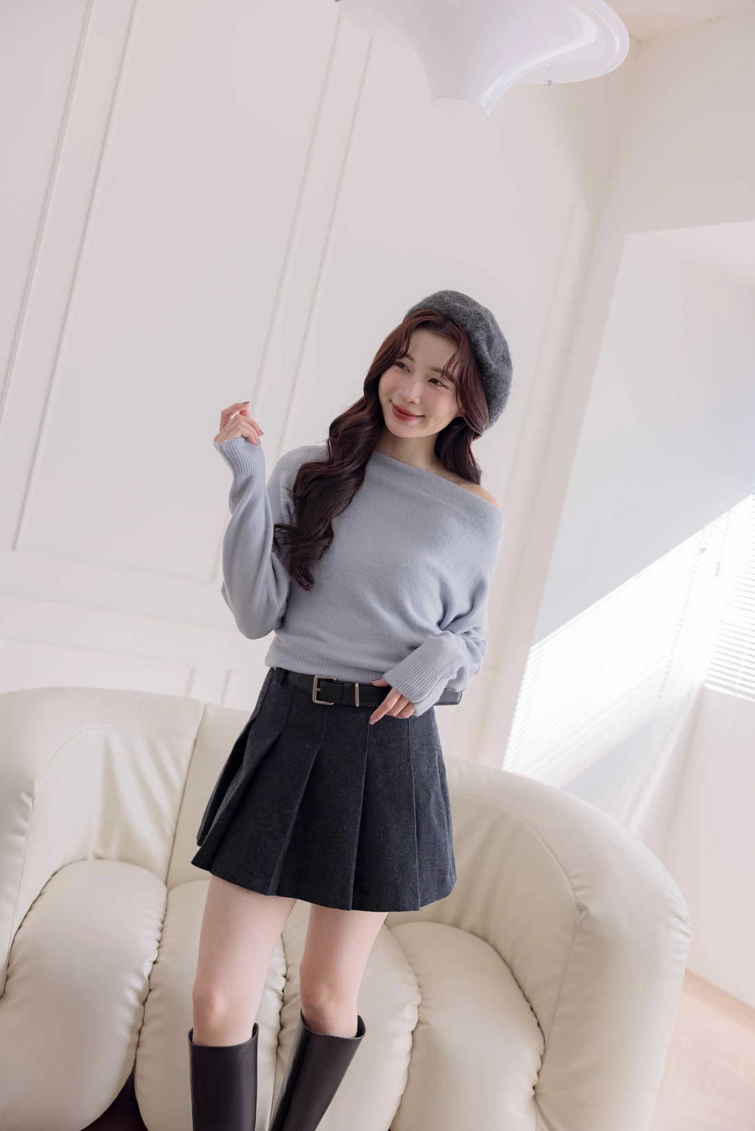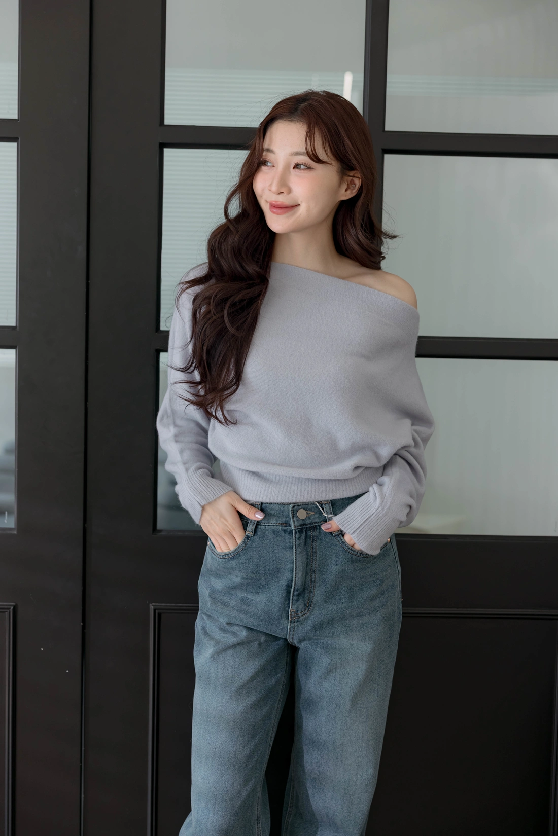 正韓製 優雅一字領純色毛衣
