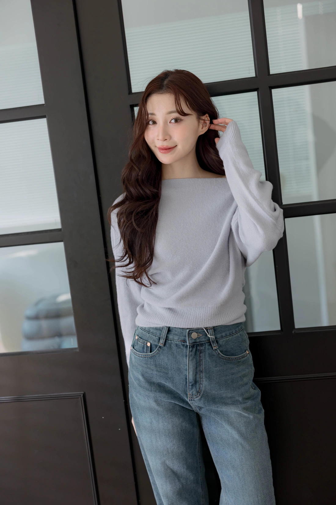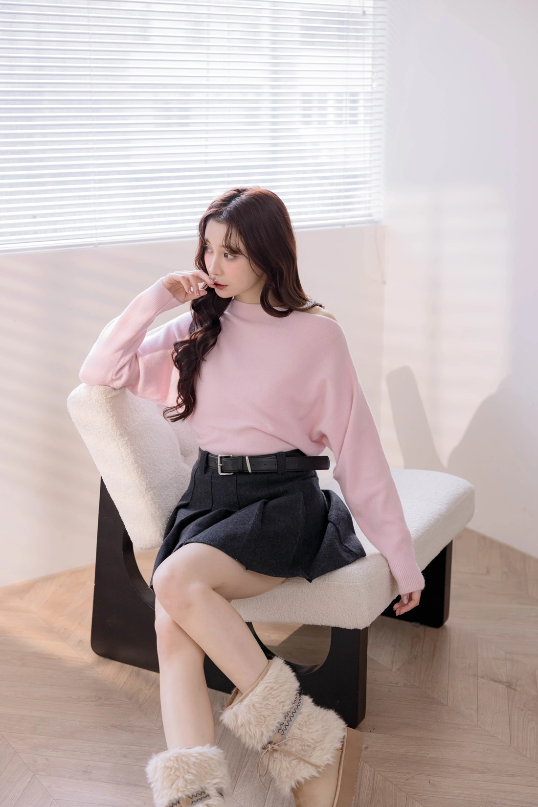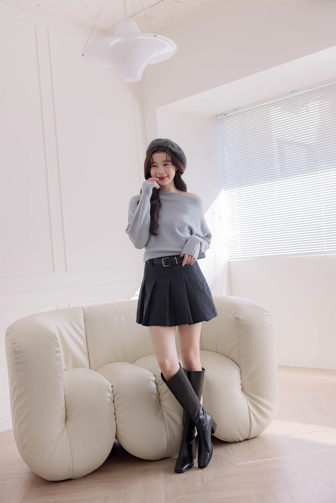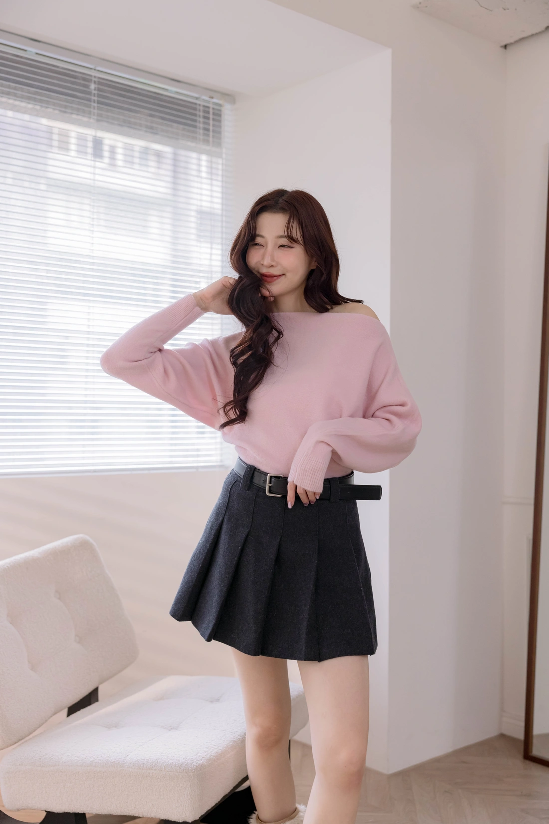 正韓製 優雅一字領純色毛衣