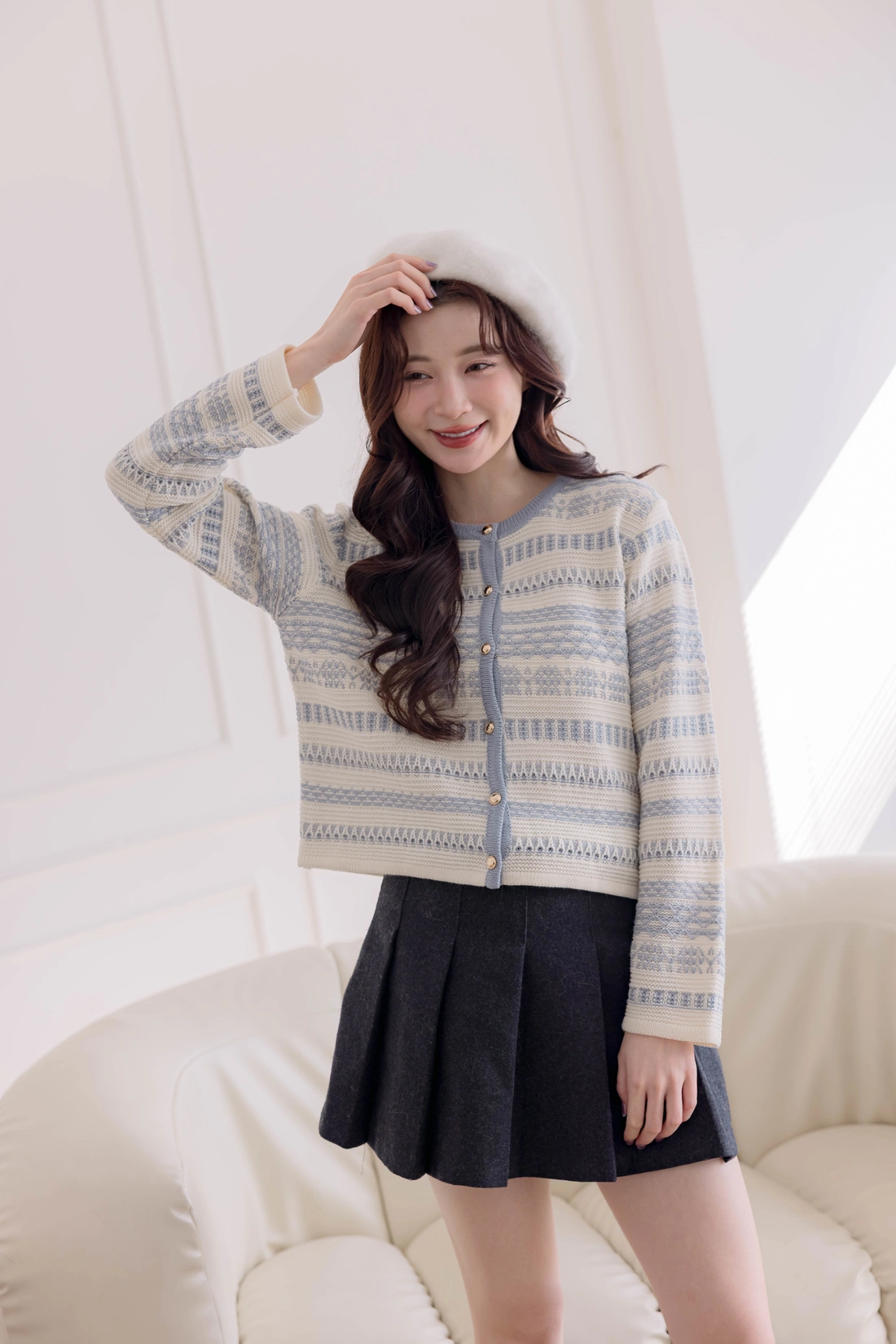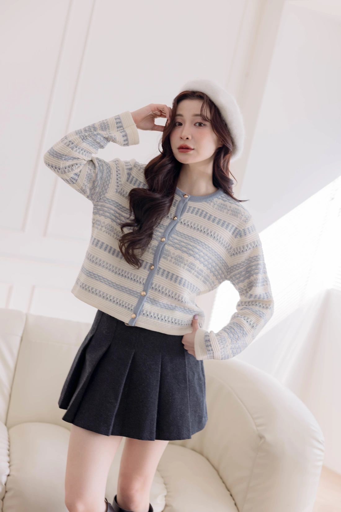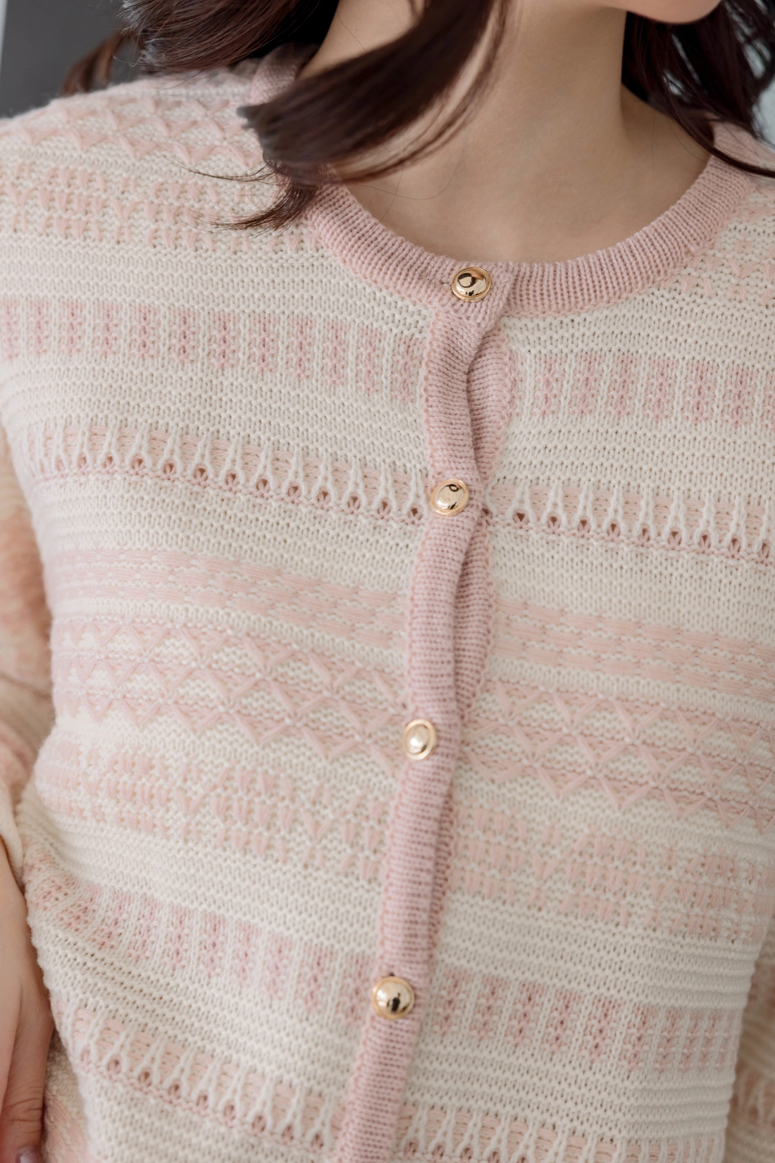 舒適厚針織材質/金釦設計上衣/撞色編織設計