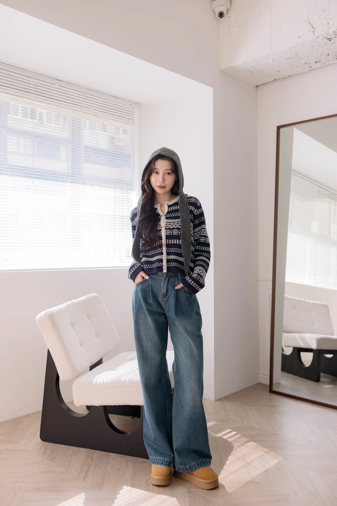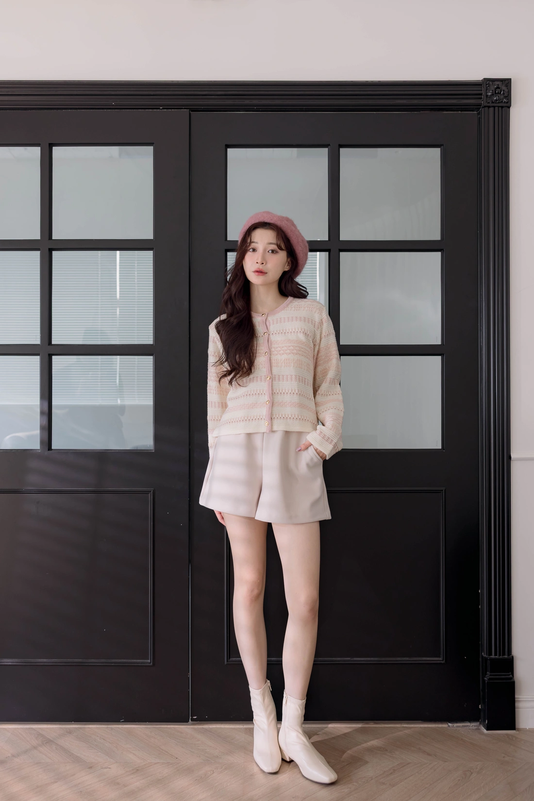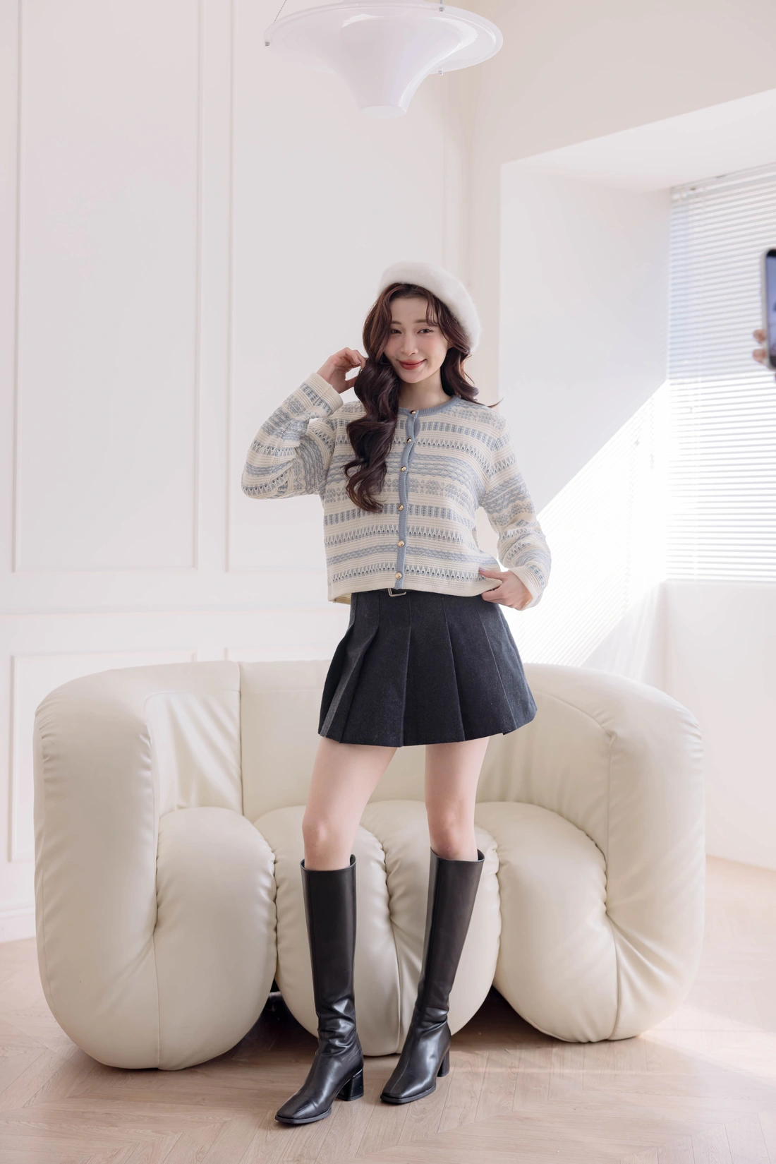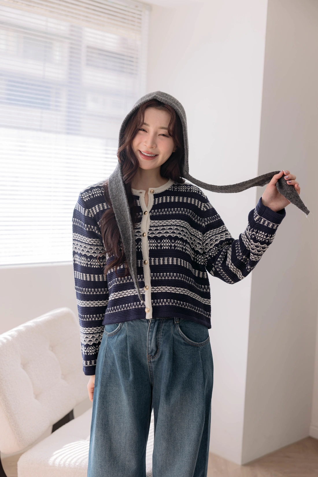 舒適厚針織材質/金釦設計上衣/撞色編織設計