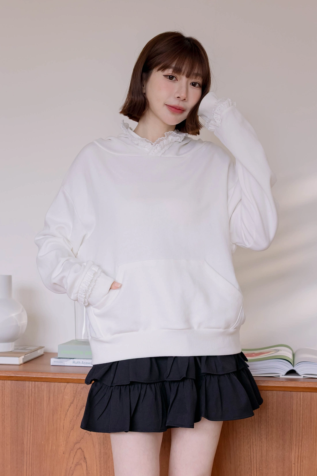 帽簷袖口蕾絲點綴/休閒感十足帽T款式
