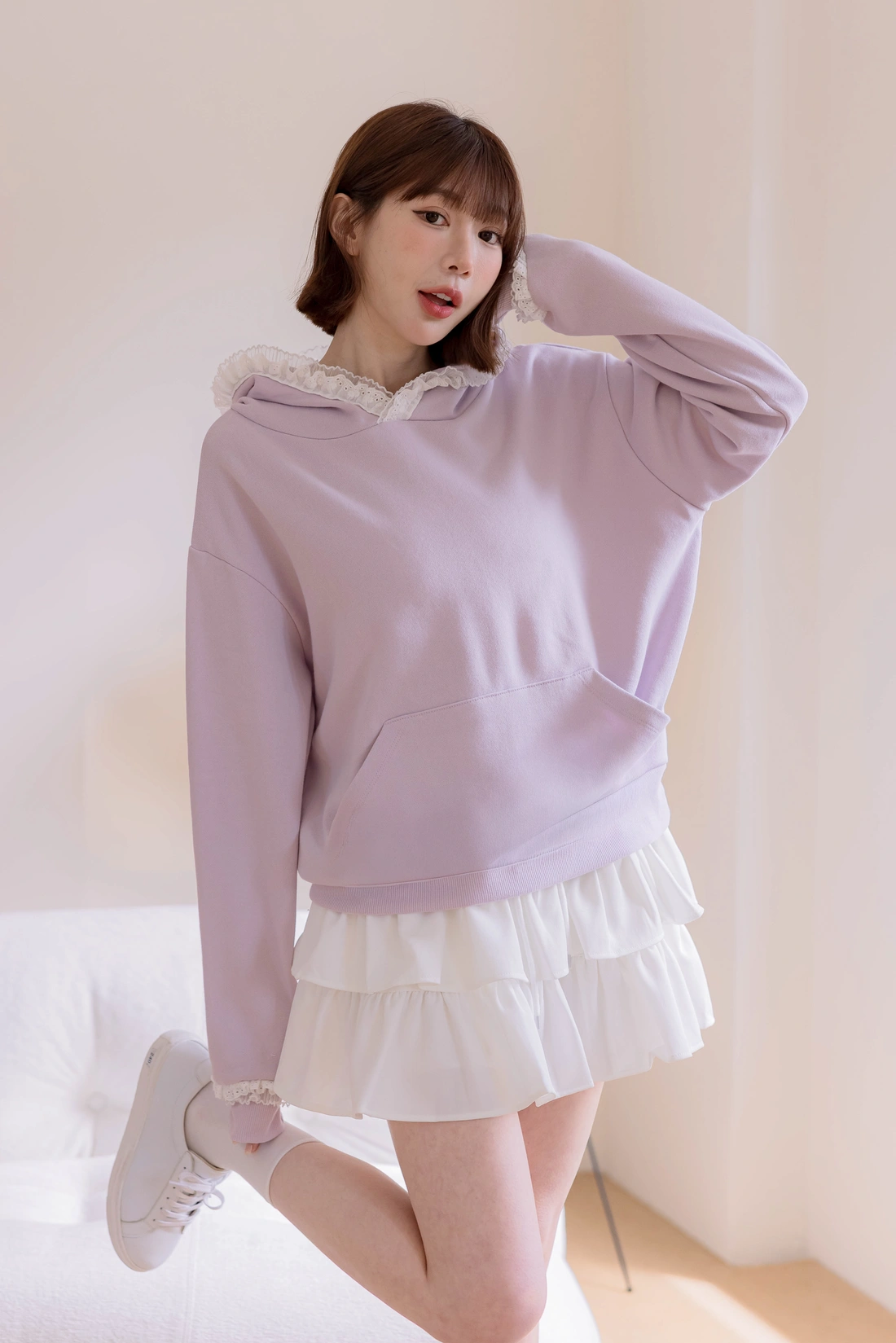 正韓製 蕾絲花邊連帽衛衣