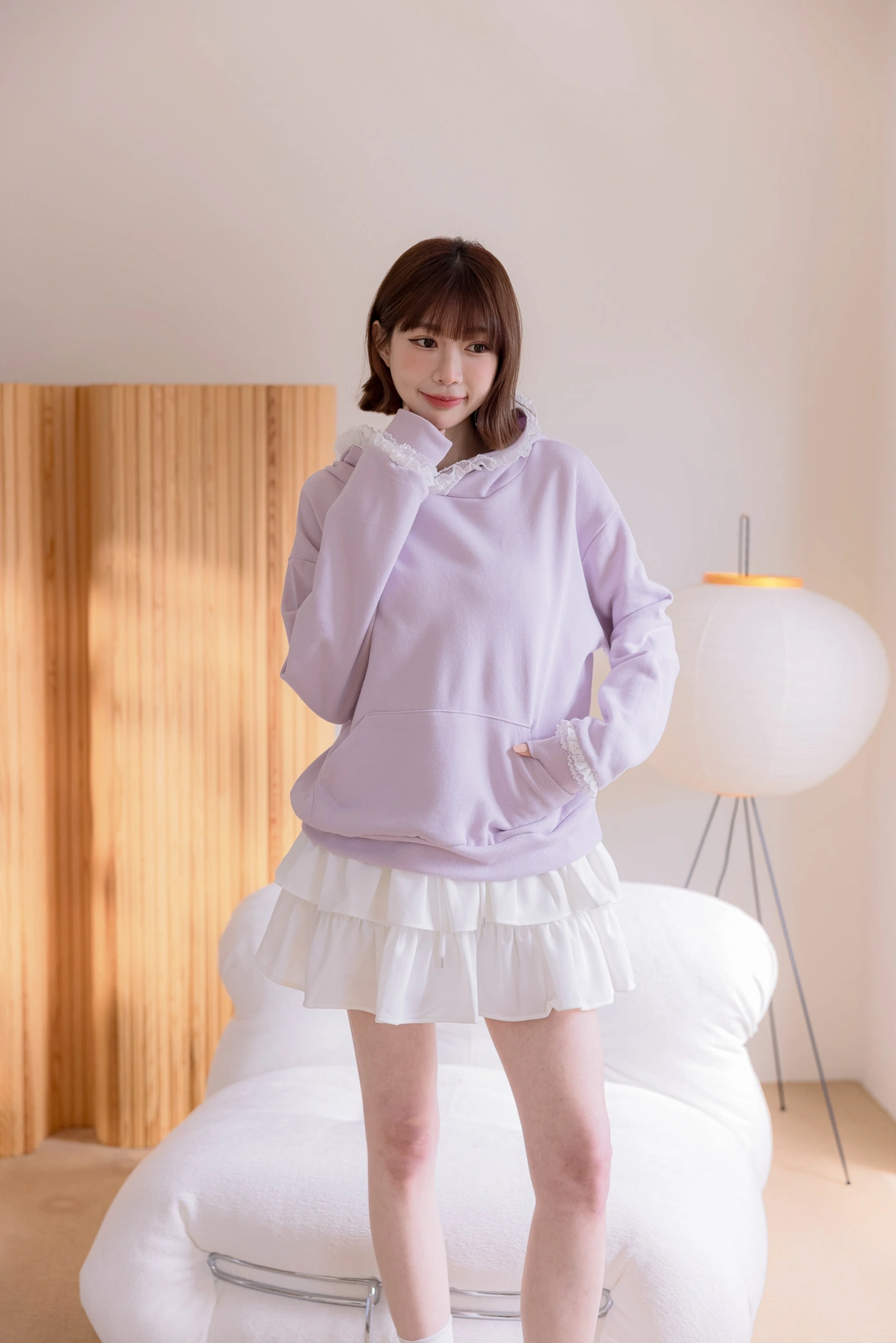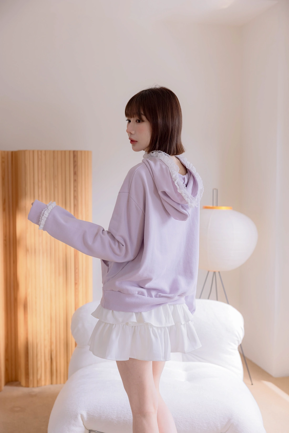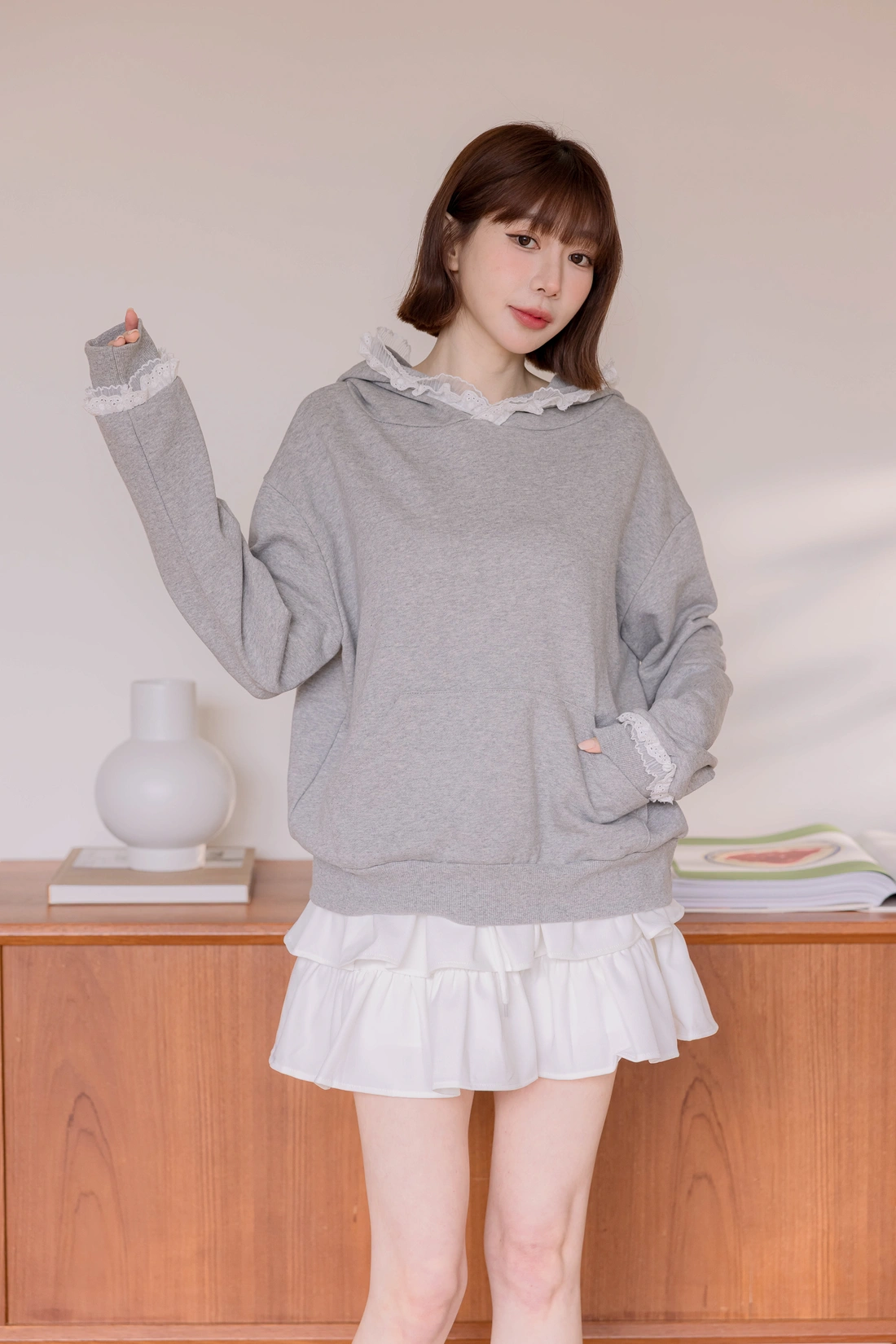 帽簷袖口蕾絲點綴/休閒感十足帽T款式
