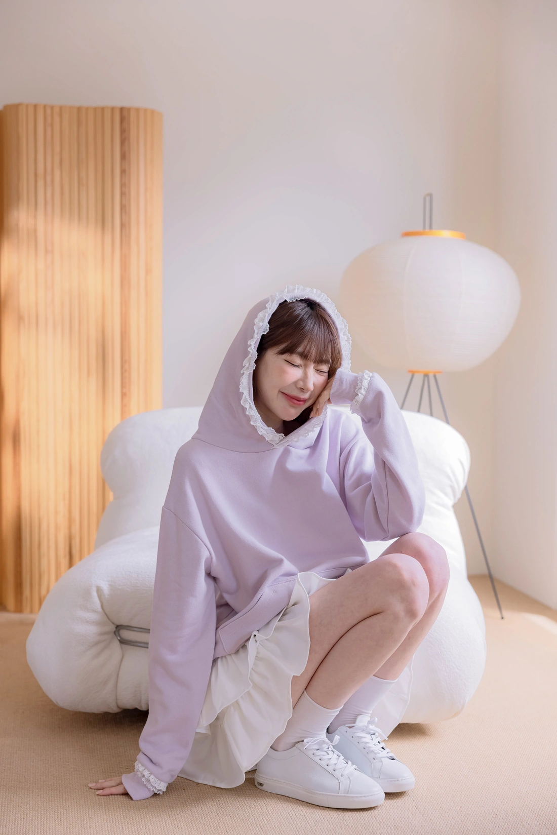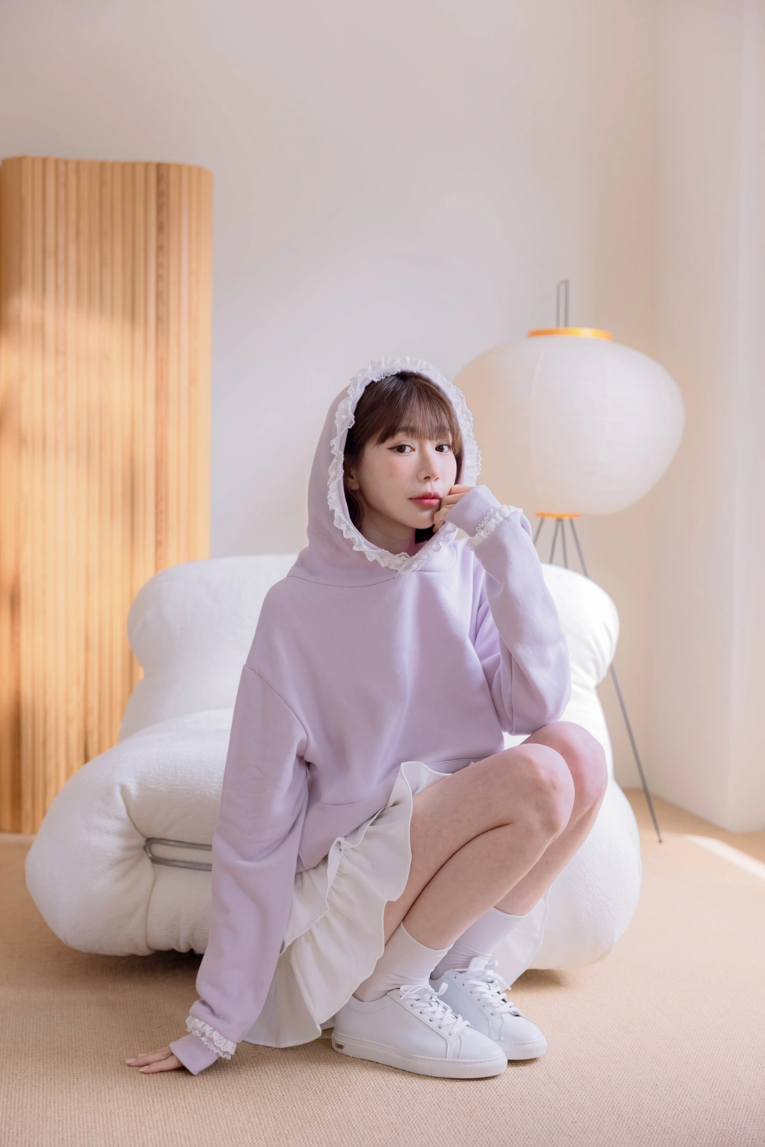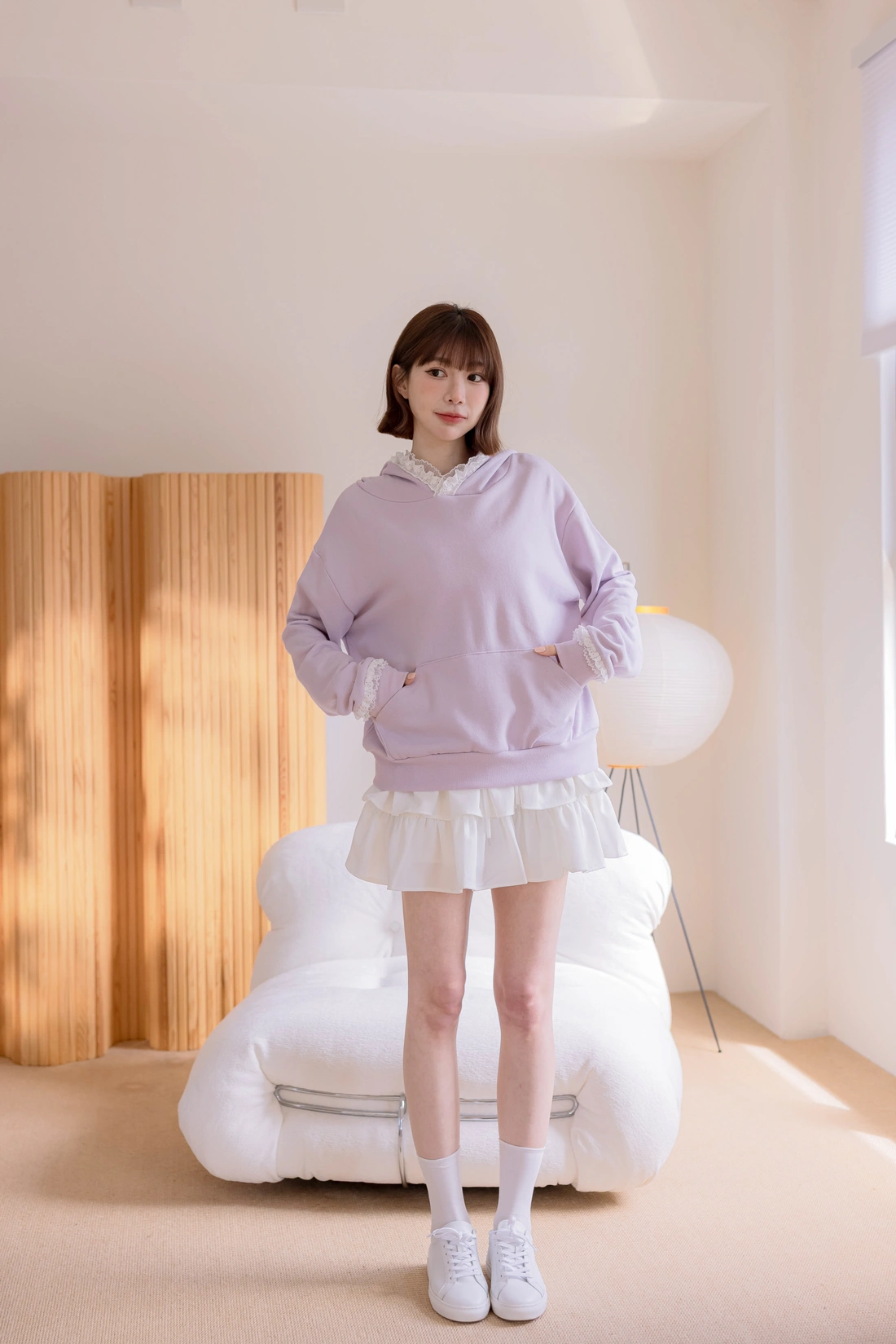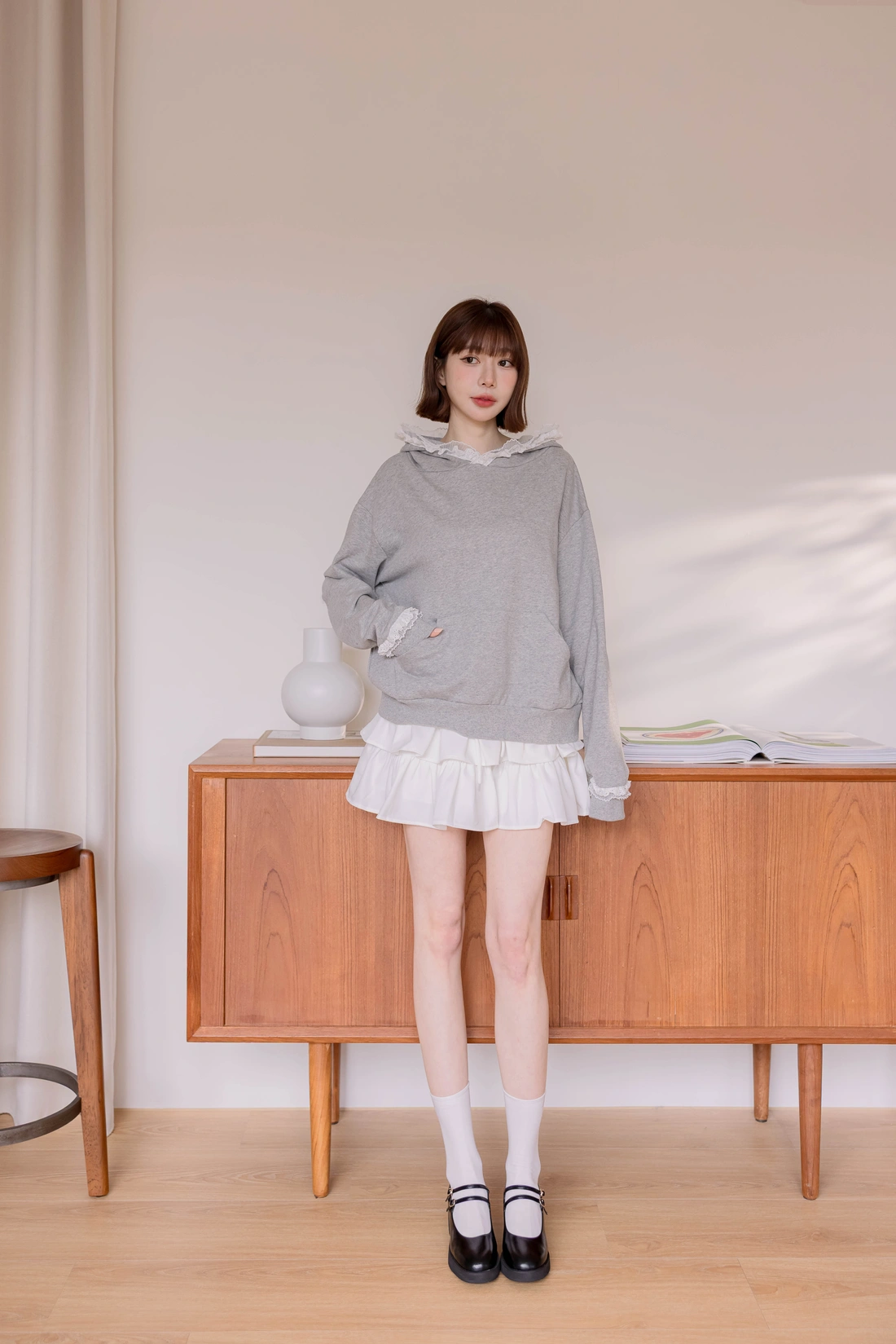 帽簷袖口蕾絲點綴/休閒感十足帽T款式