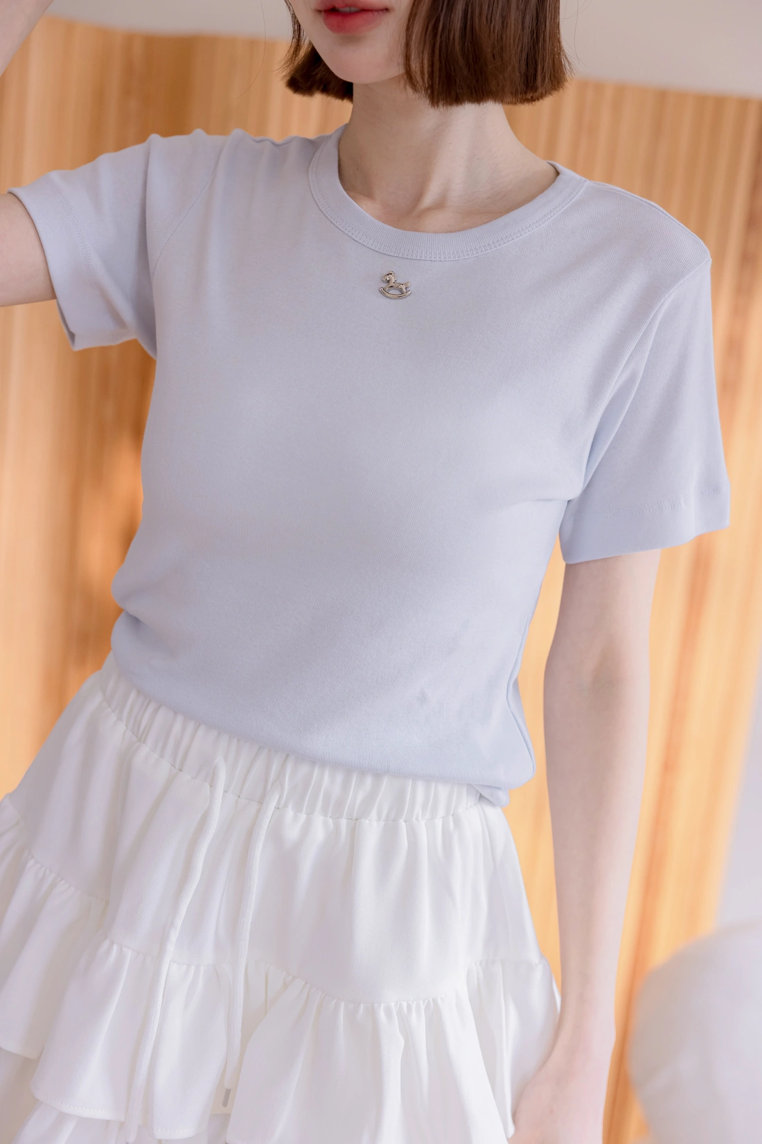 精緻小馬裝飾/領口粗包邊不易捲邊