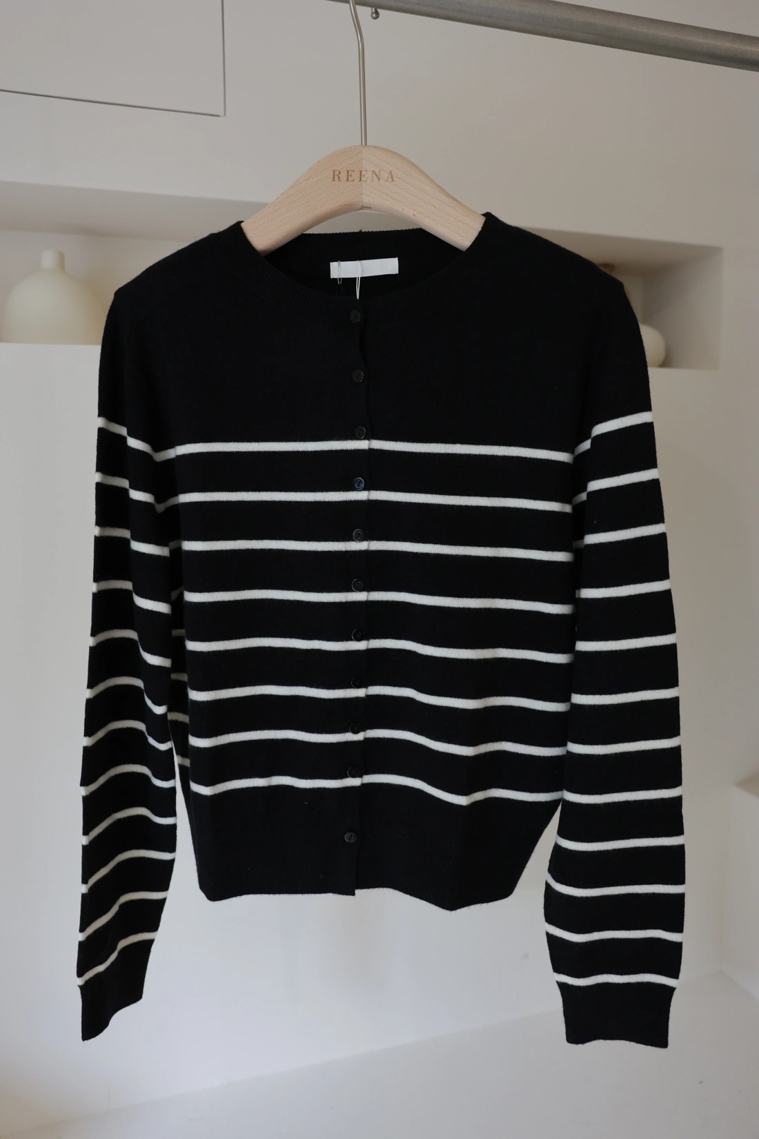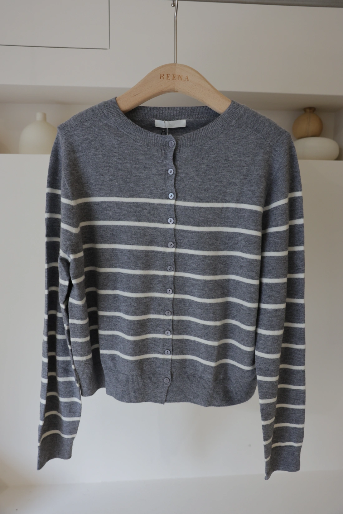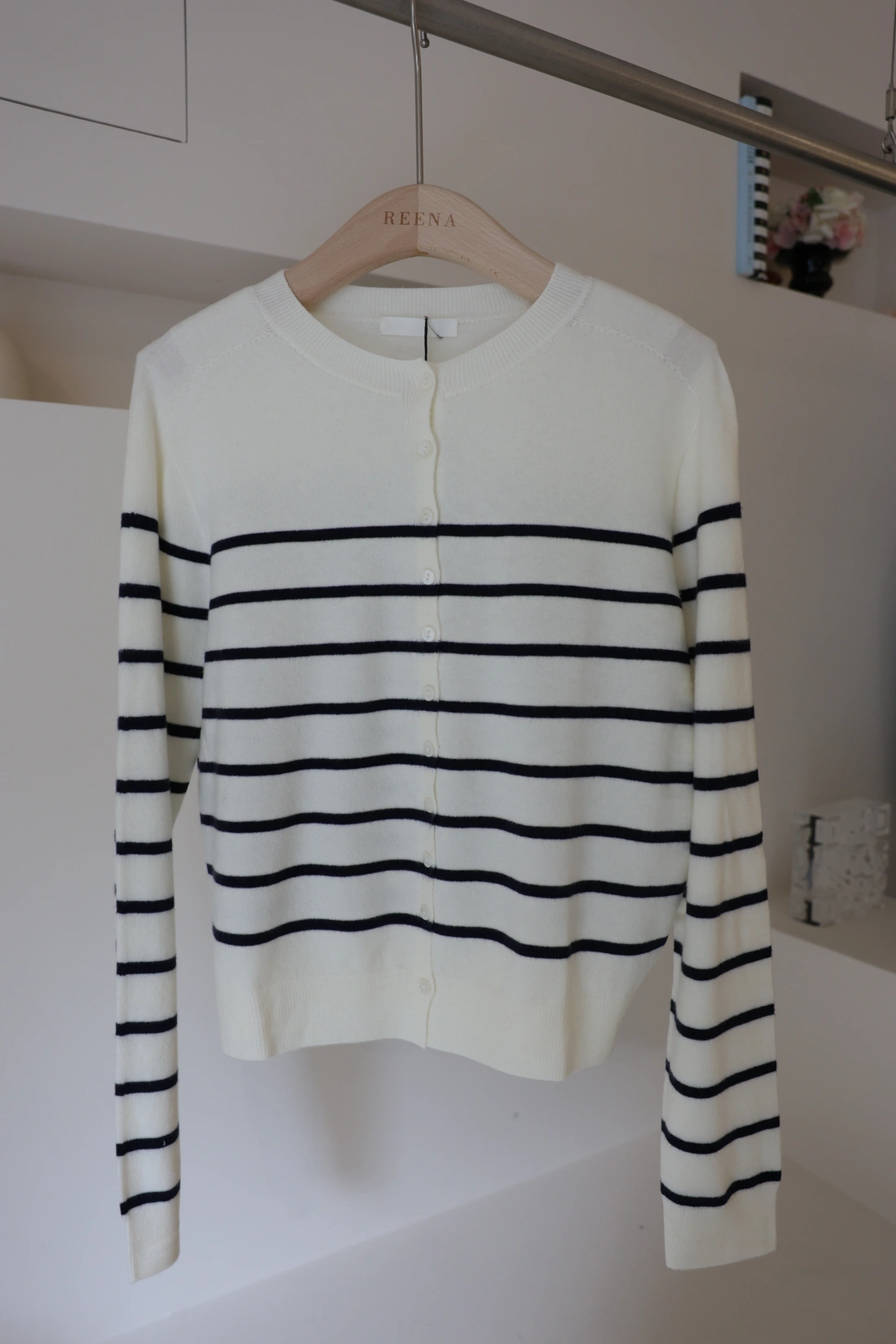 羅紋圓領橫條針織上衣/布料超級軟Q/可開釦變V領
