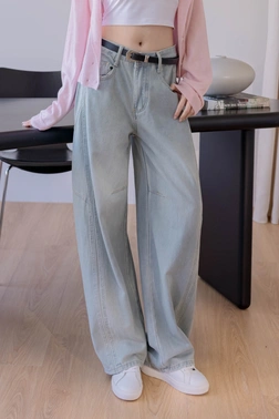 • 正韓製 顯瘦彎刀牛仔寬褲
