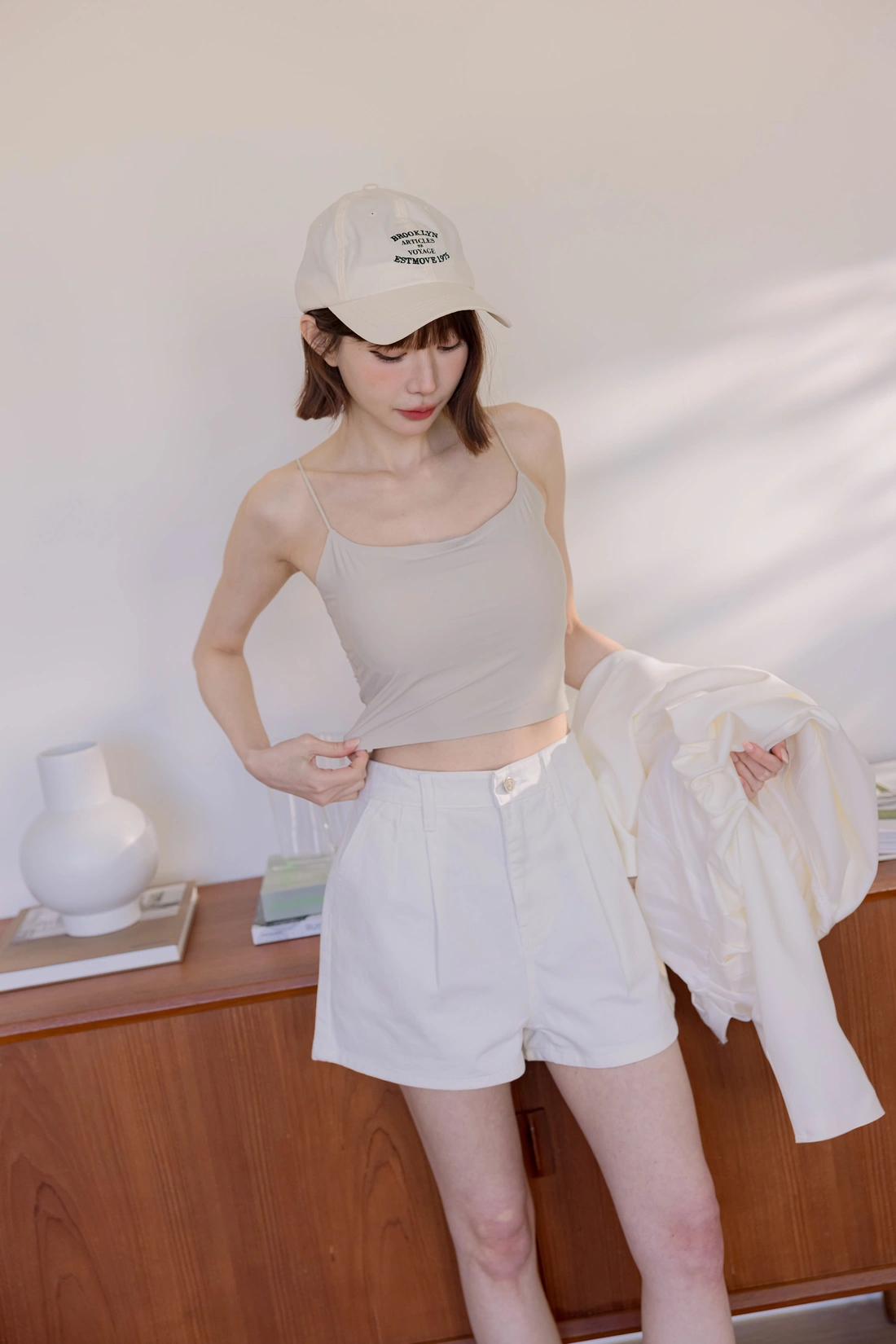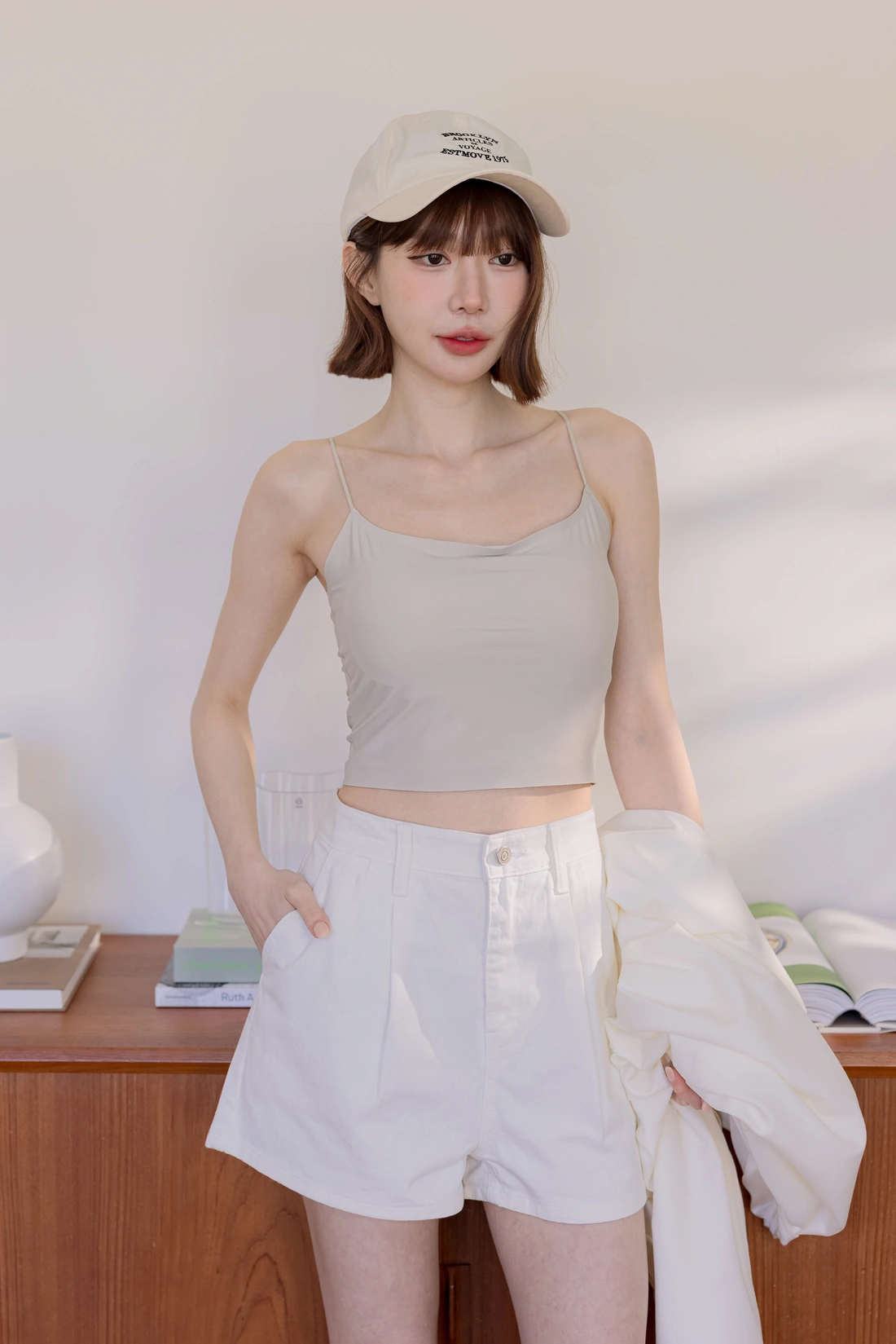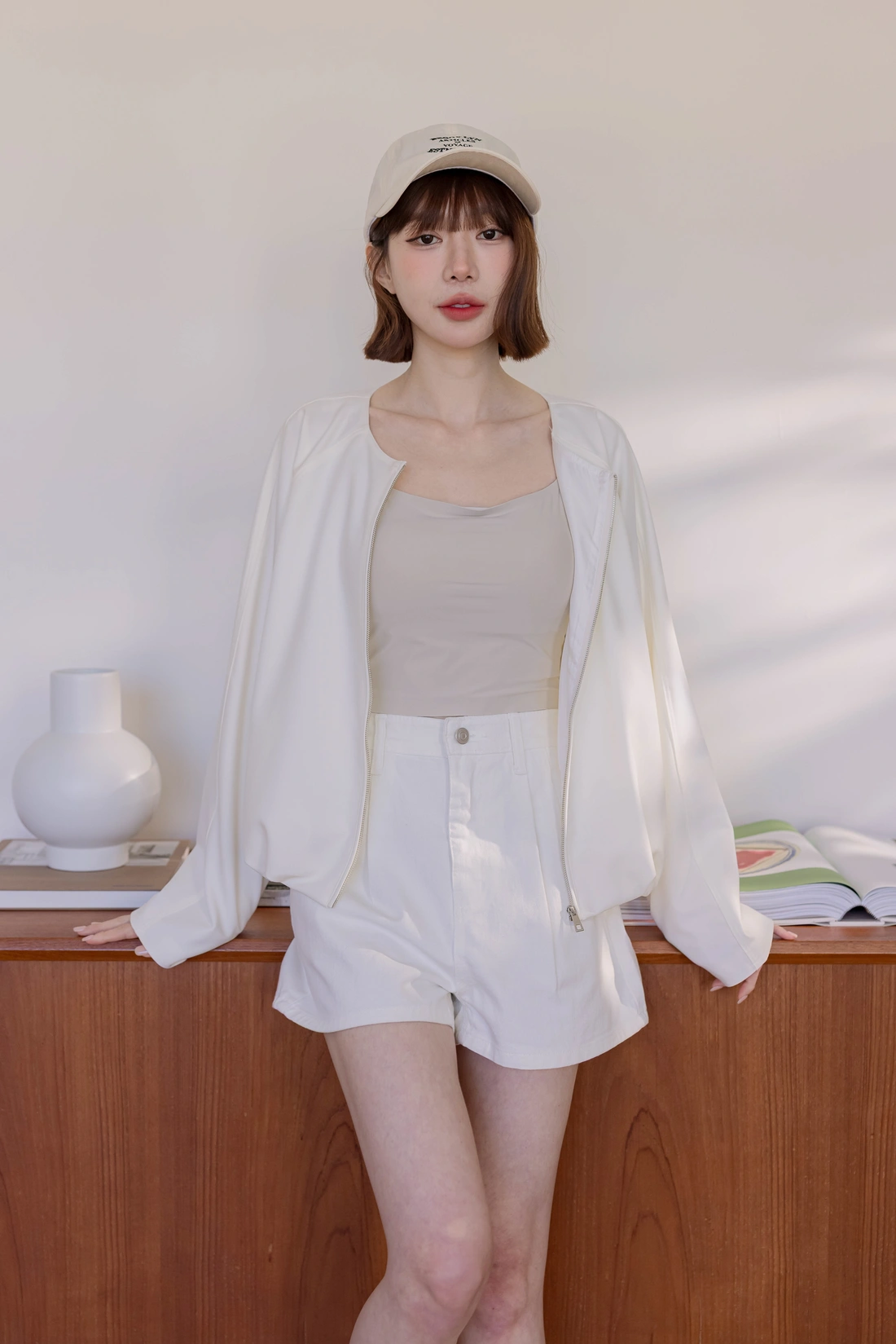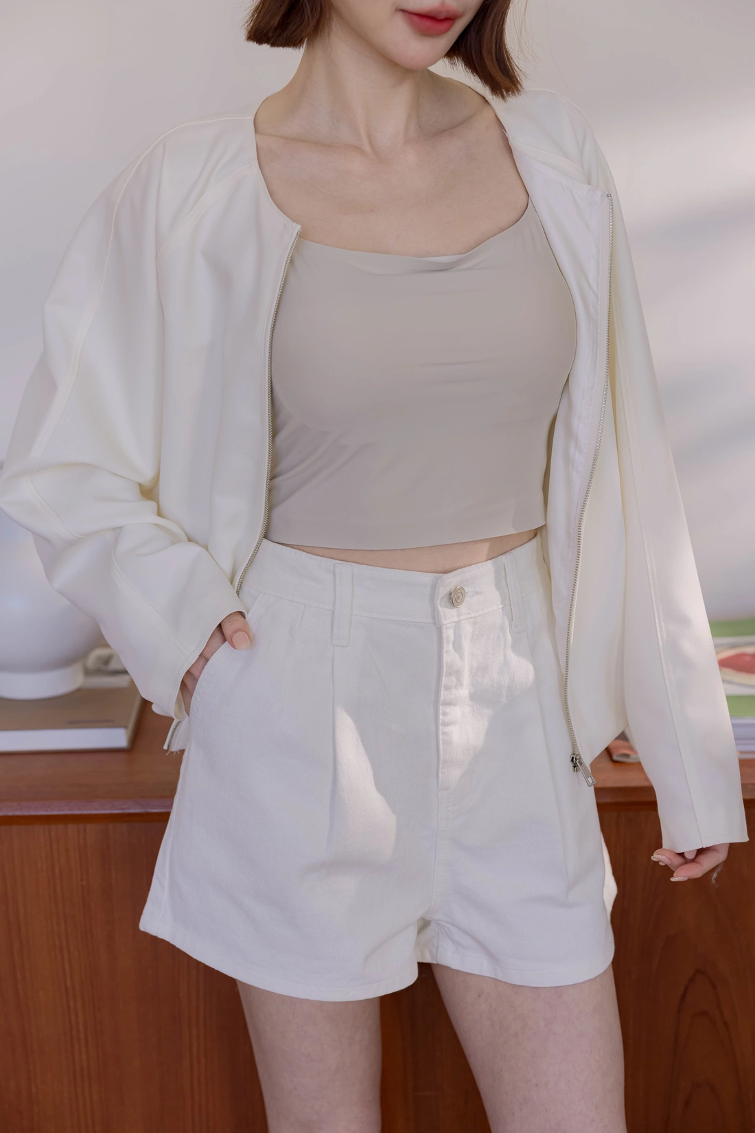 • 正韓製 奶霜系柔軟無領外套