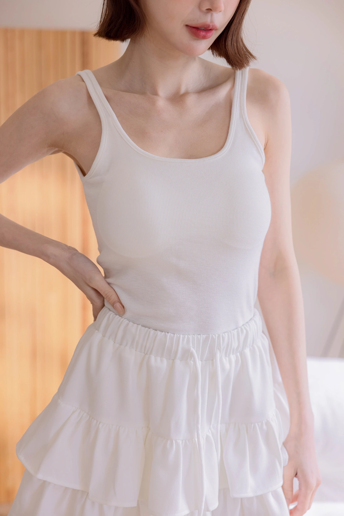 不可拆式胸墊/慵懶隨性方圓領