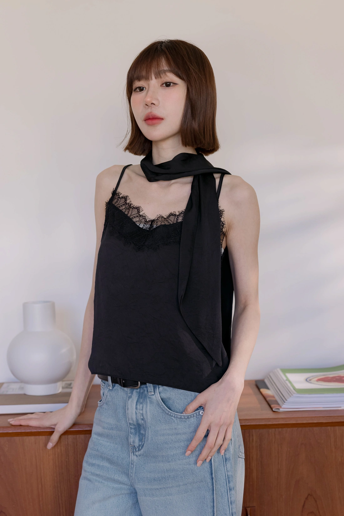 附絲巾可自由搭配/可調式肩帶/蕾絲親膚舒適